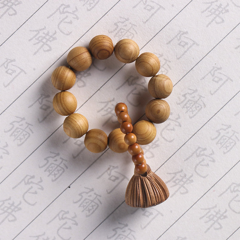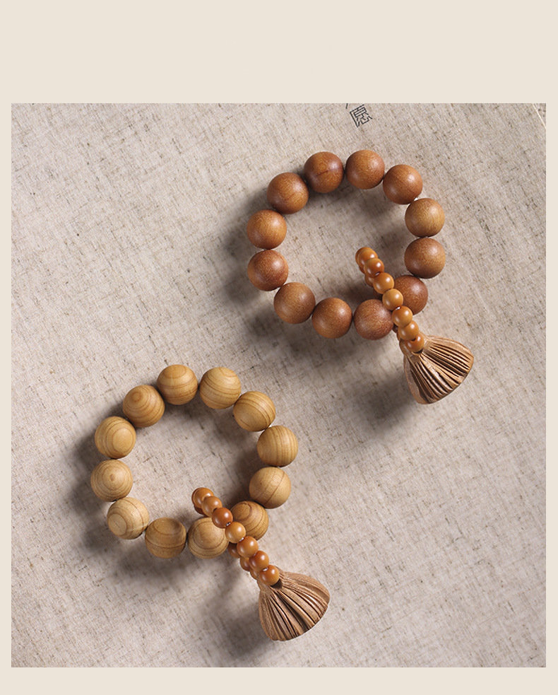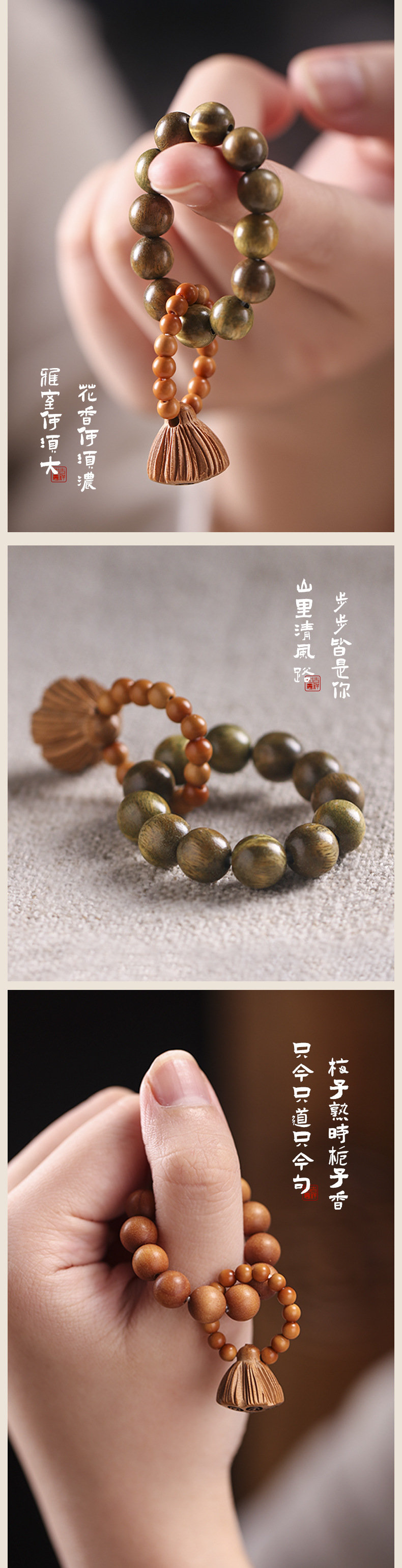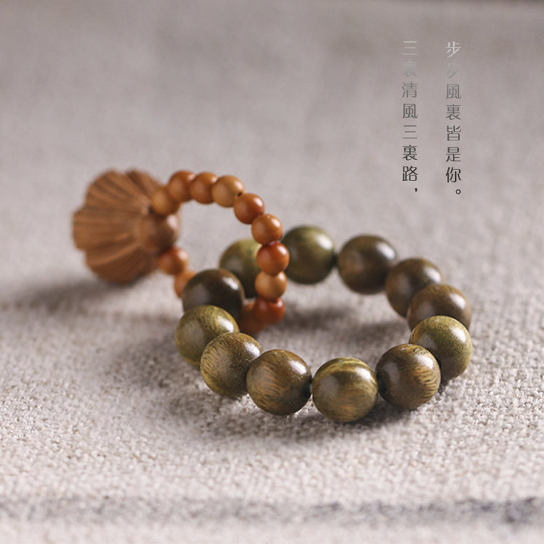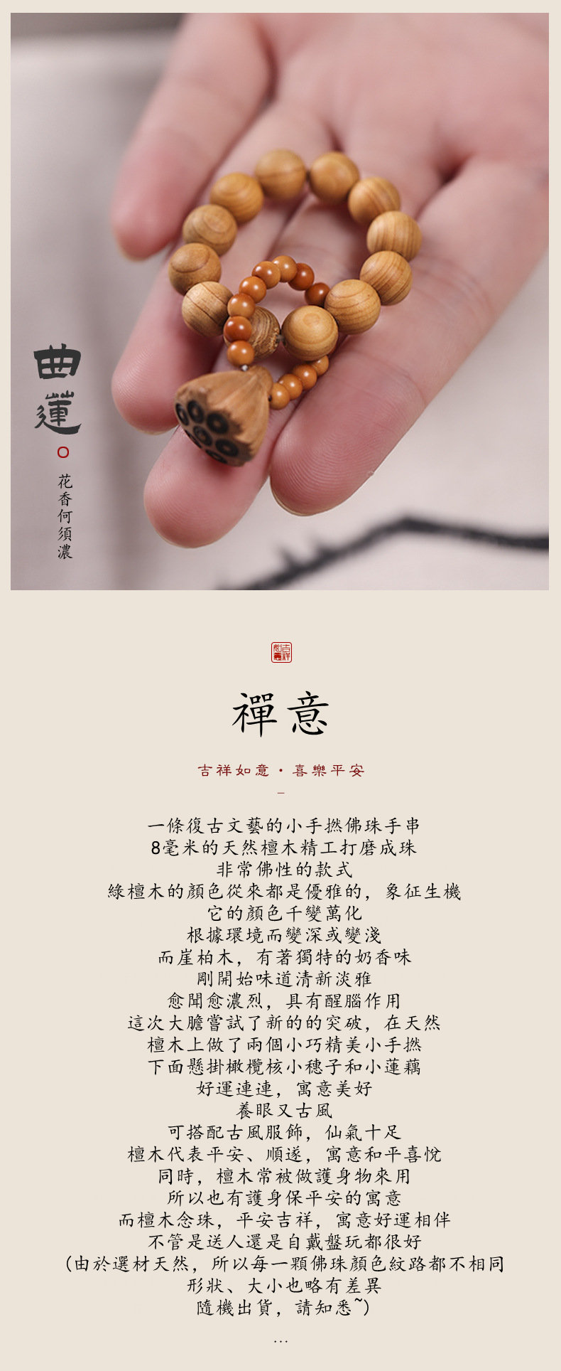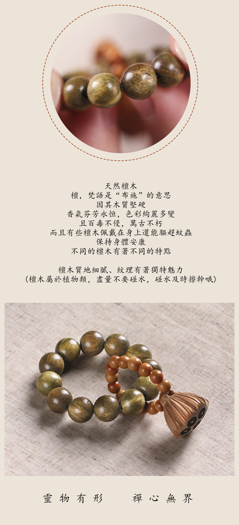 限時買一送二 | 天然崖柏檀香手撚佛珠 | 搭配蓮蓬掛飾 | 佛性悠長禪意十足天然綠檀崖柏檀香怡人清新手撚佛珠手串