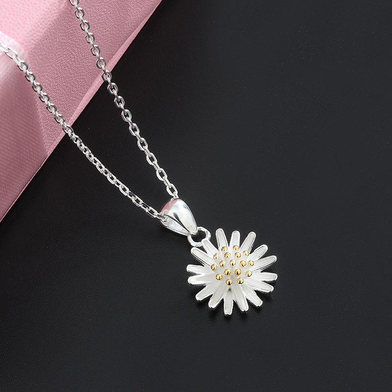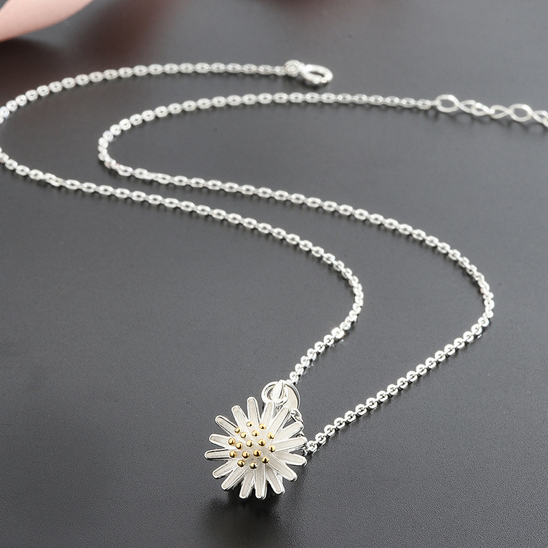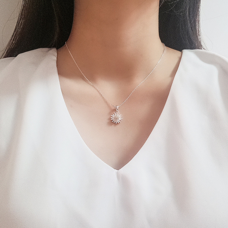 S925純銀法式小雛菊吊墜簡約優雅項鍊鎖骨鍊 (小雛菊 925純銀)