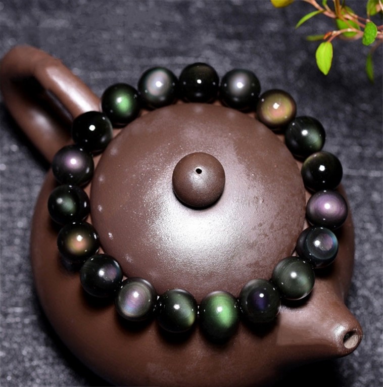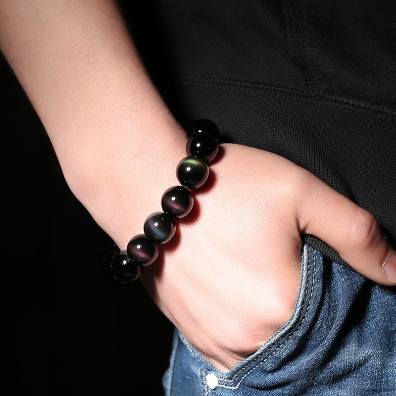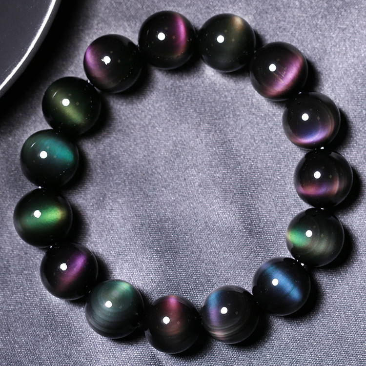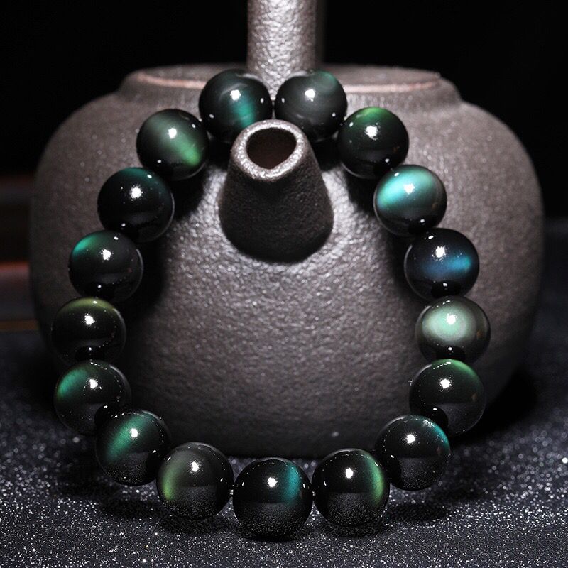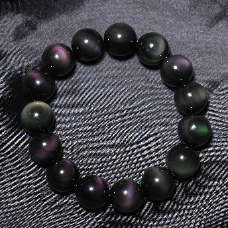 九紫離火 | 諸事皆順 | 珍品稀有冰島彩虹黑曜石手鍊 | 招財開運幸運平安 | 2025夢幻滿月雙彩眼事業招財平安幸運男女黑曜石手鍊