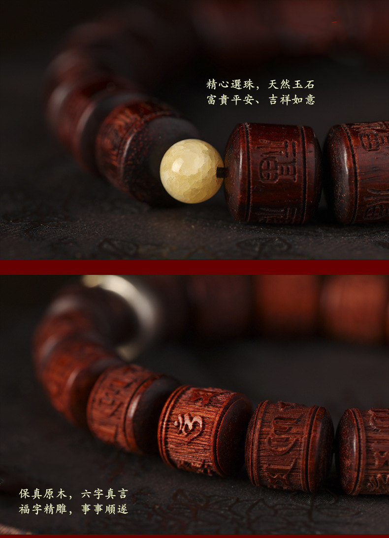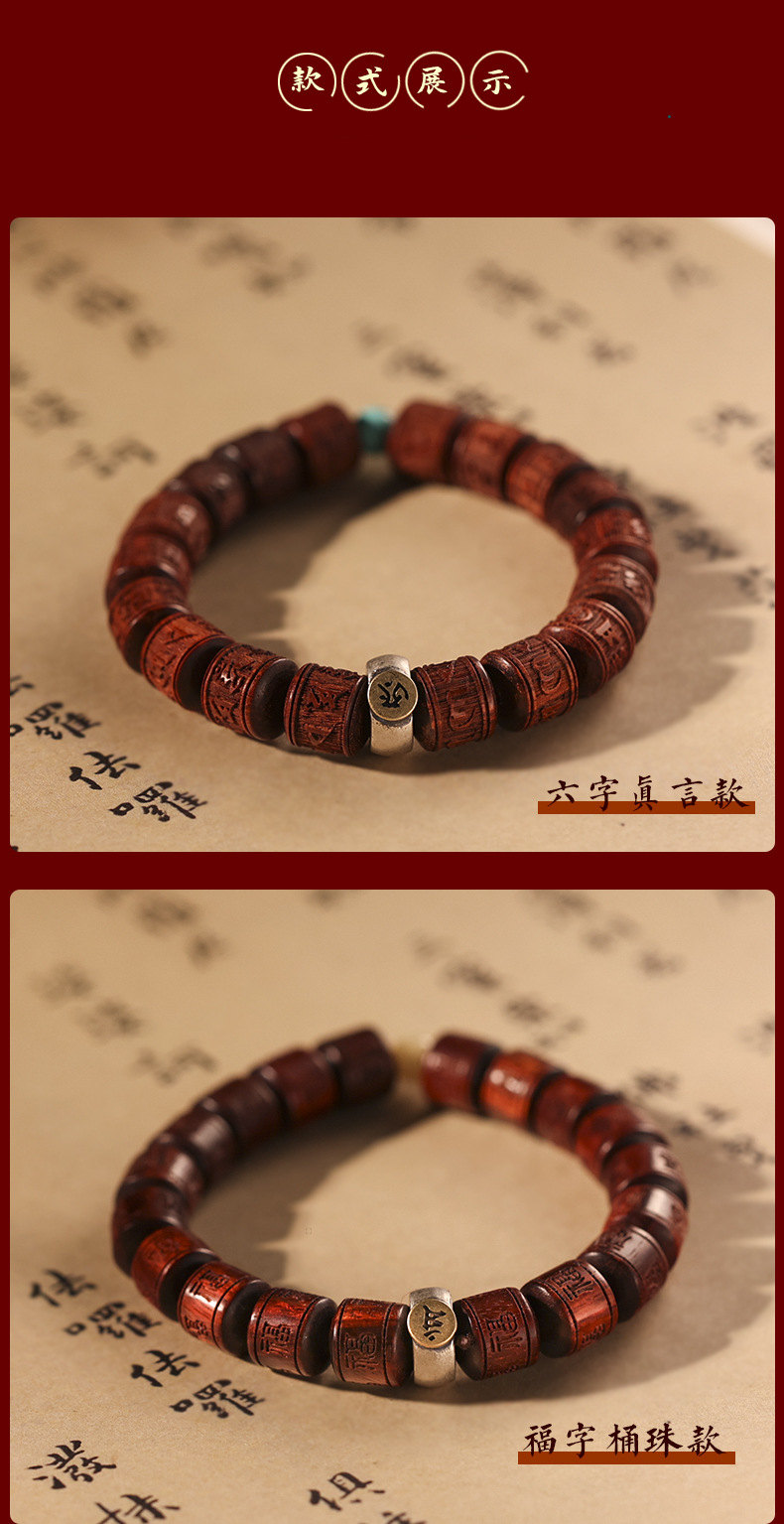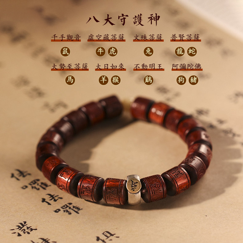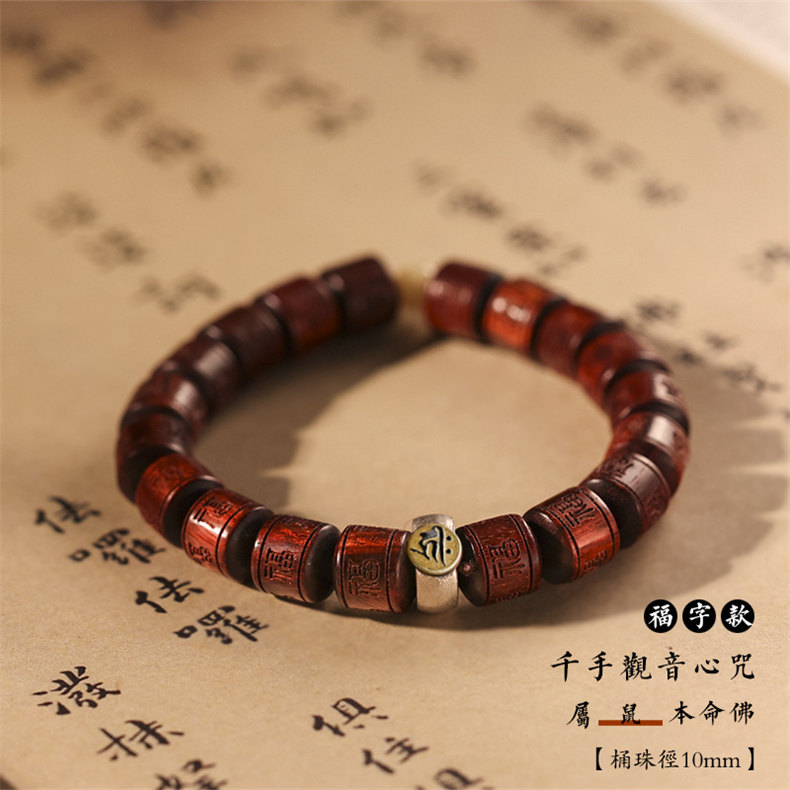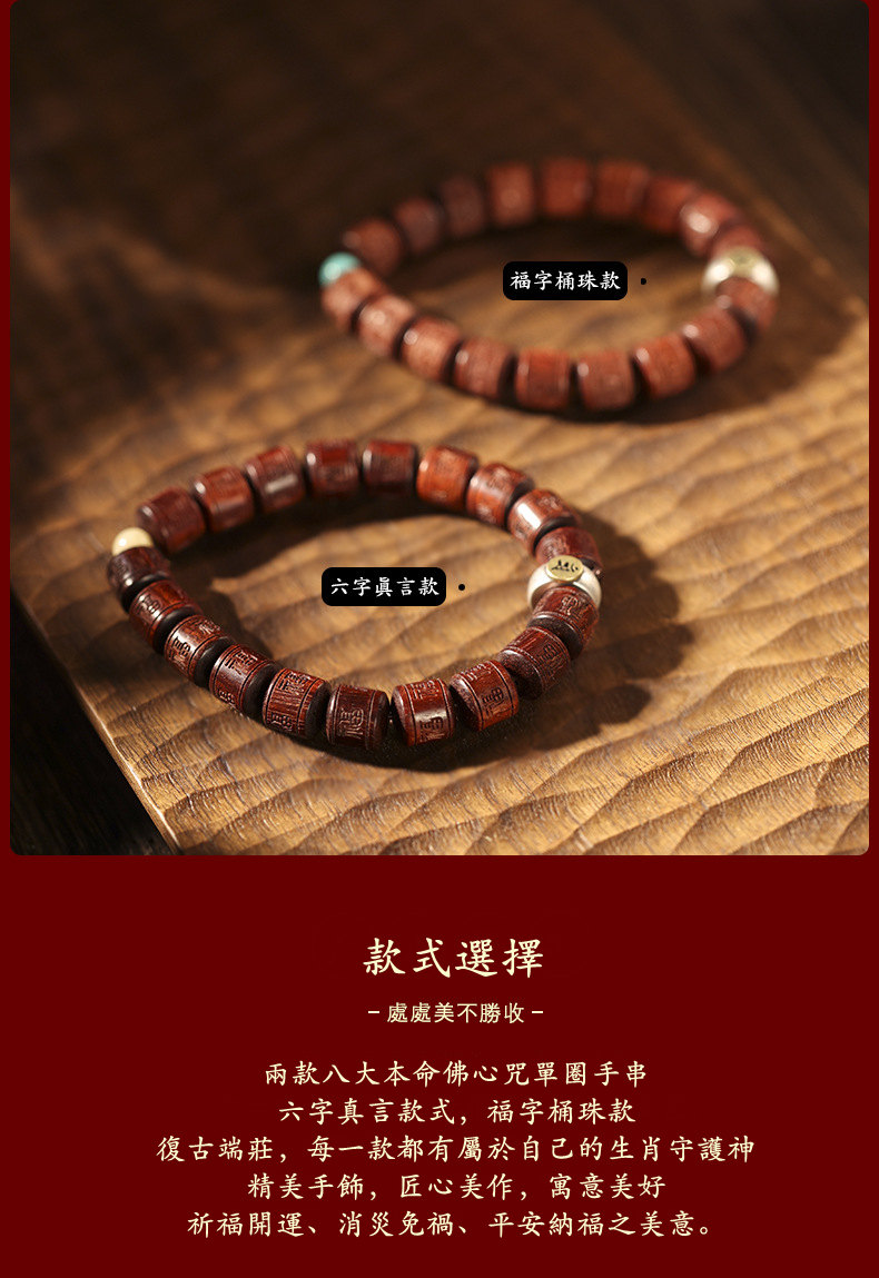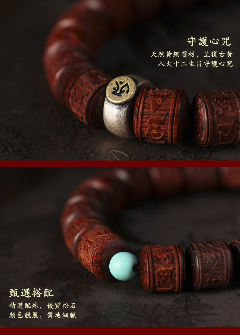 天然小葉紫檀十二生肖本命守護佛珠手串 | 六字真言桶珠 | 平安好運精雕天然小葉紫檀十二生肖本命佛守護神男女佛珠手串