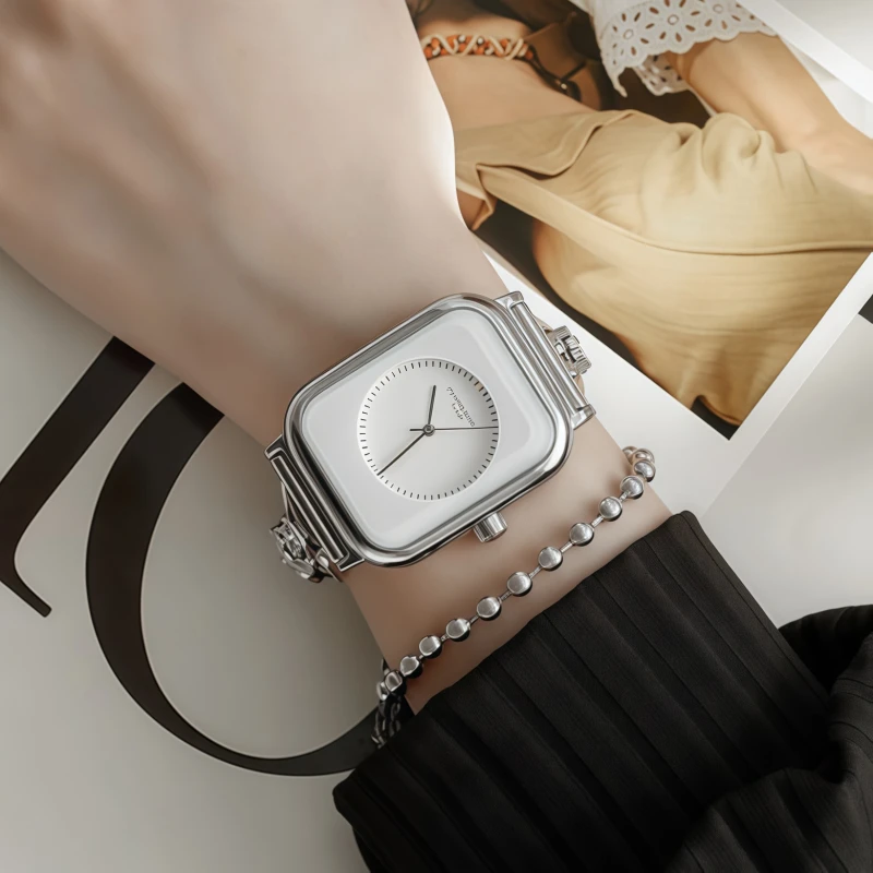 女錶・方圓之間 | 外圓內方錶盤 | 日本進口石英機芯 | 不鏽鋼圓珠錶鍊 | 30米防水 | LEONA ROSALIND超酷個性設計師款時尚女手錶