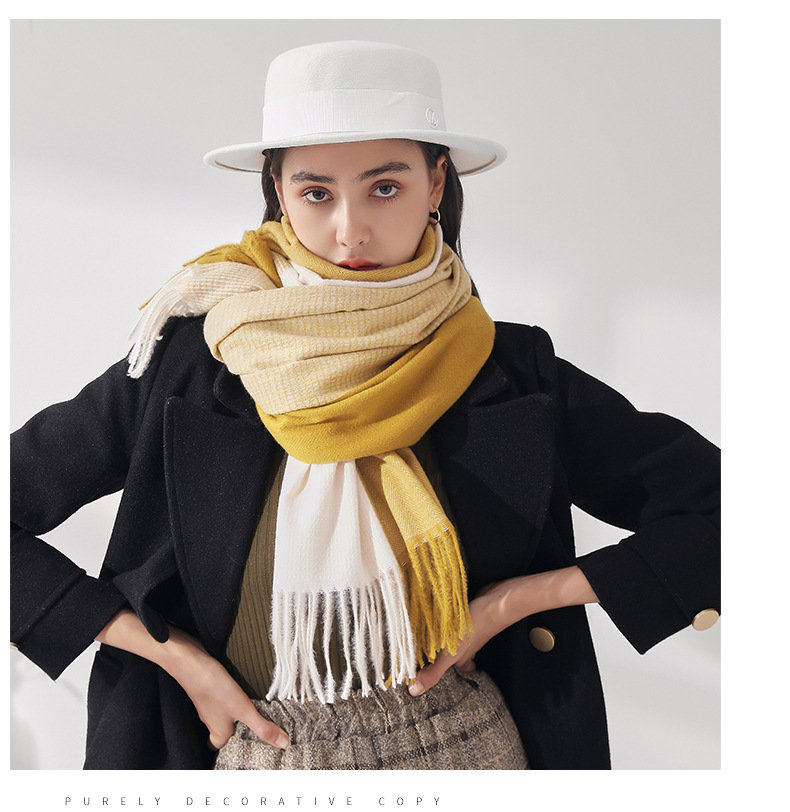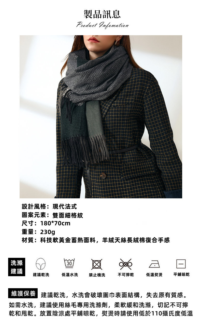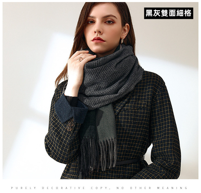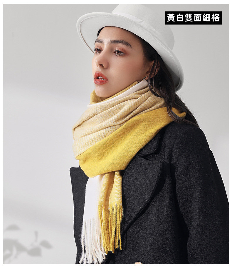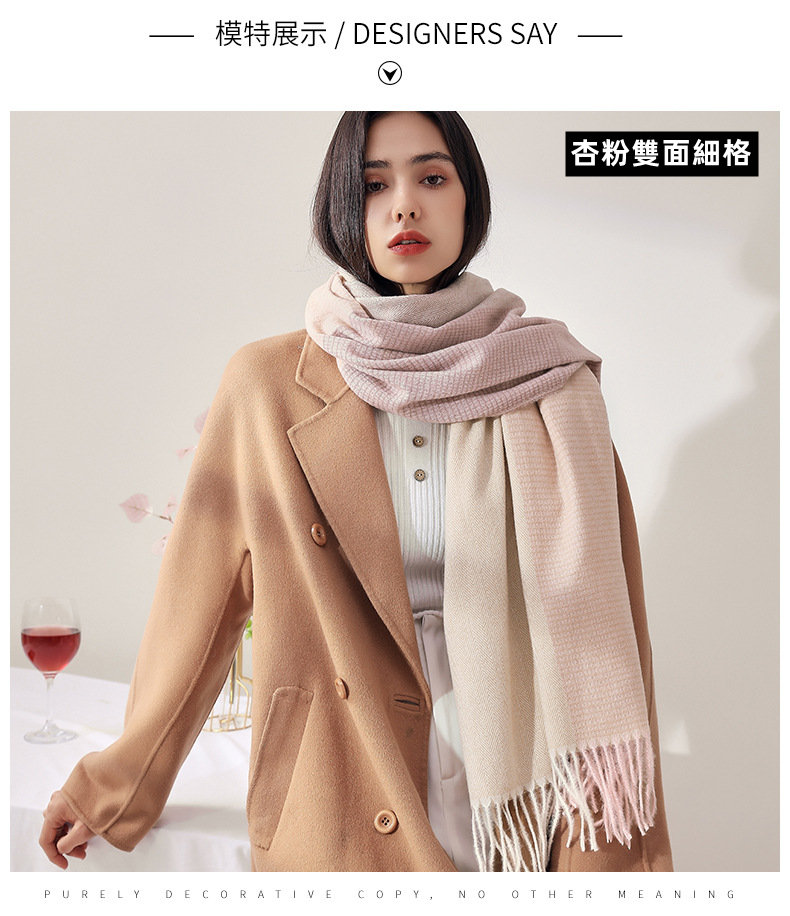 拼色百搭雙面細格紋 | 科技蓄熱軟黃金復合面料 | 軟糯親膚 | 文藝隨性自然雙面拼色細格紋羊絨天絲長絨棉復合手感蓄熱保暖男女披肩圍脖圍巾