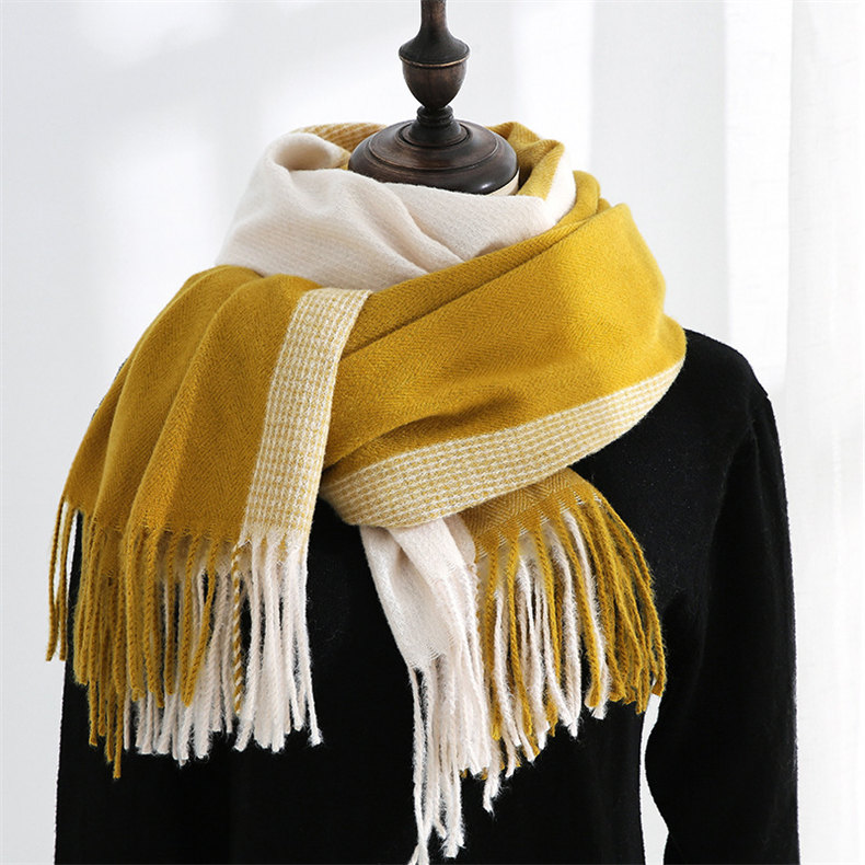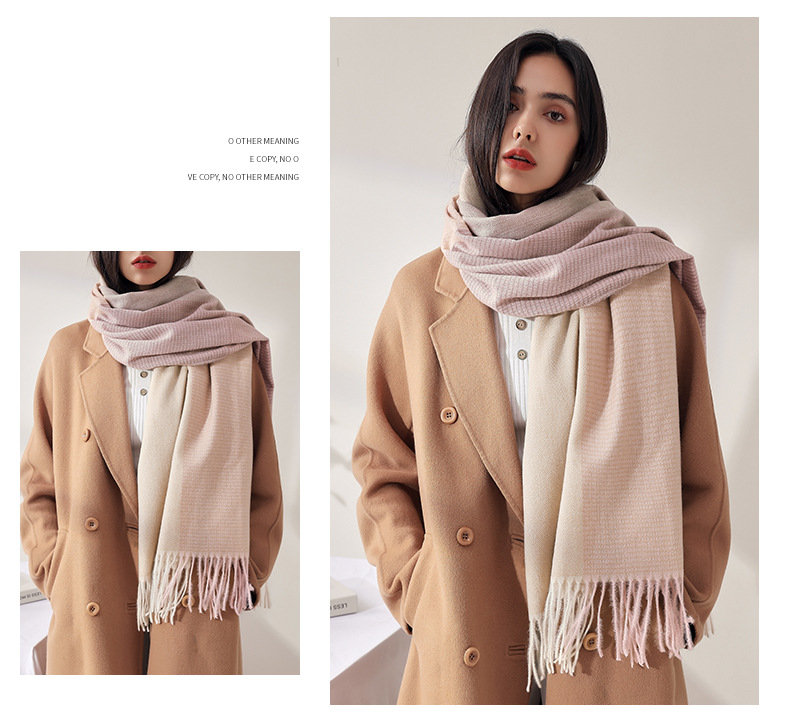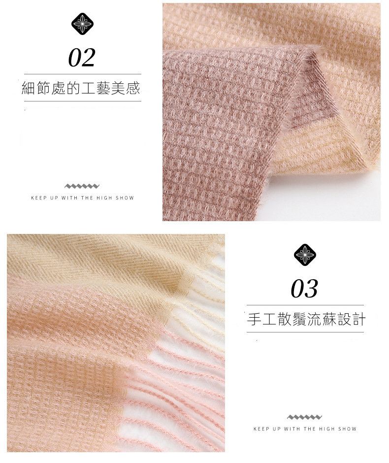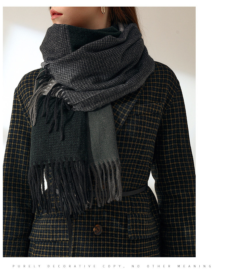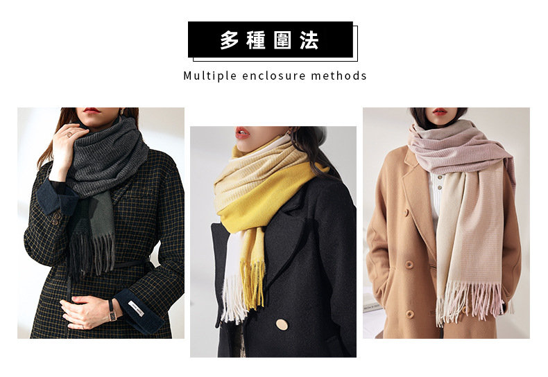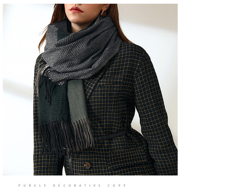 拼色百搭雙面細格紋 | 科技蓄熱軟黃金復合面料 | 軟糯親膚 | 文藝隨性自然雙面拼色細格紋羊絨天絲長絨棉復合手感蓄熱保暖男女披肩圍脖圍巾
