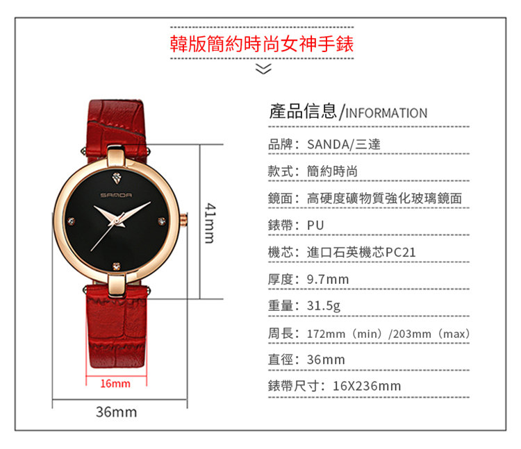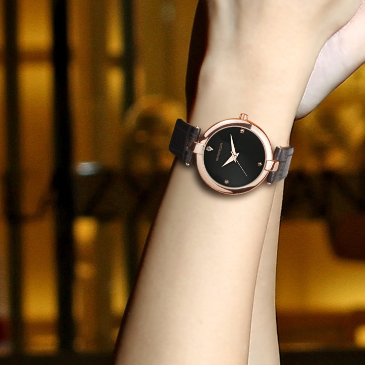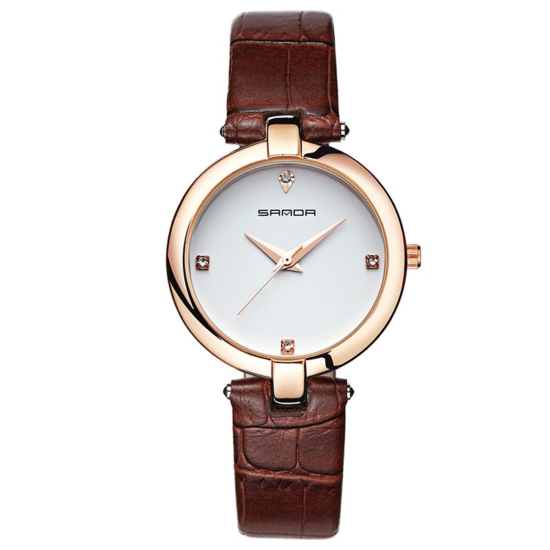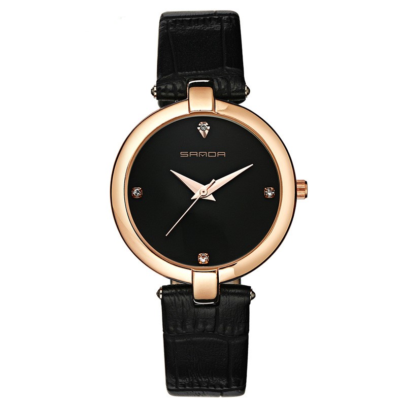 【玫金小圓盤】【女神手錶】SANDOR正韓名媛玫金鑲鑽小圓盤女神手錶