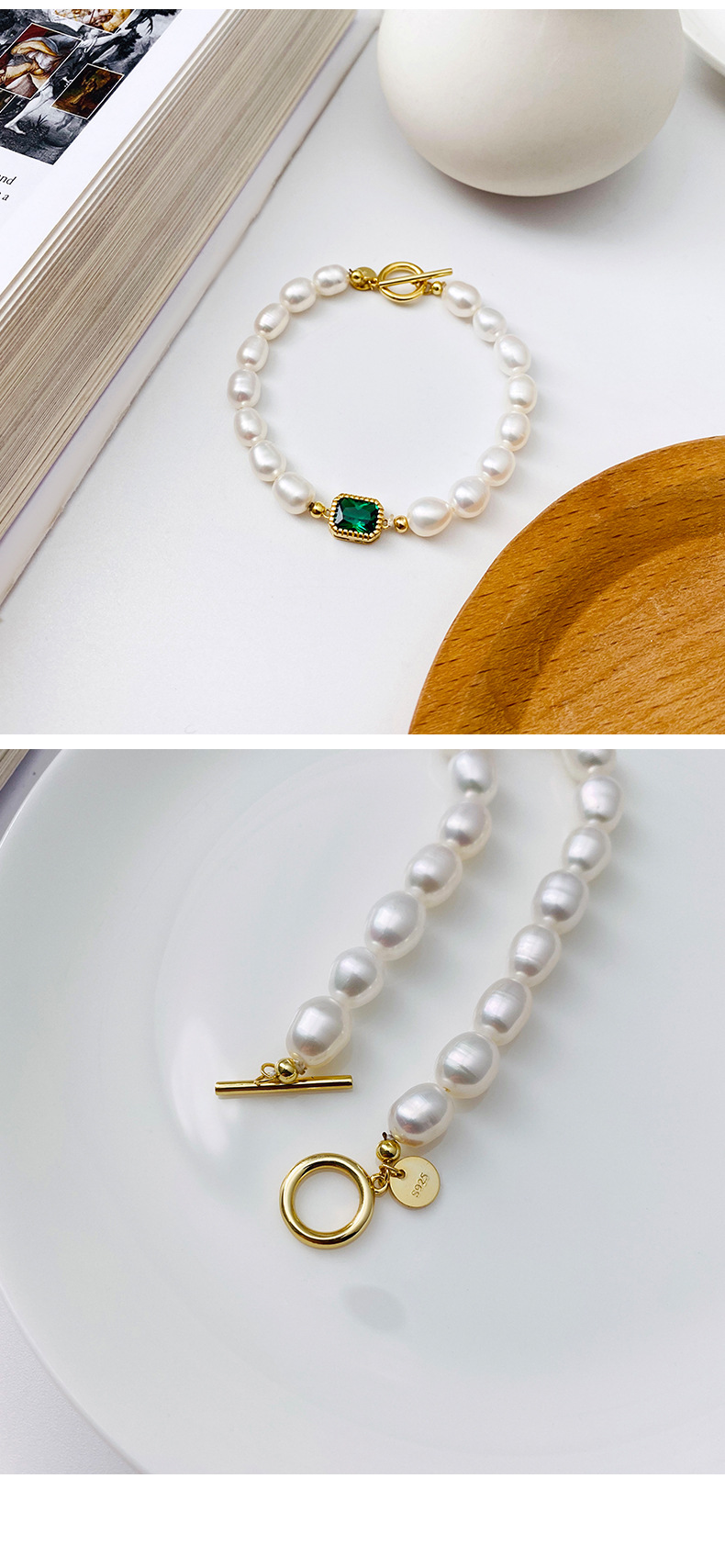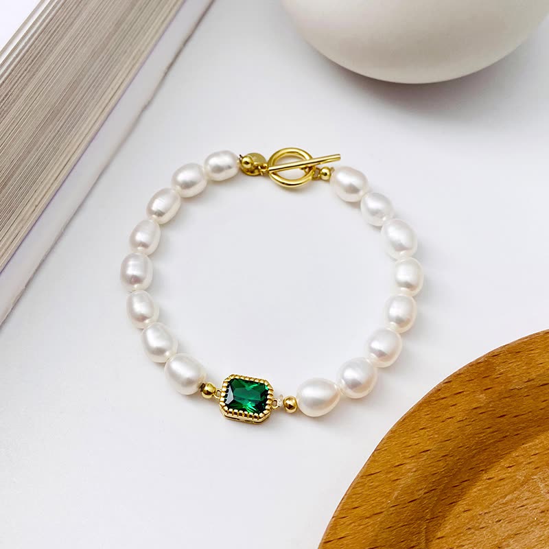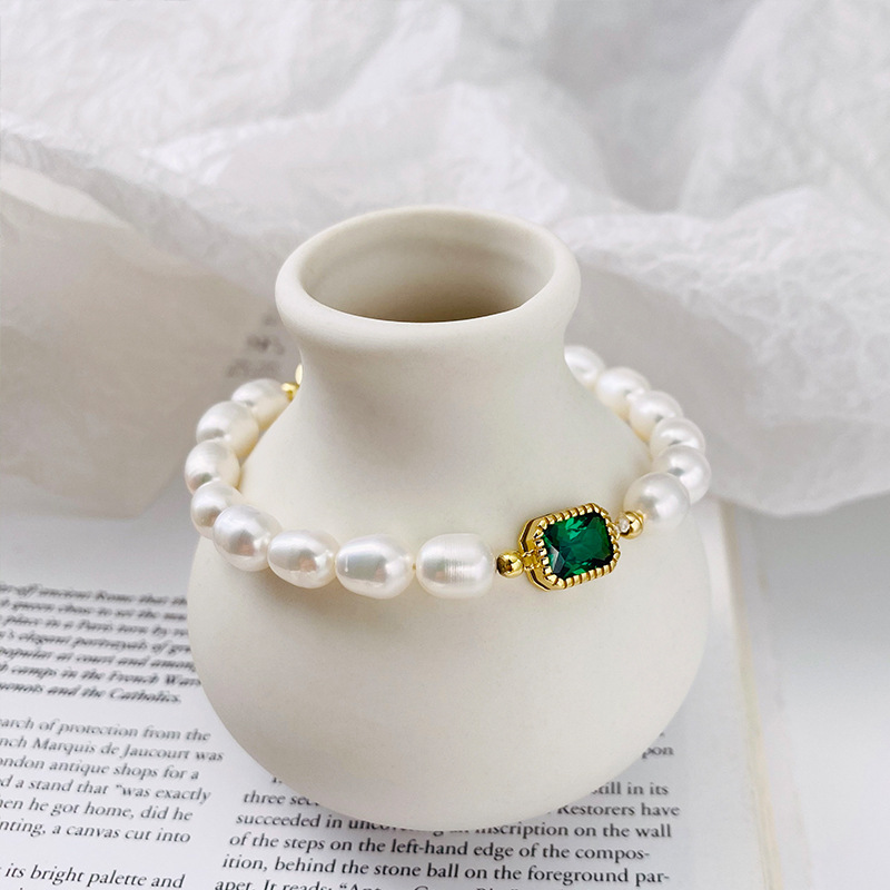 翡冷夢境 | 925純銀 | 天然珍珠 | 綠寶石 | 輕奢宮廷設計師款拼接女手鍊