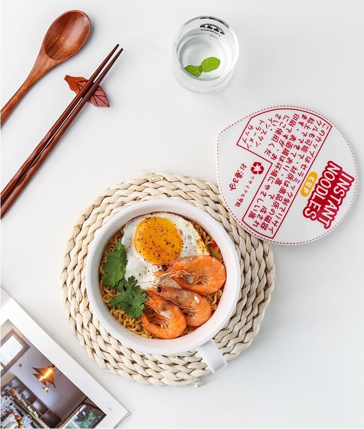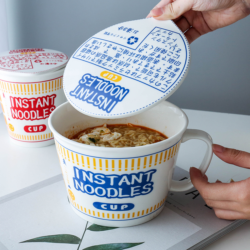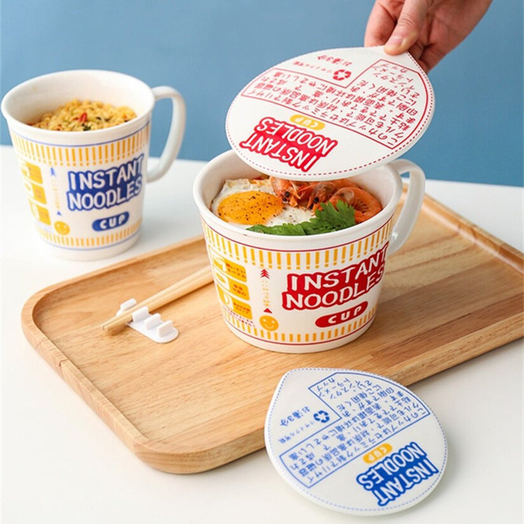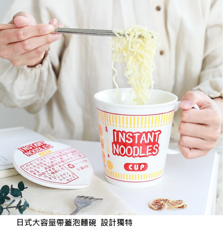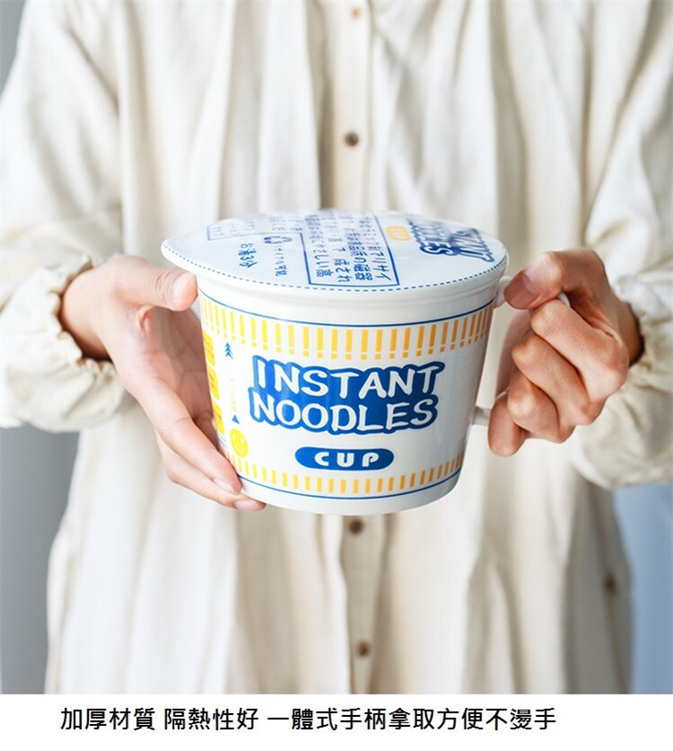 日式和風陶瓷帶蓋速食杯麵碗 | 實用加厚隔熱防燙 | 超逼真實用創意送男女生日聖誕禮物日式雜貨陶瓷帶蓋泡麵杯麵碗
