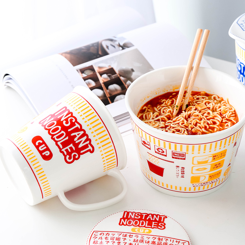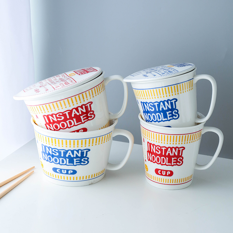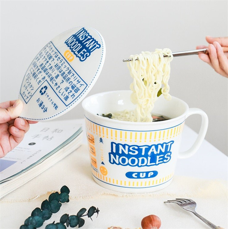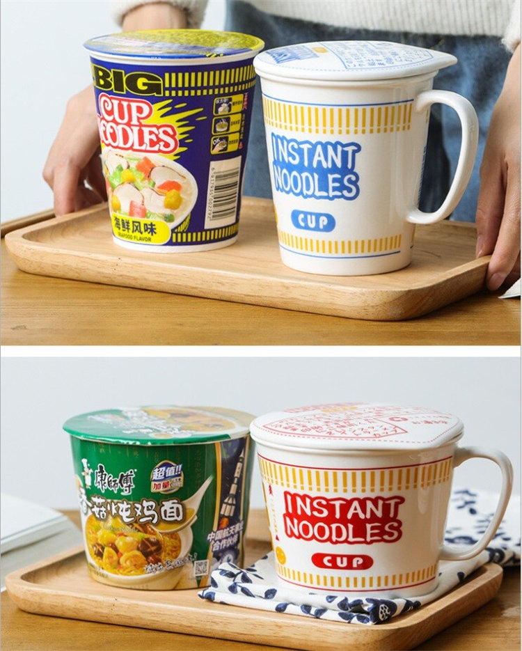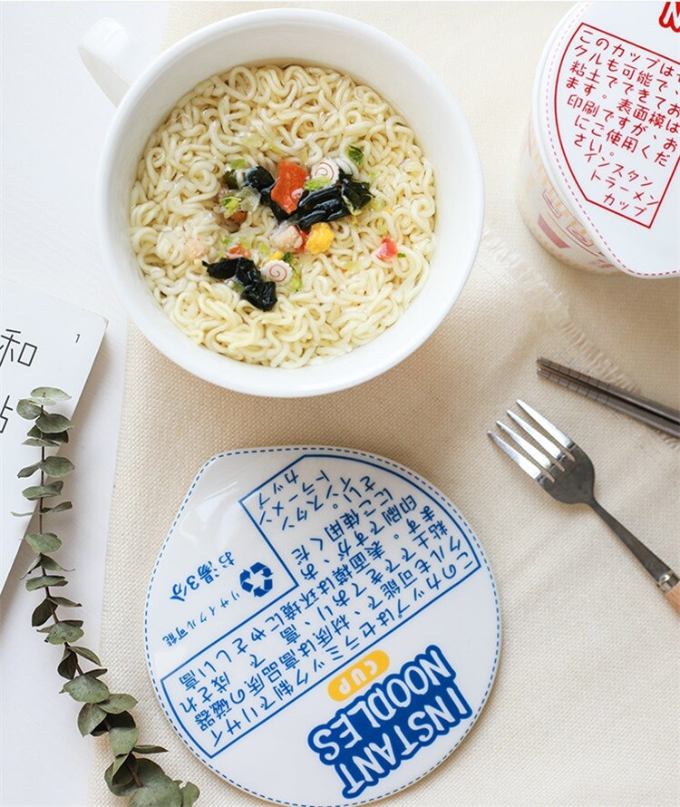 日式和風陶瓷帶蓋速食杯麵碗 | 實用加厚隔熱防燙 | 超逼真實用創意送男女生日聖誕禮物日式雜貨陶瓷帶蓋泡麵杯麵碗