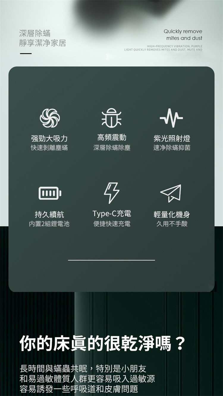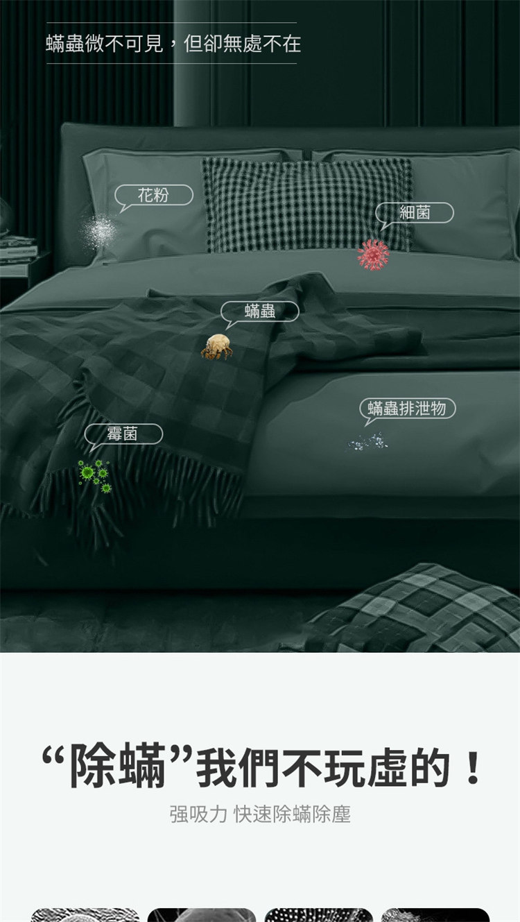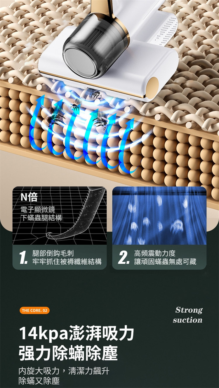 全功能旗艦級塵螨深層除螨機 | 14000Pa狂暴颶風吸力 | 高頻震動強勁拍打 | 99.99%除菌滅菌 | 多重過濾清新排氣 | 速淨除螨塵螨吸塵器除螨機