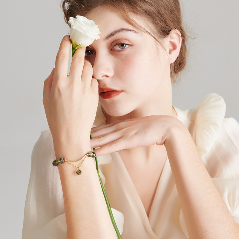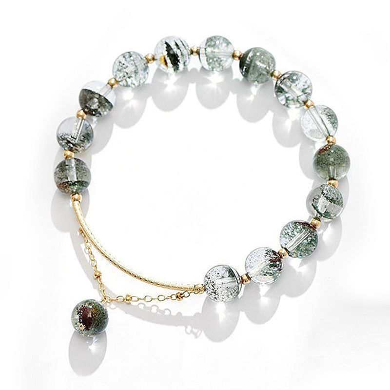正港財神 | 14K包金 | 天然綠幽靈 | 小眾設計師款幸運女水晶手鍊