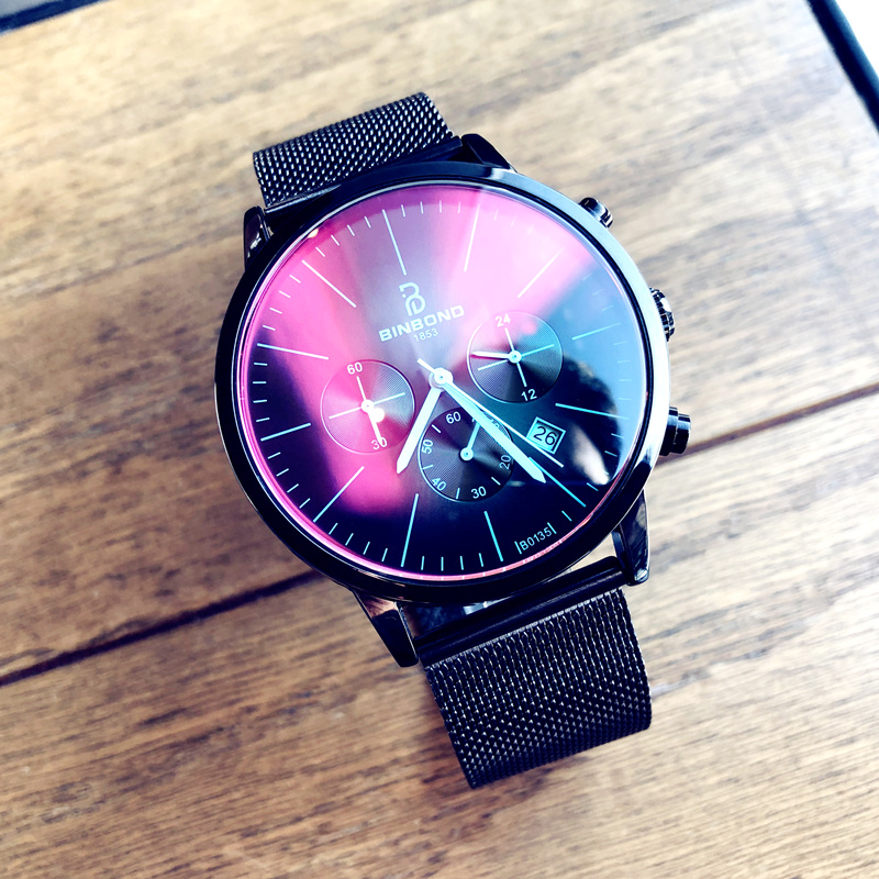 【賽博朋克鍍膜鏡面】【獨立計時秒針】賽博朋克風紫光鍍膜鏡面獨立秒針3ATM防水多功能手錶科幻風男錶