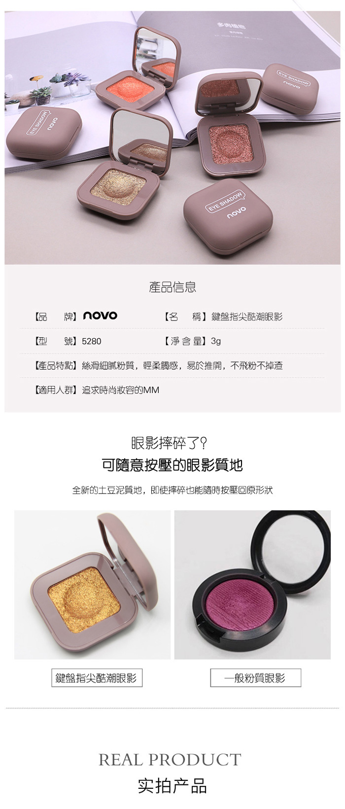 【錦鯉麻薯土豆泥單色眼影】【莫蘭迪色】韓國熱銷人氣網紅月光麻薯网红防摔土豆泥單色眼影盤帶鏡子
