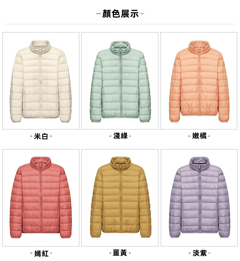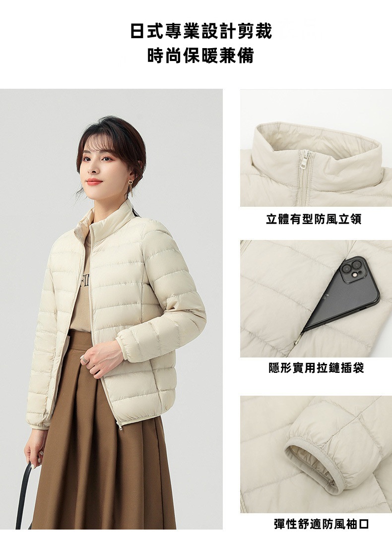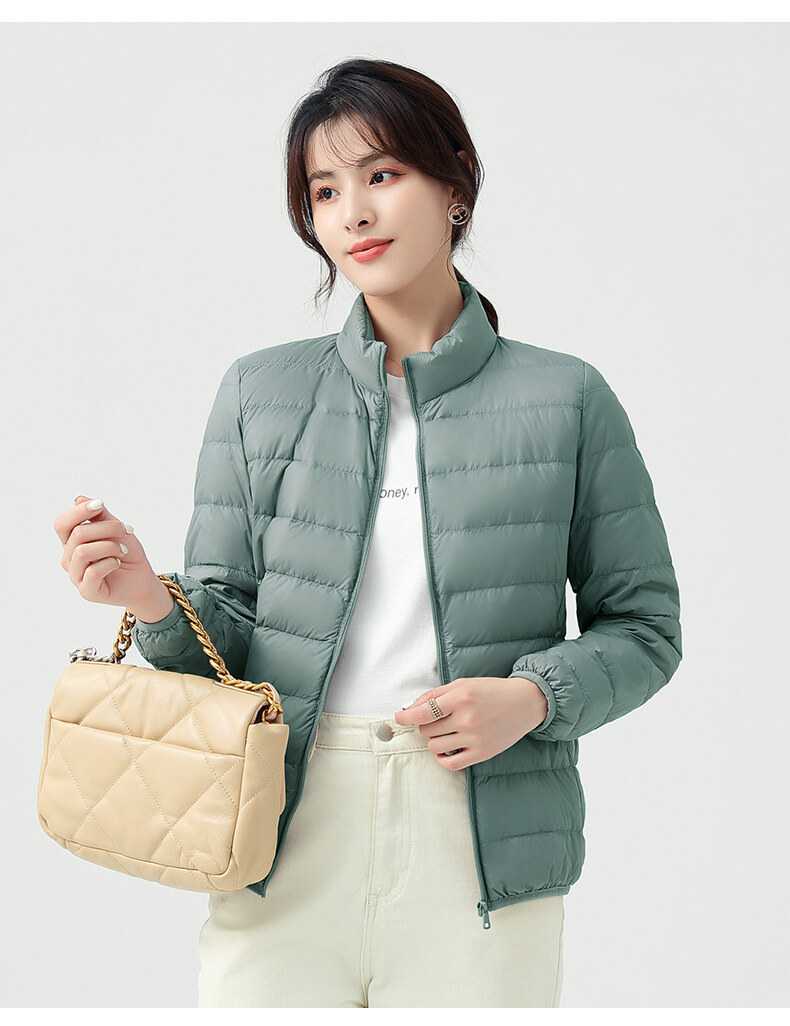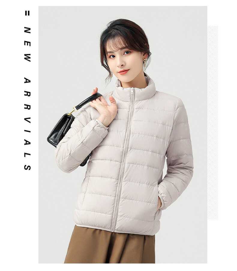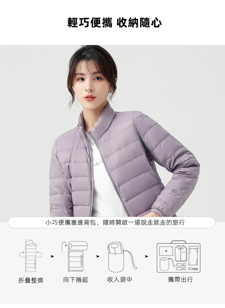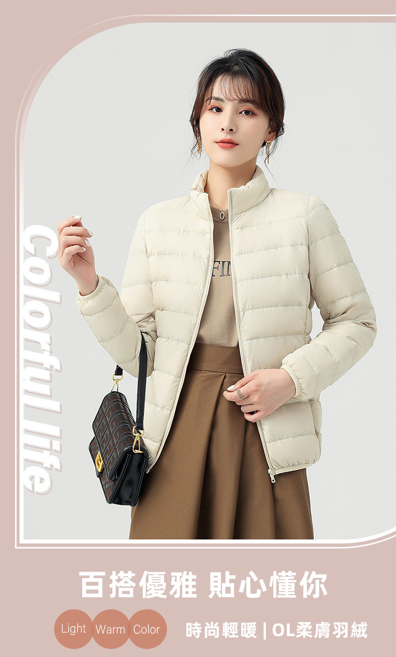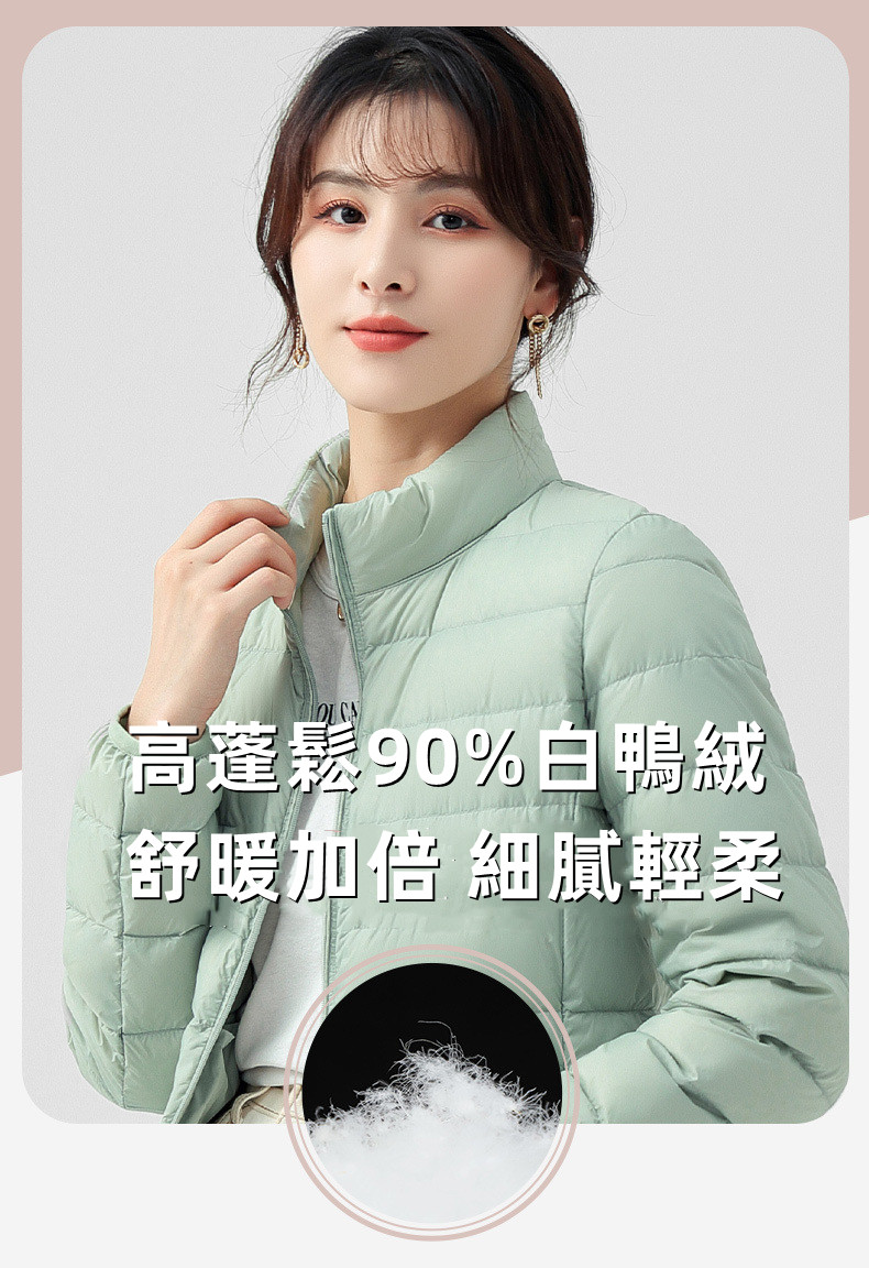 高級柔膚立領極暖羽絨外套 | 鉑金級90%白鴨絨 | 高支高密防水防跑絨 | 莫蘭迪色高級柔膚立領極輕極暖90%充絨時尚百搭女寬鬆大碼羽絨外套