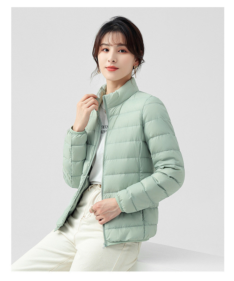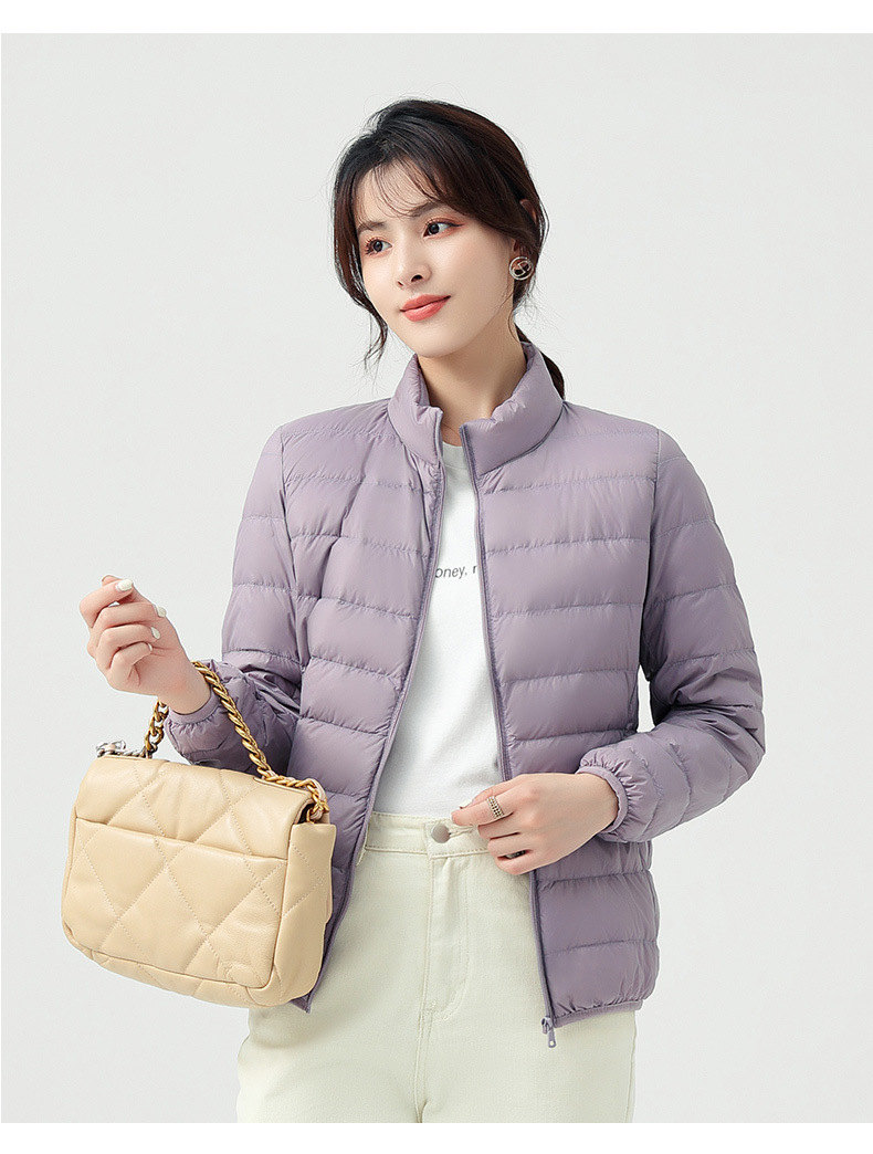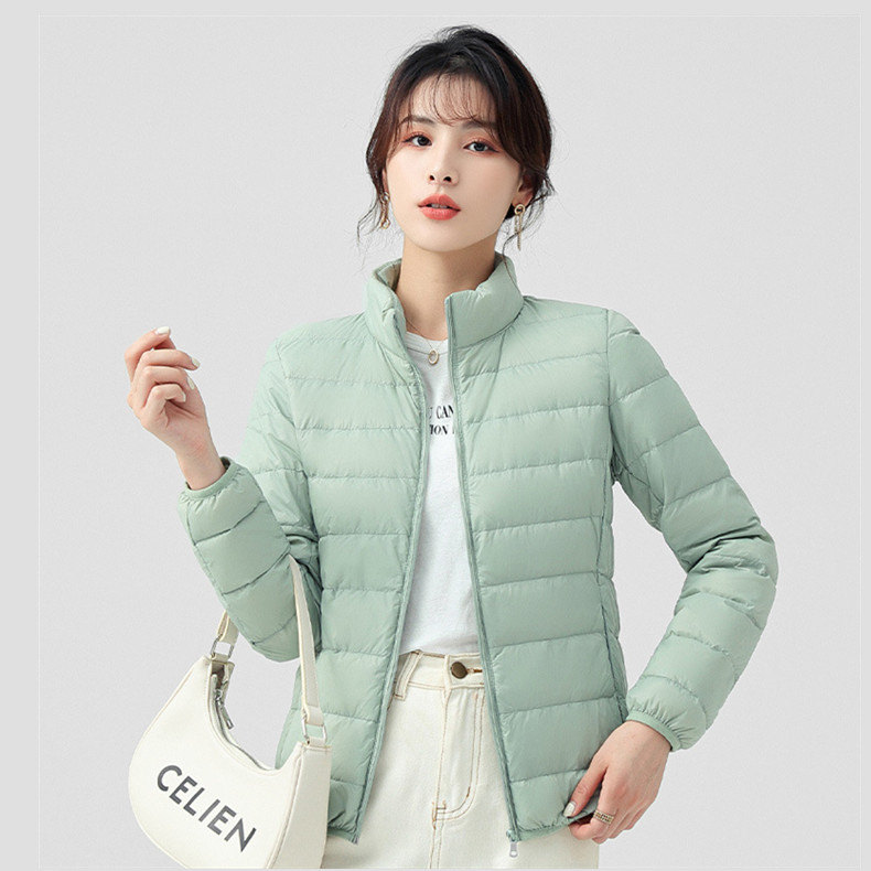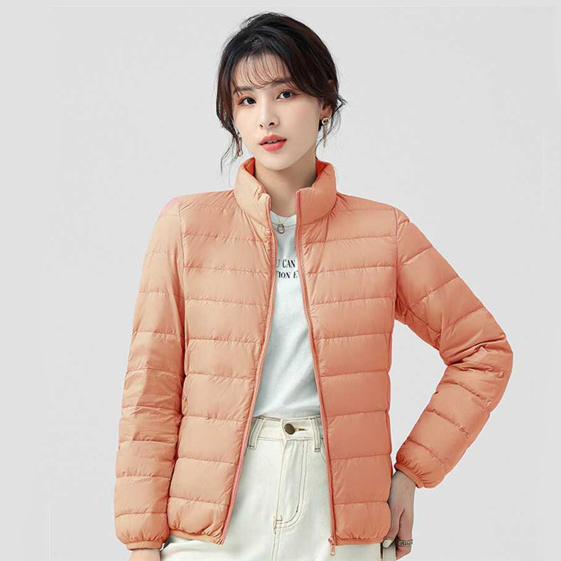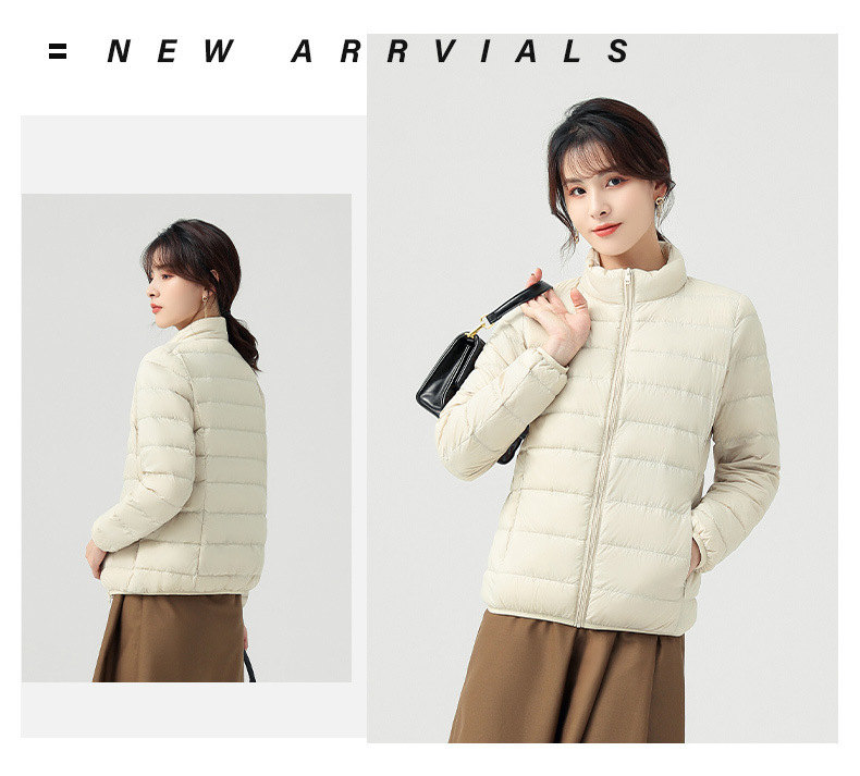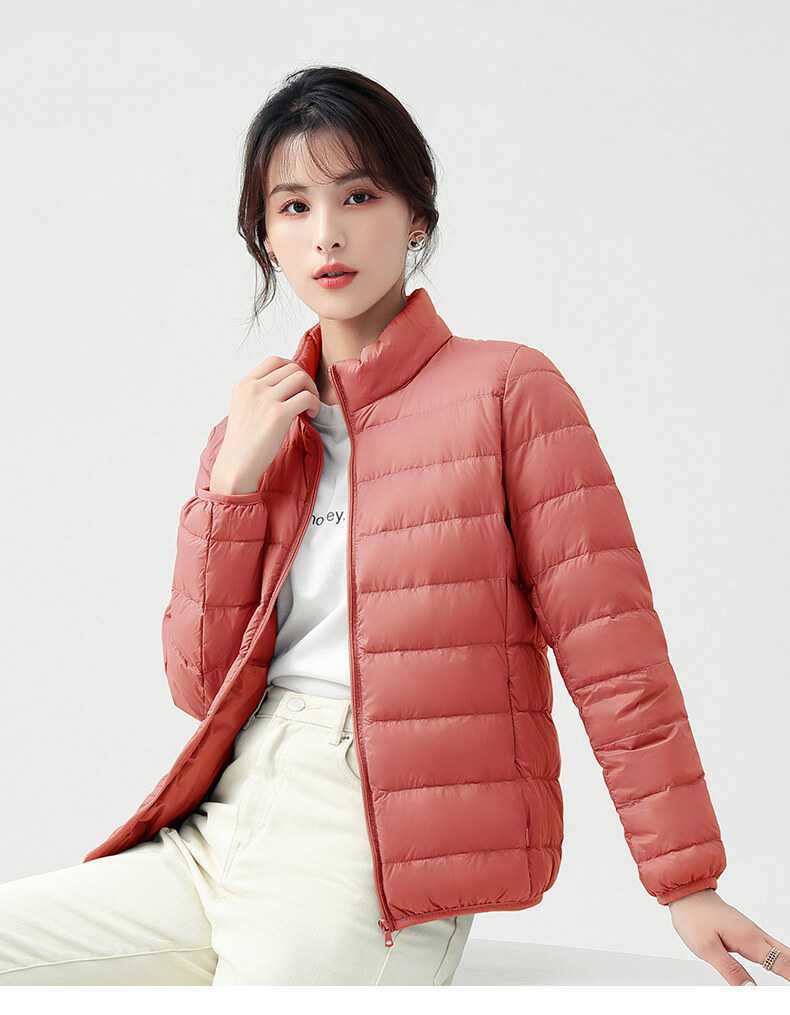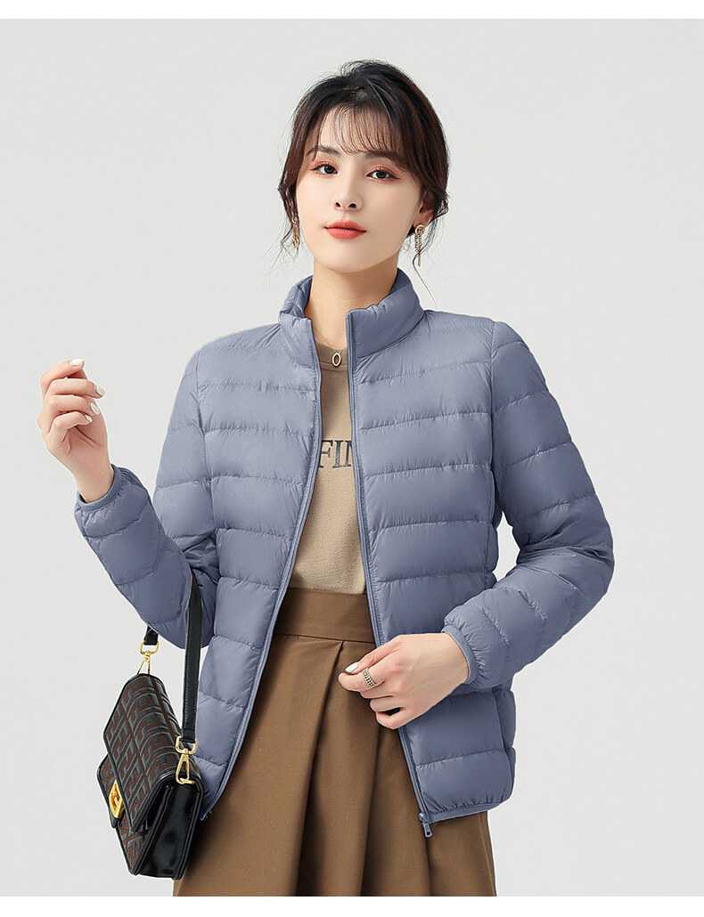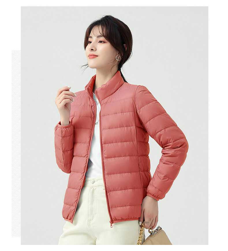 高級柔膚立領極暖羽絨外套 | 鉑金級90%白鴨絨 | 高支高密防水防跑絨 | 莫蘭迪色高級柔膚立領極輕極暖90%充絨時尚百搭女寬鬆大碼羽絨外套