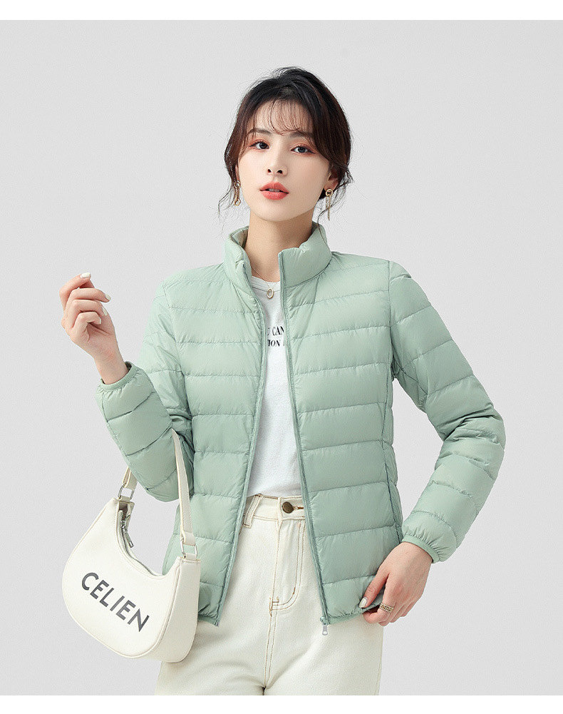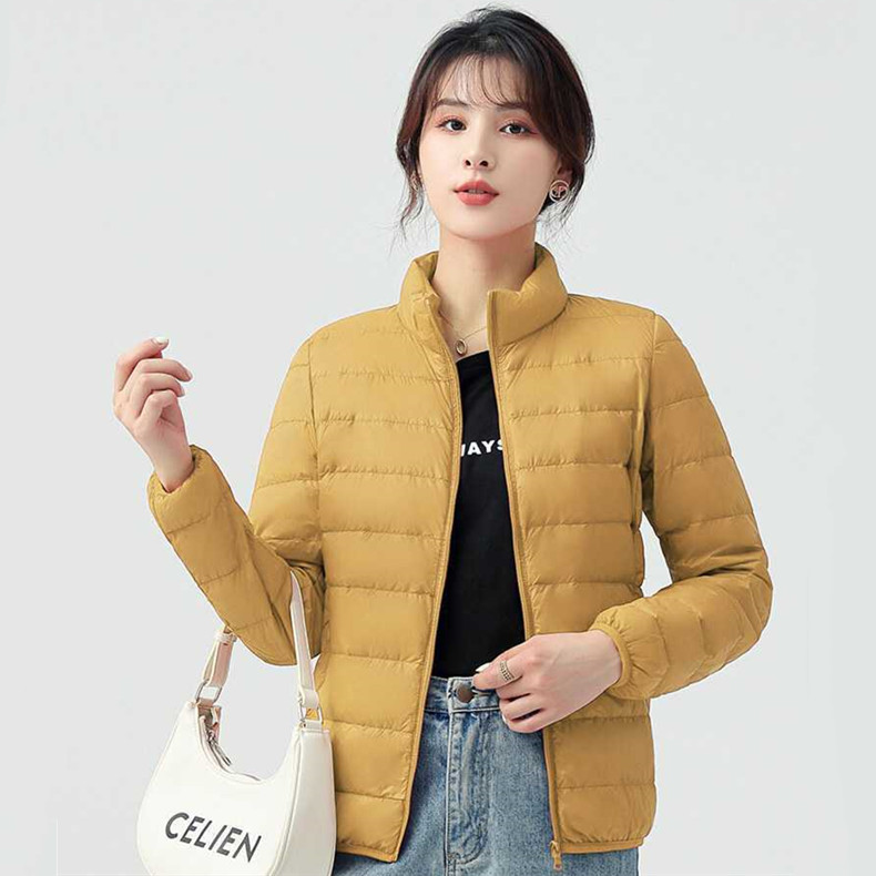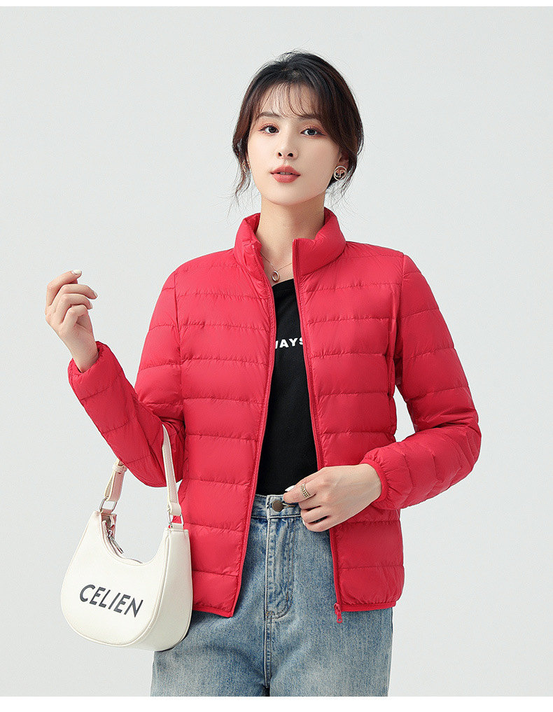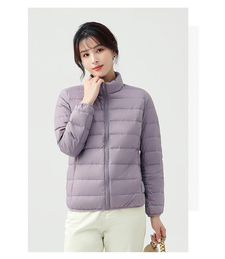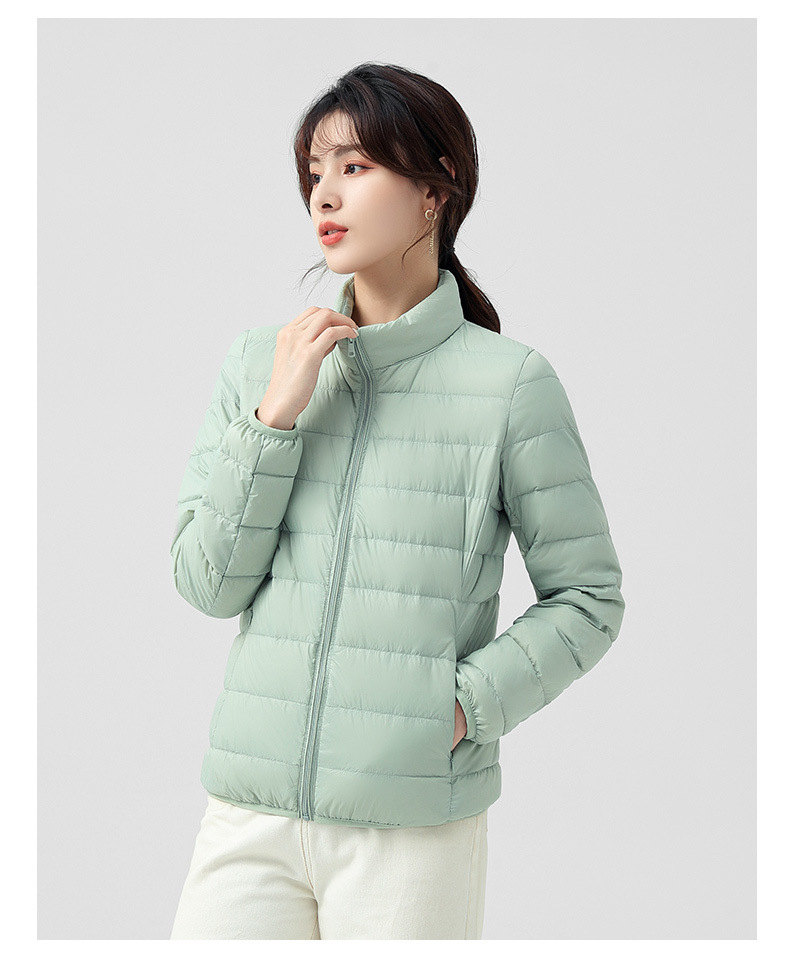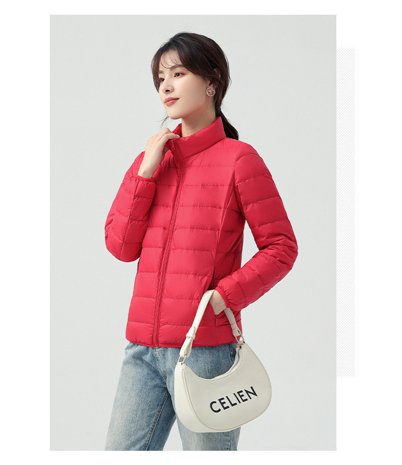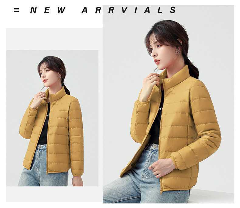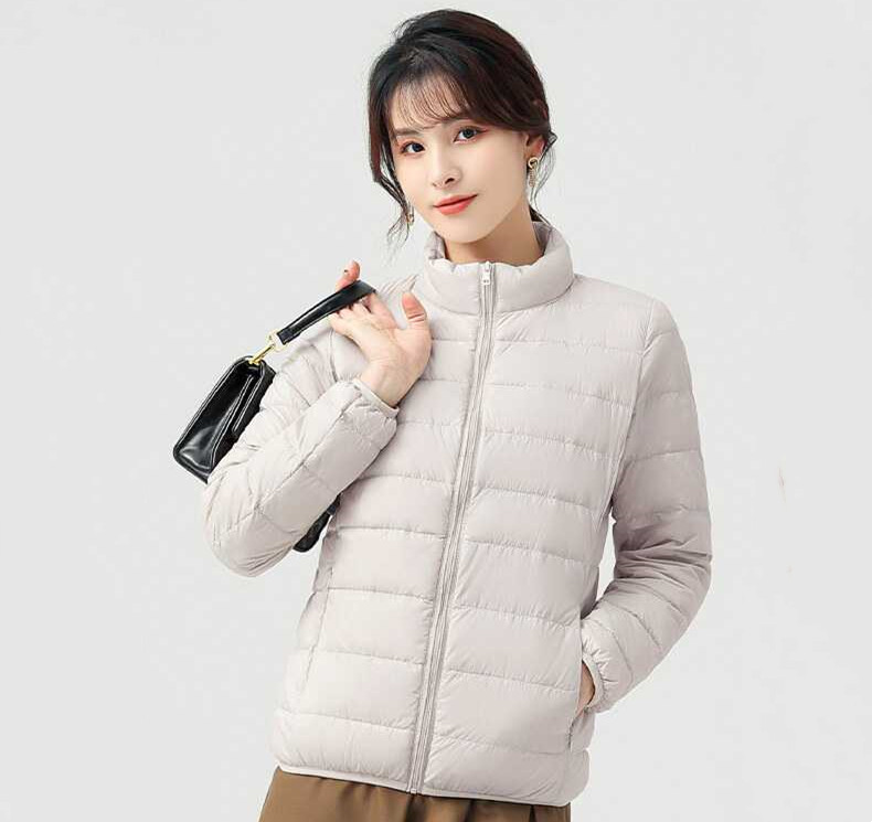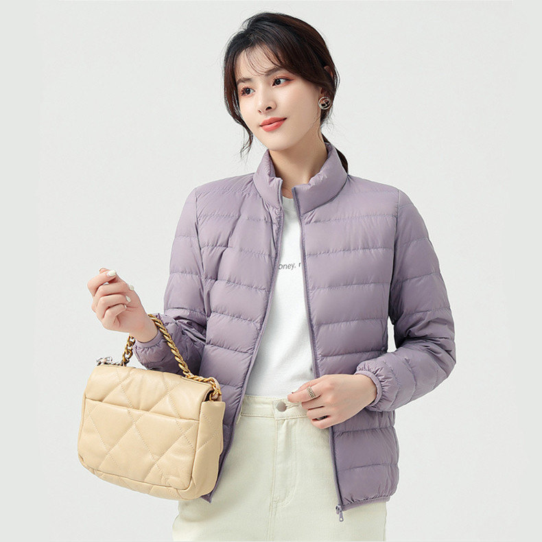 高級柔膚立領極暖羽絨外套 | 鉑金級90%白鴨絨 | 高支高密防水防跑絨 | 莫蘭迪色高級柔膚立領極輕極暖90%充絨時尚百搭女寬鬆大碼羽絨外套