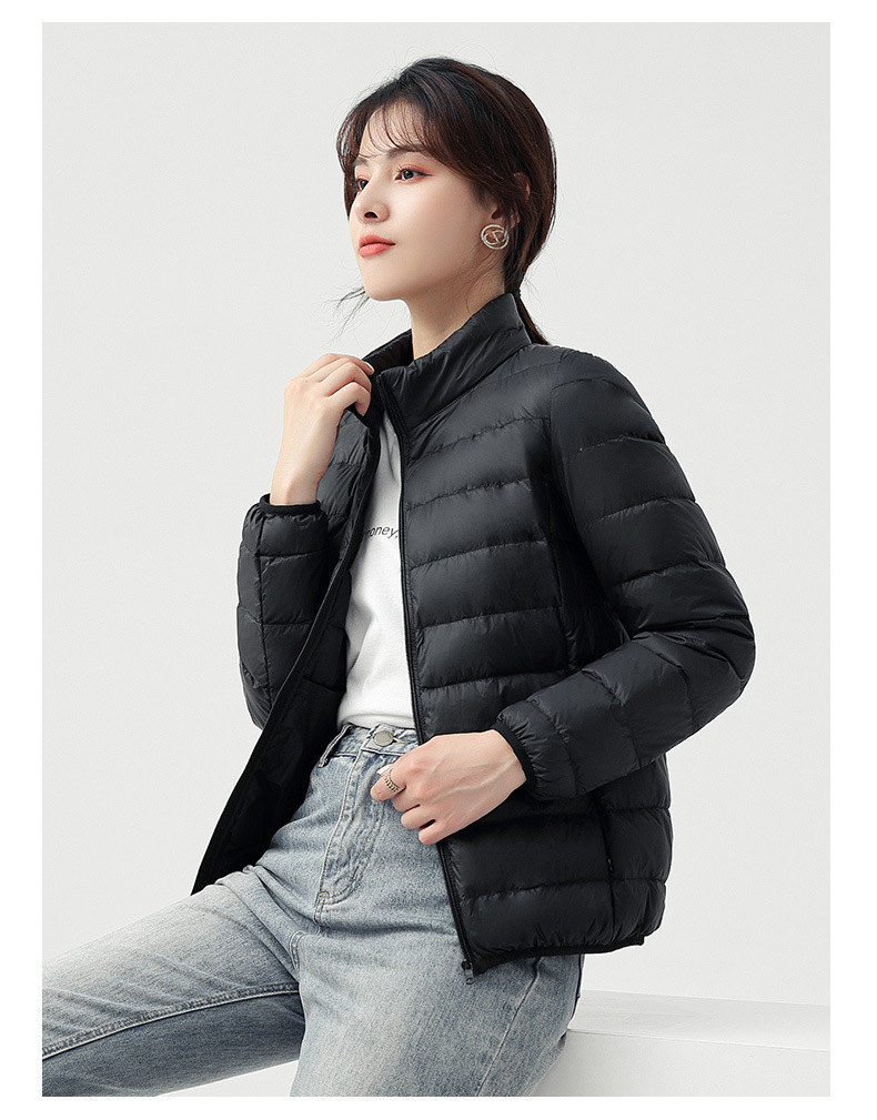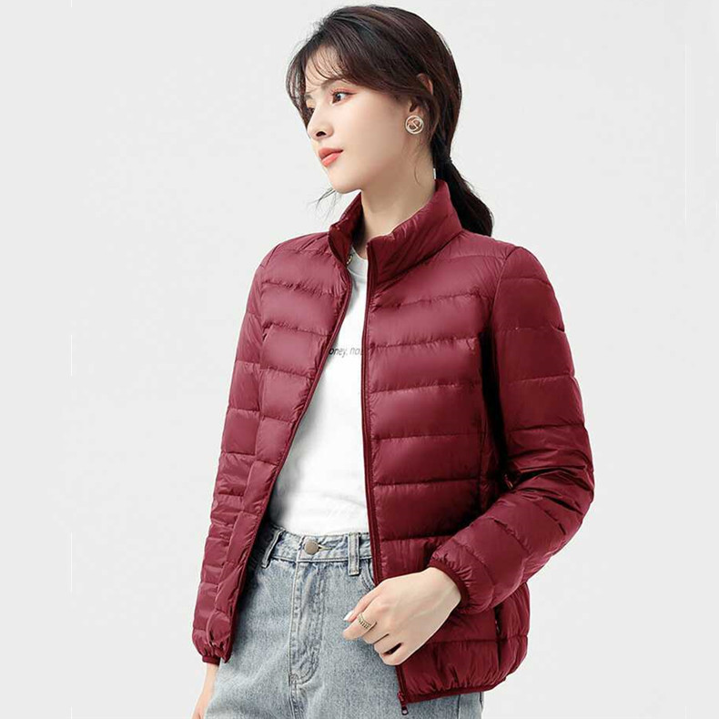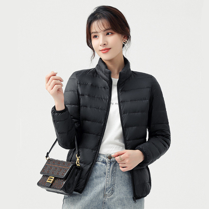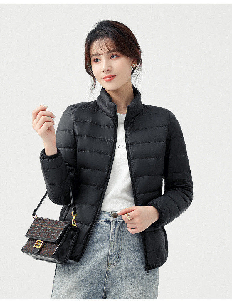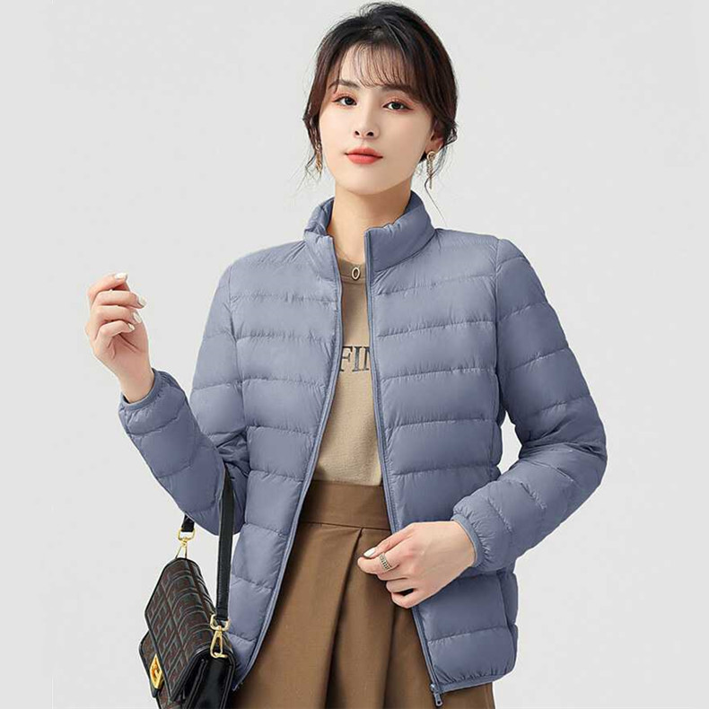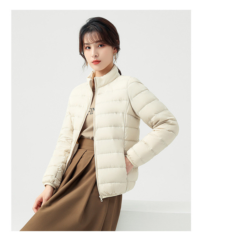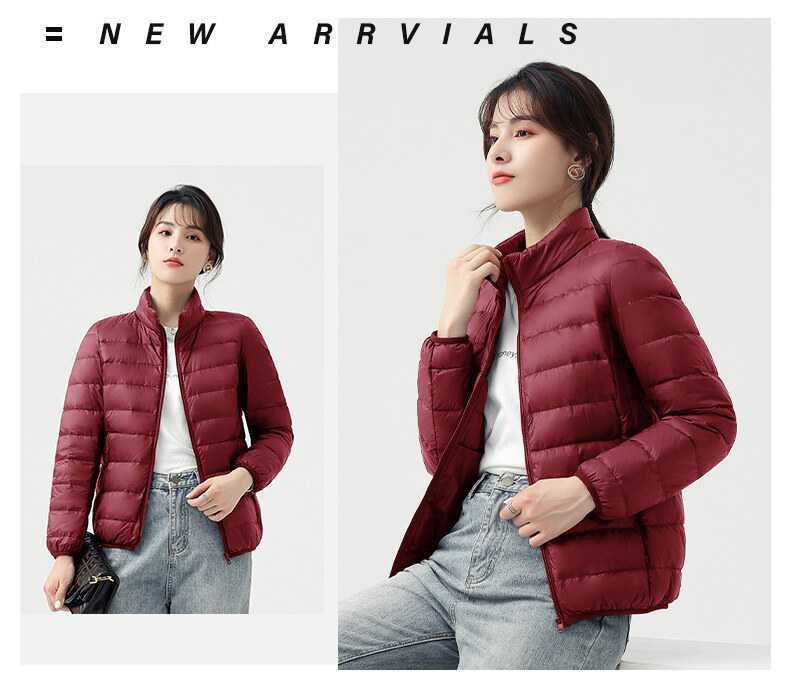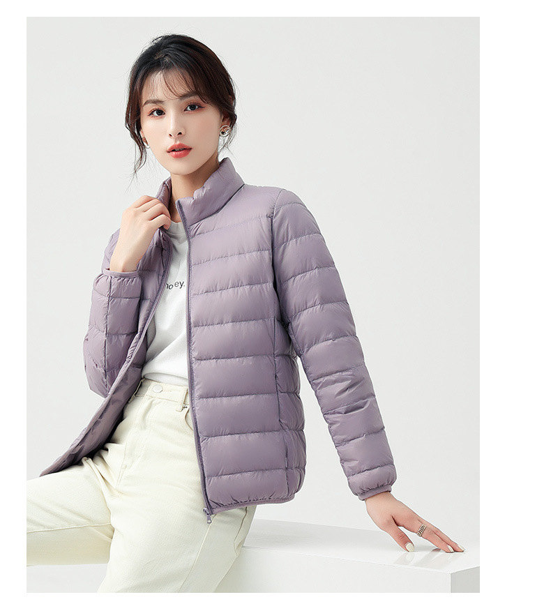 高級柔膚立領極暖羽絨外套 | 鉑金級90%白鴨絨 | 高支高密防水防跑絨 | 莫蘭迪色高級柔膚立領極輕極暖90%充絨時尚百搭女寬鬆大碼羽絨外套