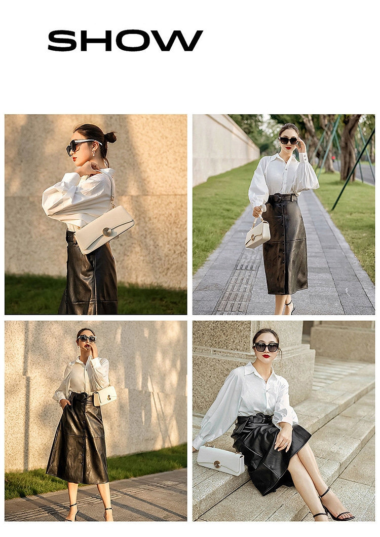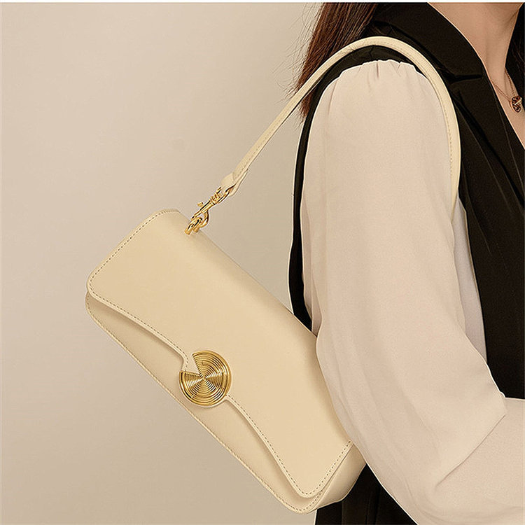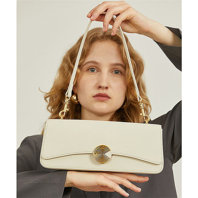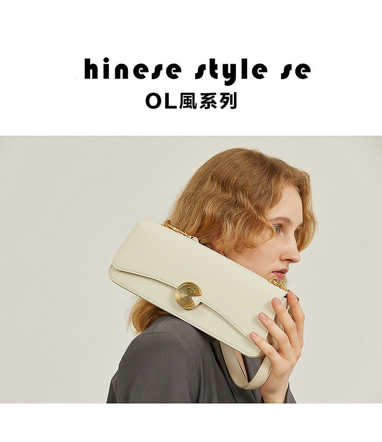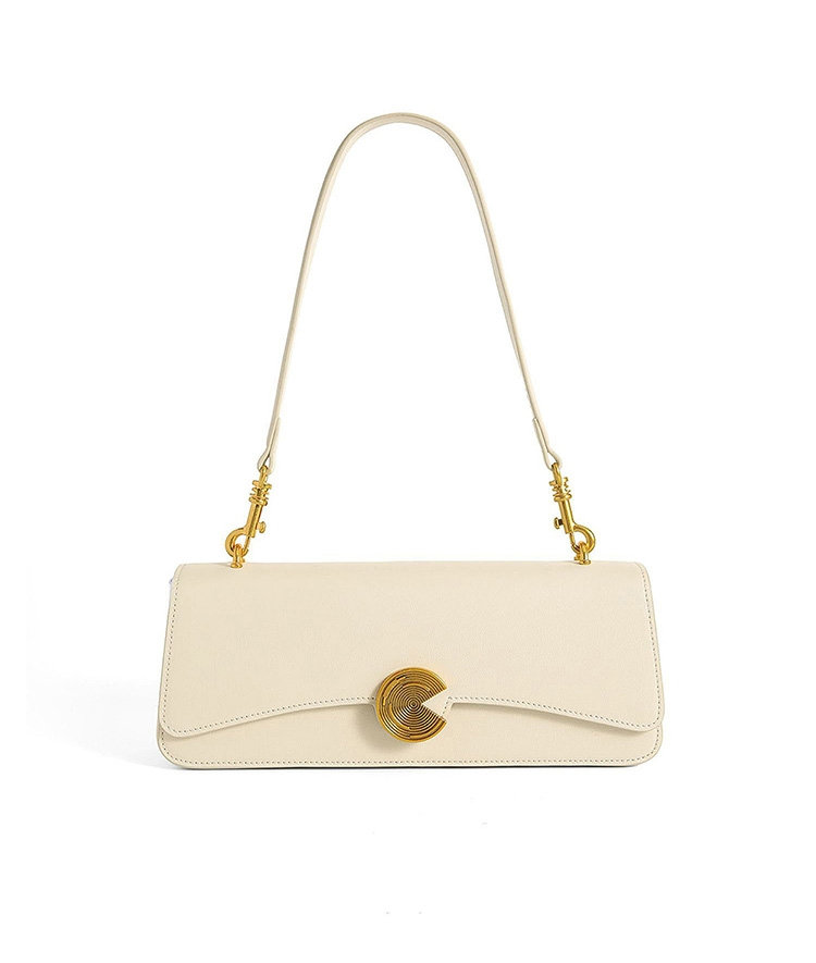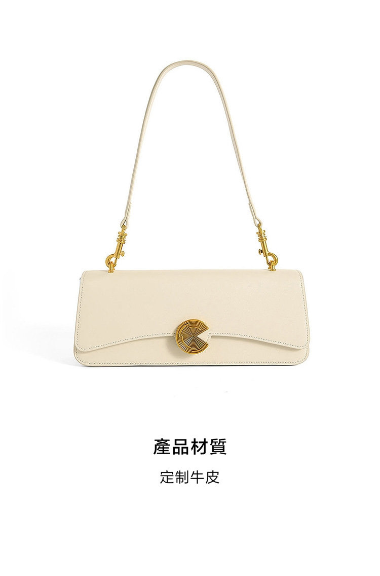 高級感法棍包 | 真皮小牛皮 | 圓餅唱片機造型五金 | 側背包 | 斜背包 | 夜幕黑色女包