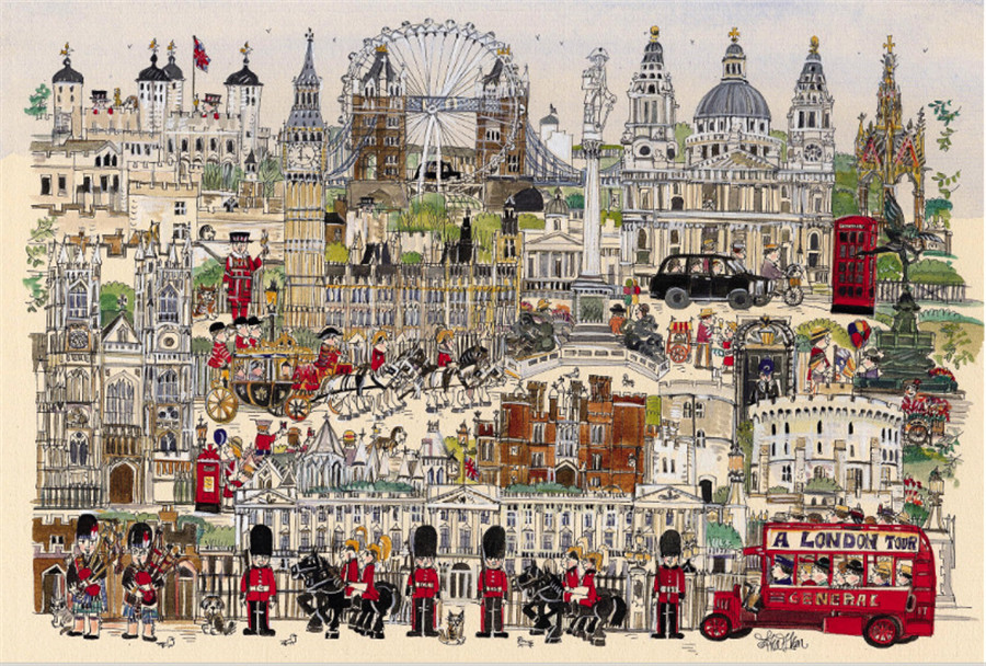 【倫敦寫意】【高難度1000片】【環保木質】【可捲可提】插畫風格精品減壓1000片環保木質覆膜無毒無味大呎寸拼圖