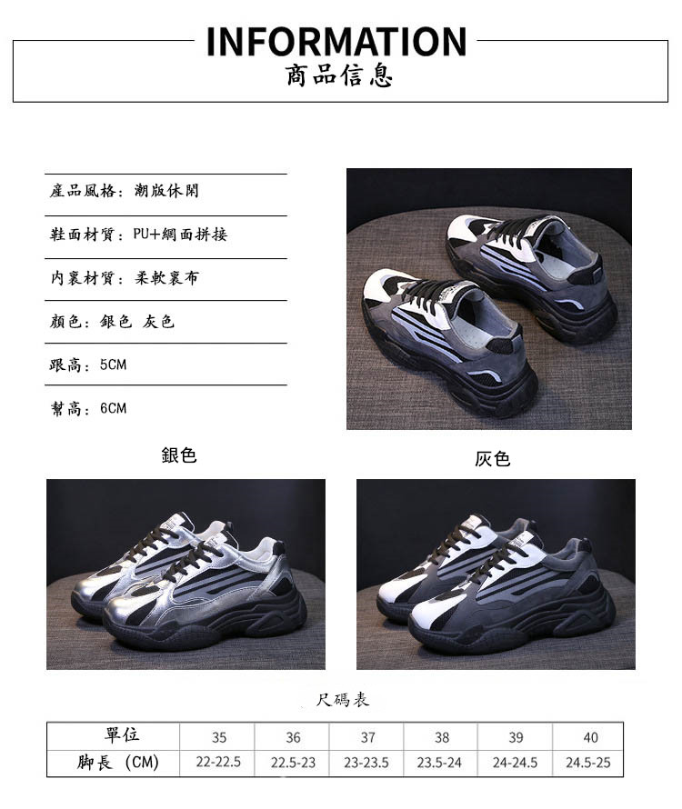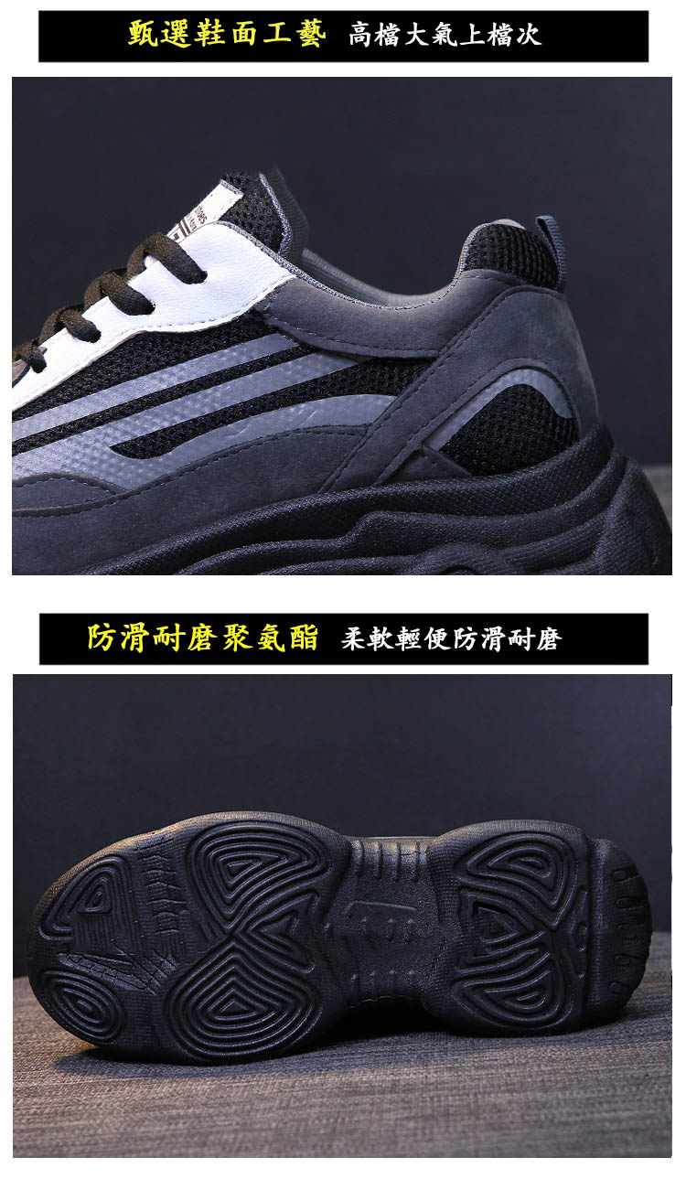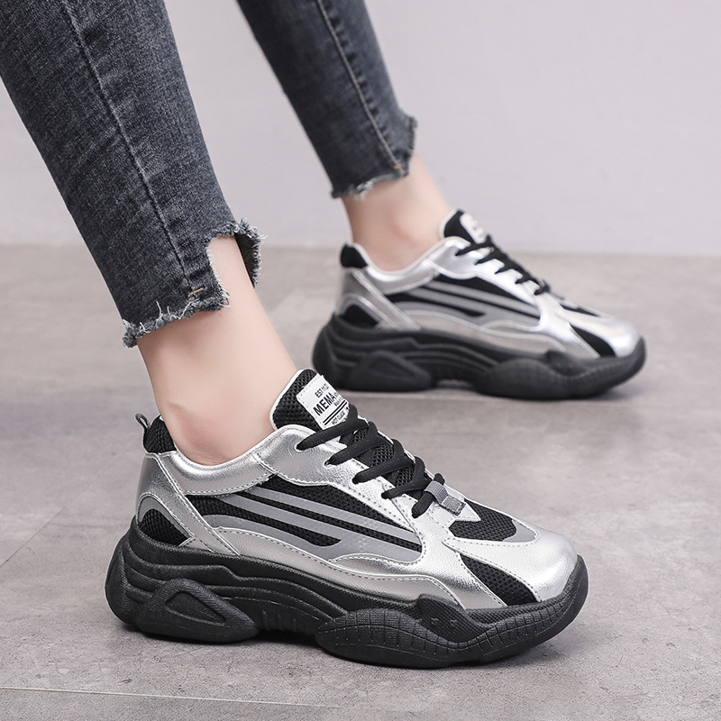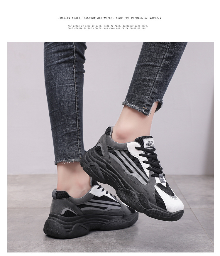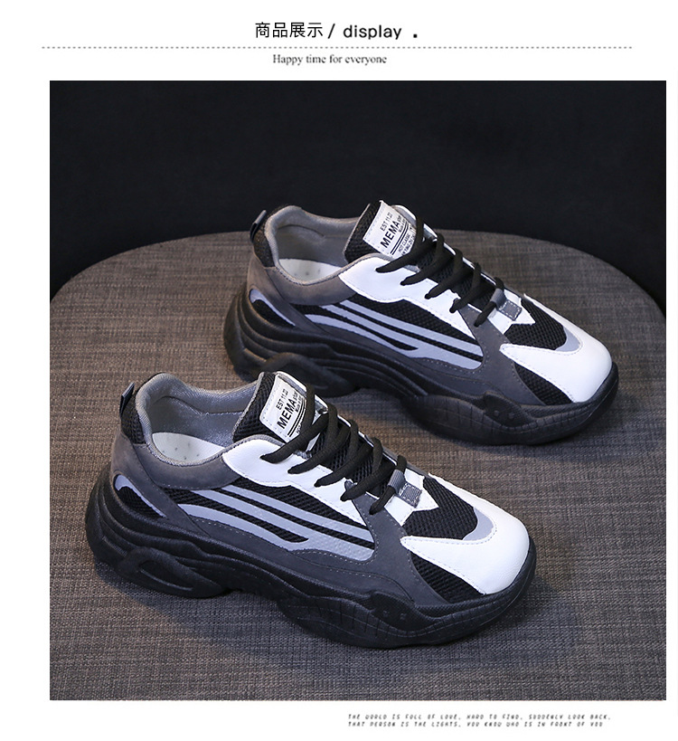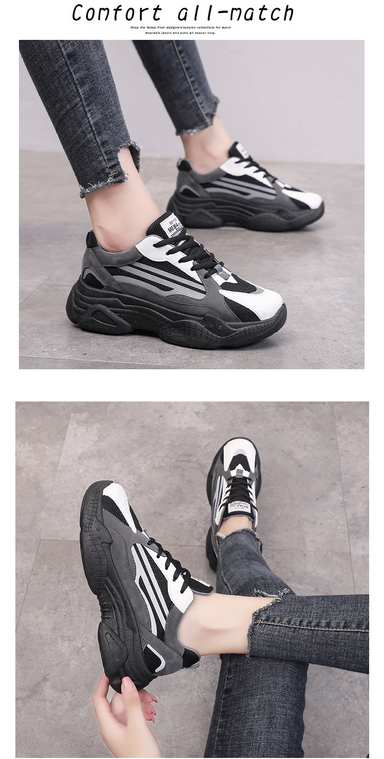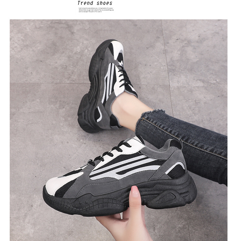 【小資冷淡風】【夜間反光帶】【5cm跟高】OL小資冷淡設計反光舒適透氣厚底增高顯瘦女鞋運動老爹鞋