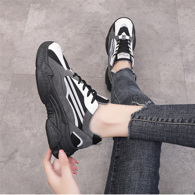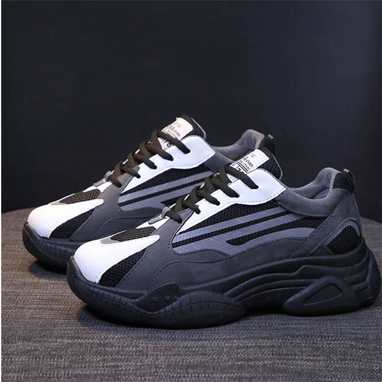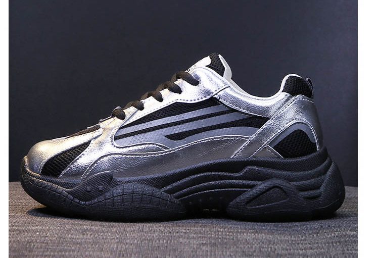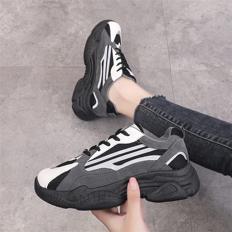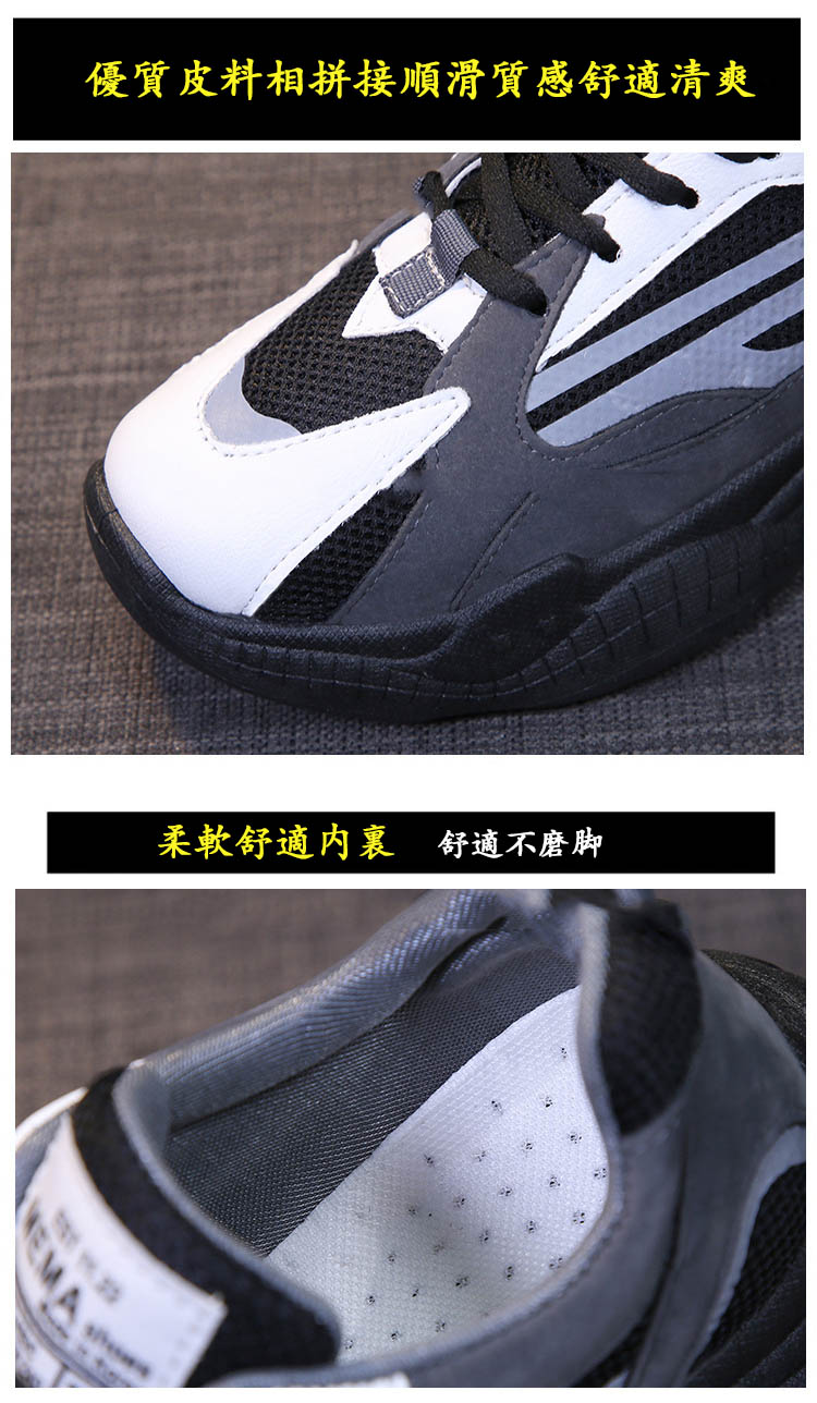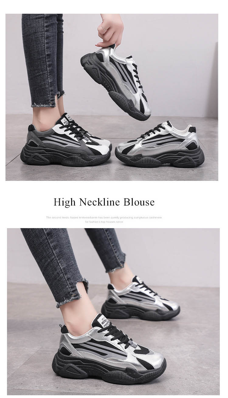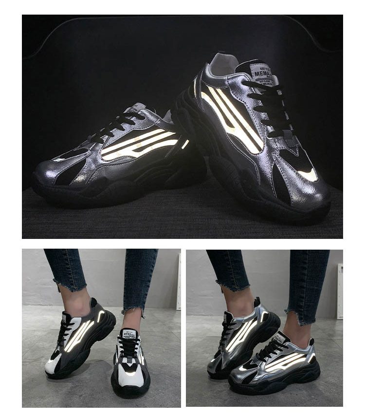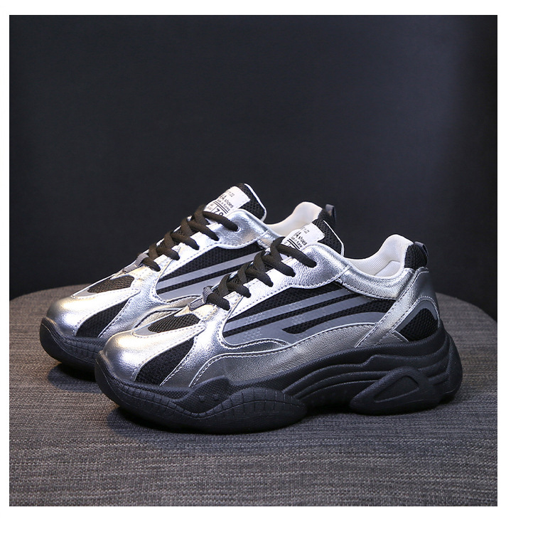 【小資冷淡風】【夜間反光帶】【5cm跟高】OL小資冷淡設計反光舒適透氣厚底增高顯瘦女鞋運動老爹鞋