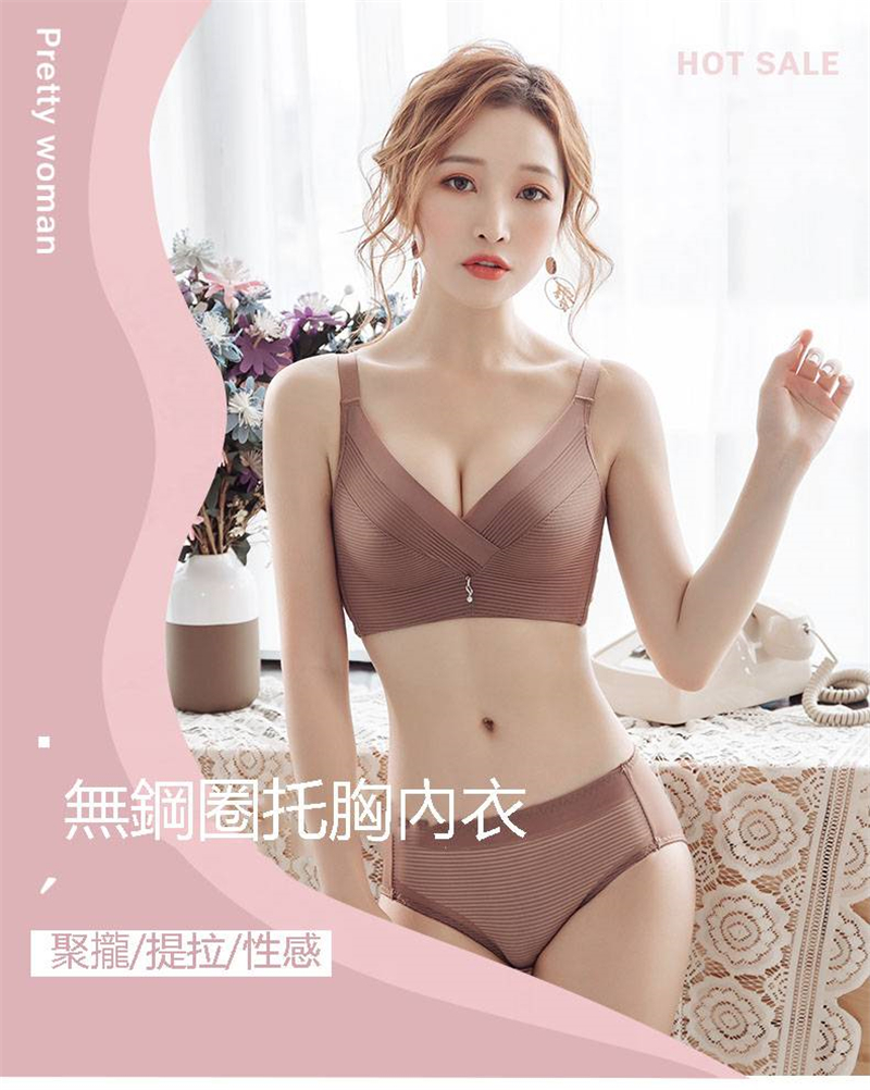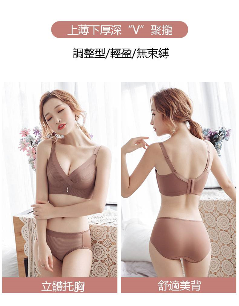 超值六入內衣褲組 | 深V立體聚攏托胸內衣 | 無鋼圈零負擔 | 舒適透氣四季可用 | 網美超愛防下垂聚攏托胸無鋼圈舒適透氣美背內衣褲組