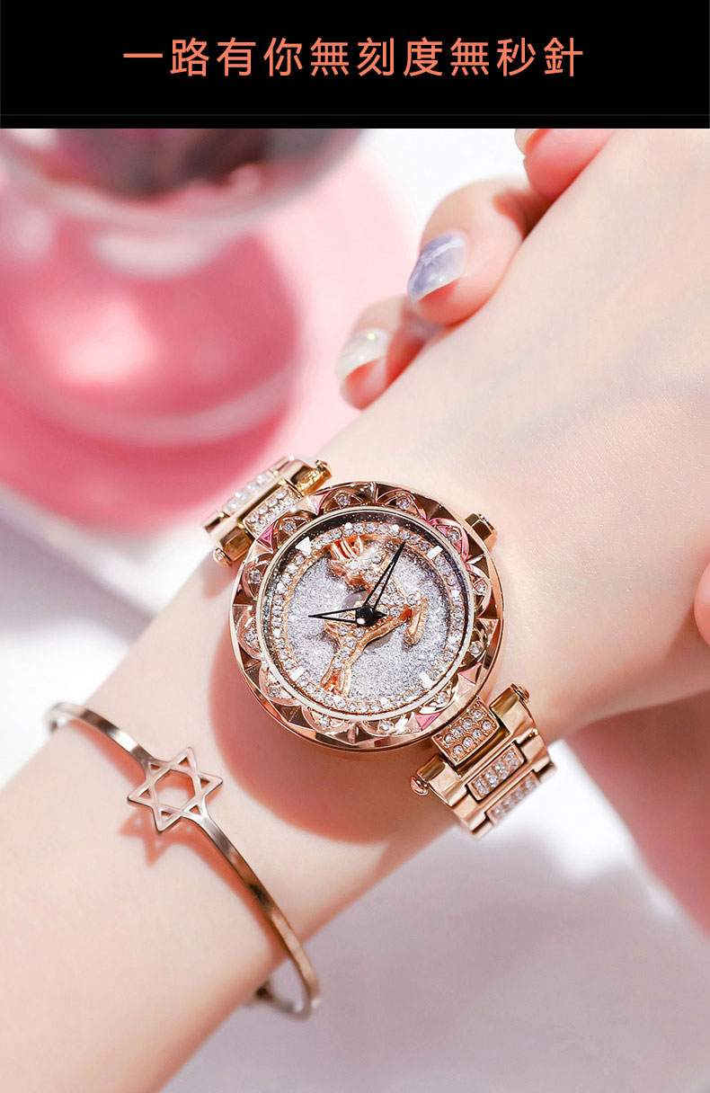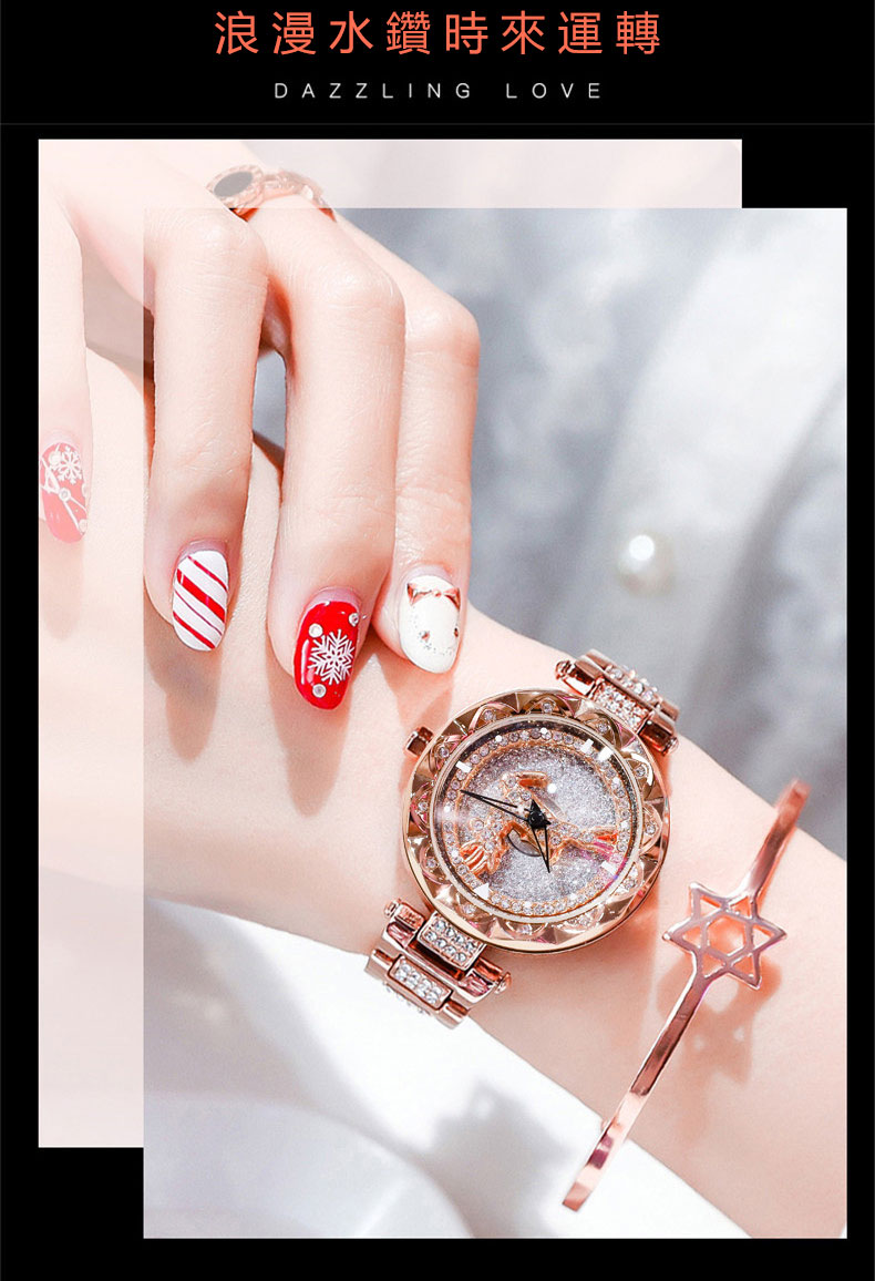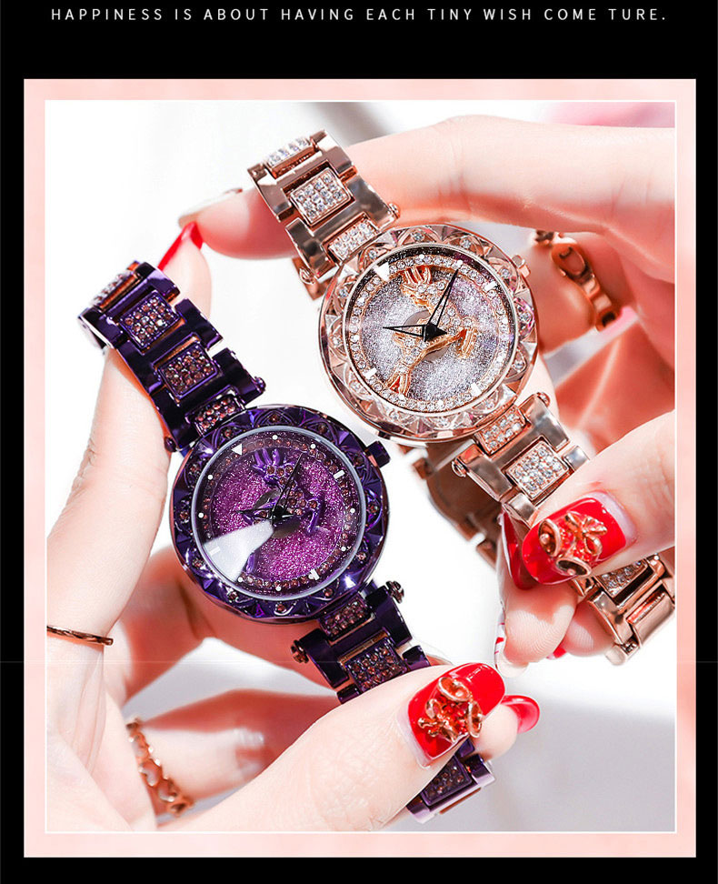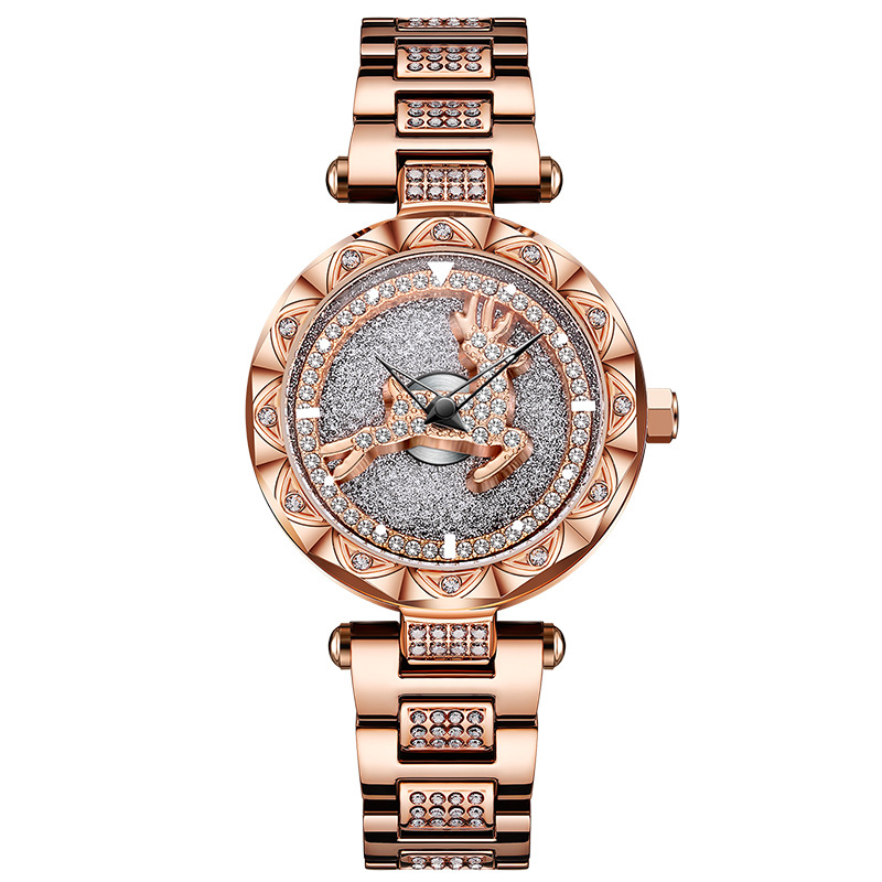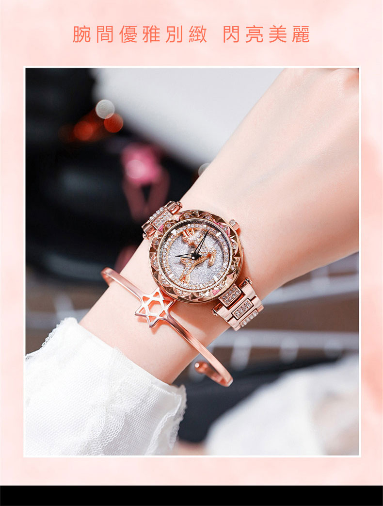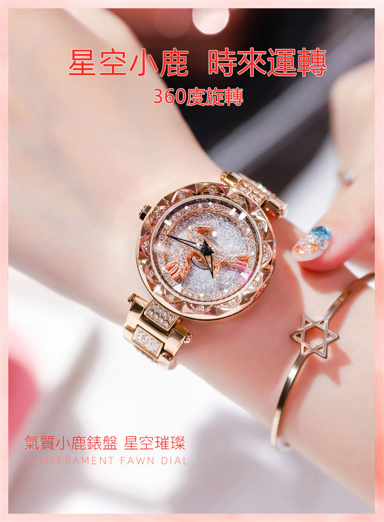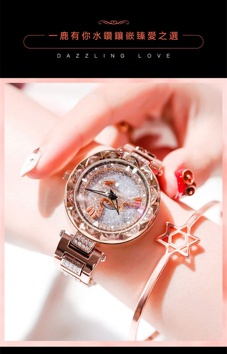 一鹿有你星空麋鹿手錶 | 時來運轉旋轉錶盤 | 玫金鑲鑽錶帶 | 星空小鹿鑲鑽旋轉錶盤石英女手錶