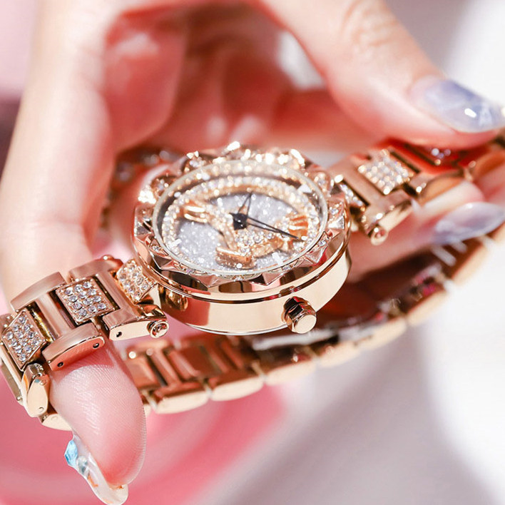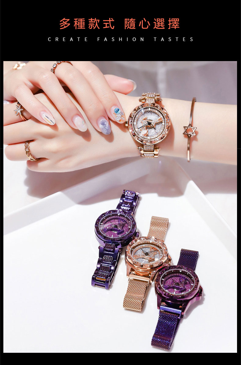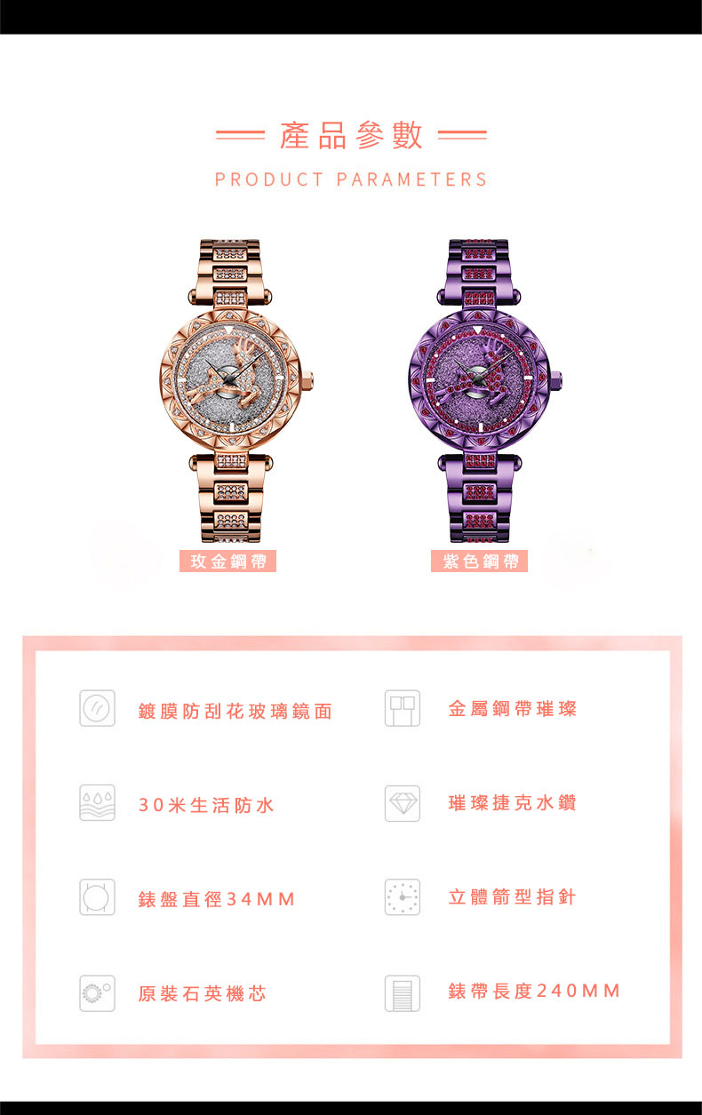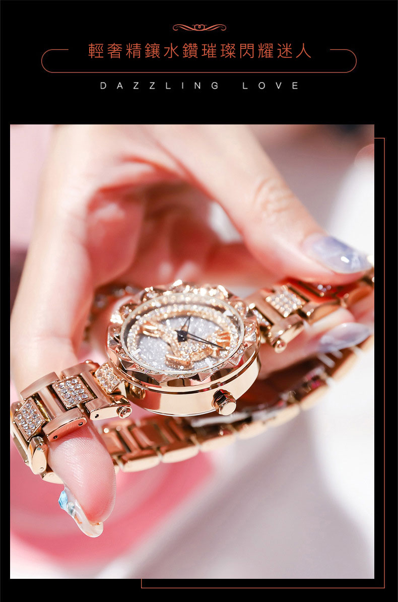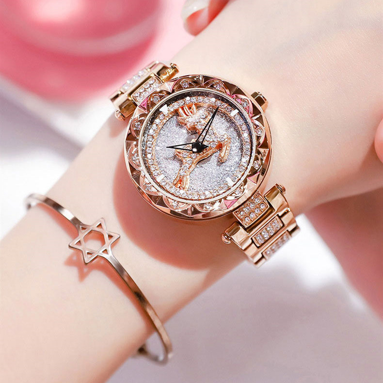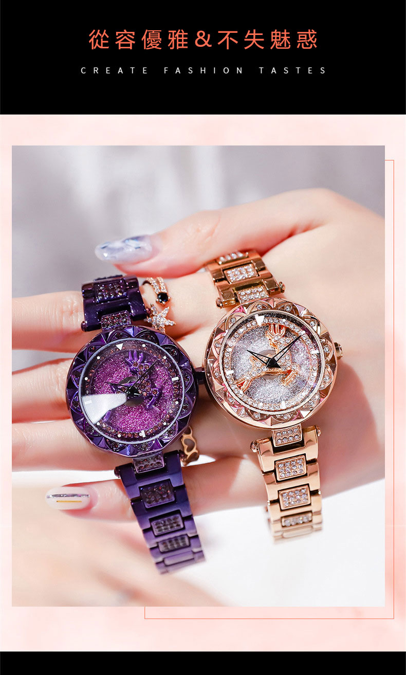 一鹿有你星空麋鹿手錶 | 時來運轉旋轉錶盤 | 玫金鑲鑽錶帶 | 星空小鹿鑲鑽旋轉錶盤石英女手錶