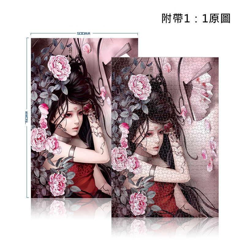 【靜物花】【高難度1000片】【環保木質】【可捲可提】插畫風格精品減壓1000片環保木質覆膜無毒無味大呎寸拼圖