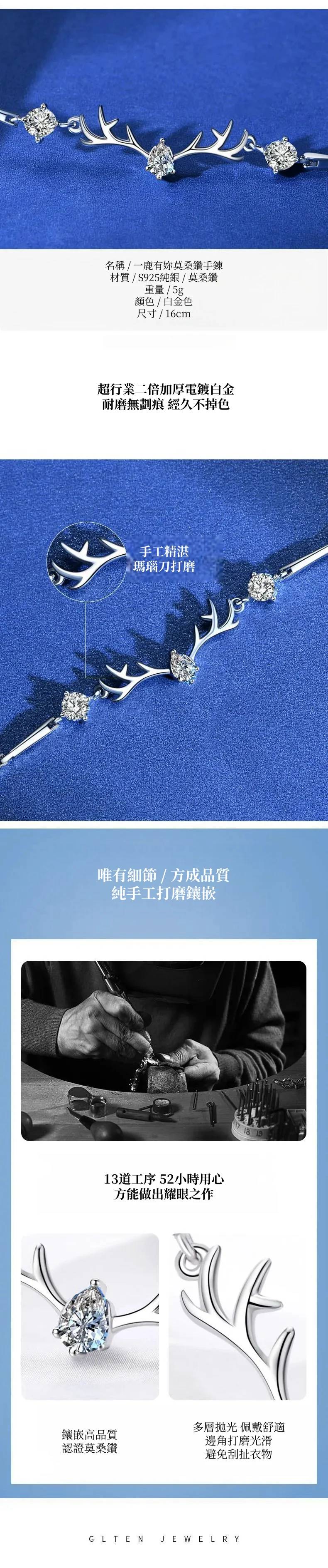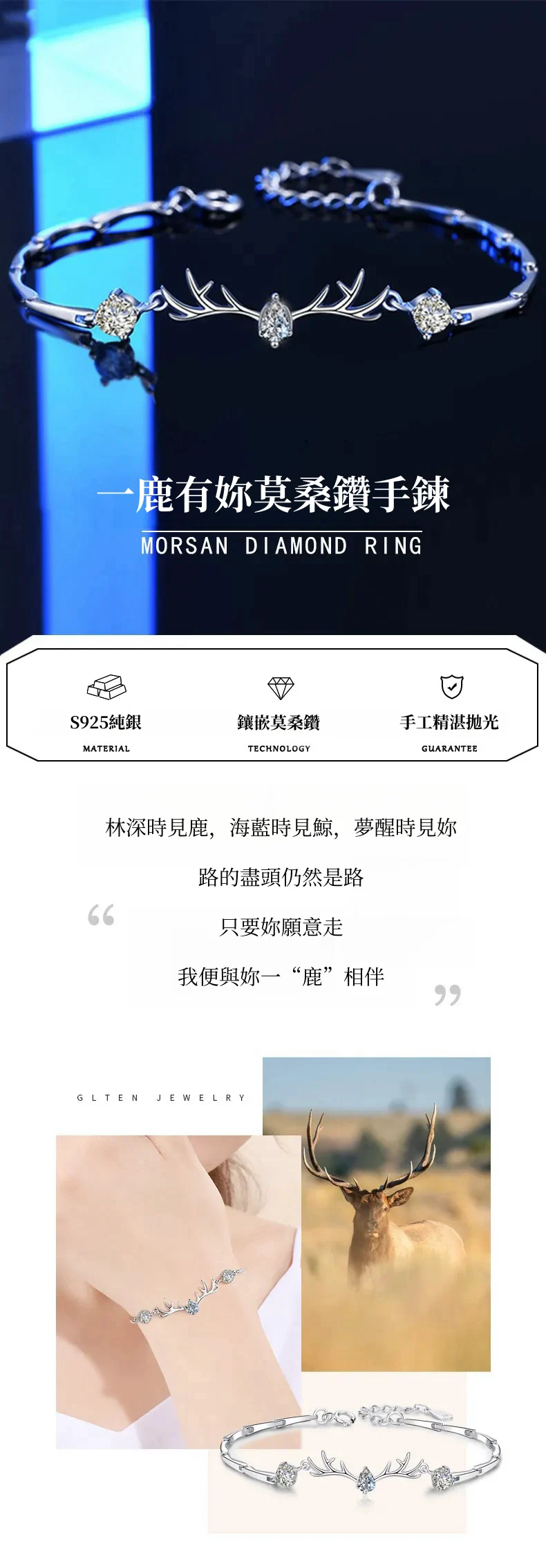 一鹿有妳鑽石手鍊 | 鑲嵌1克拉莫桑鑽 | 可過測鑽筆 | 附GRA認證證書 | 3EX級切工 | S925純銀 | 手工精緻拋光 | 高級送女生禮物莫桑鑽女生手鍊