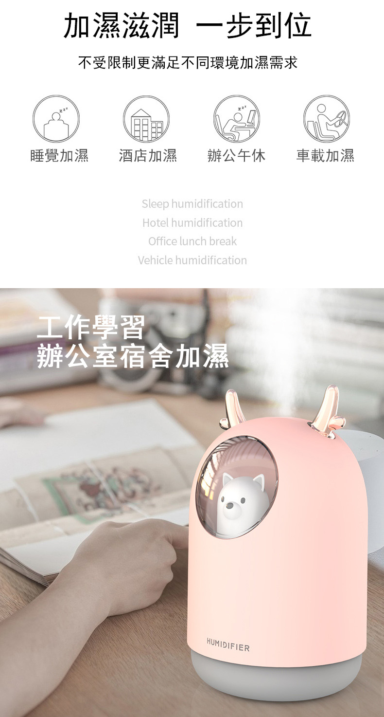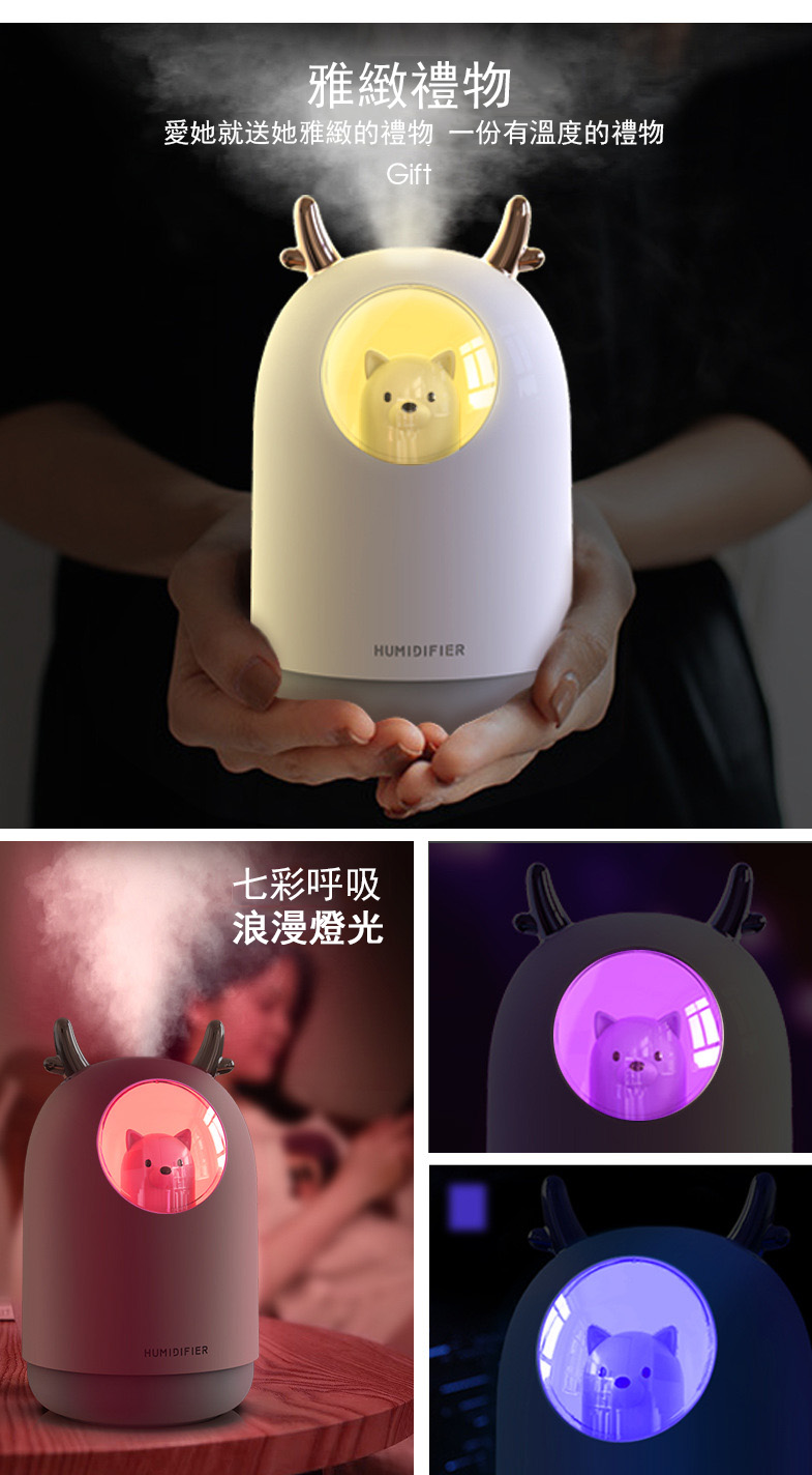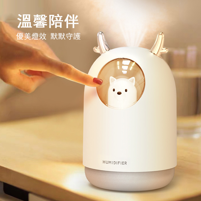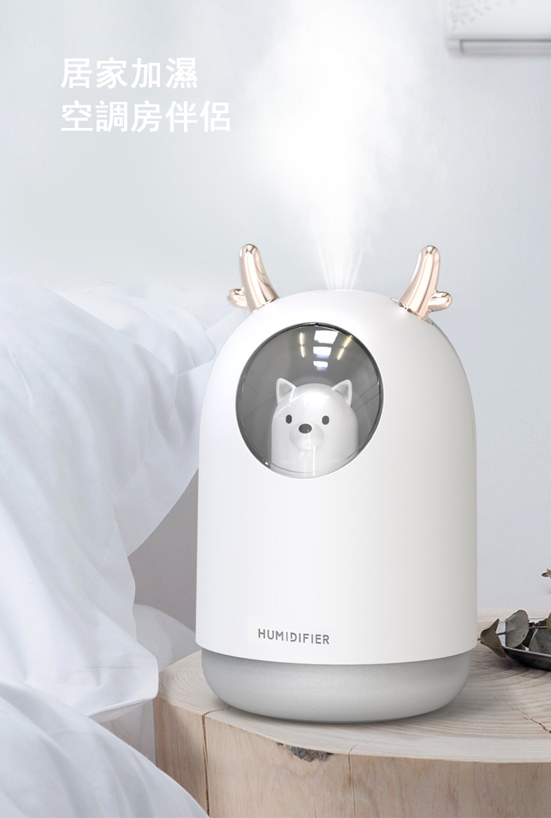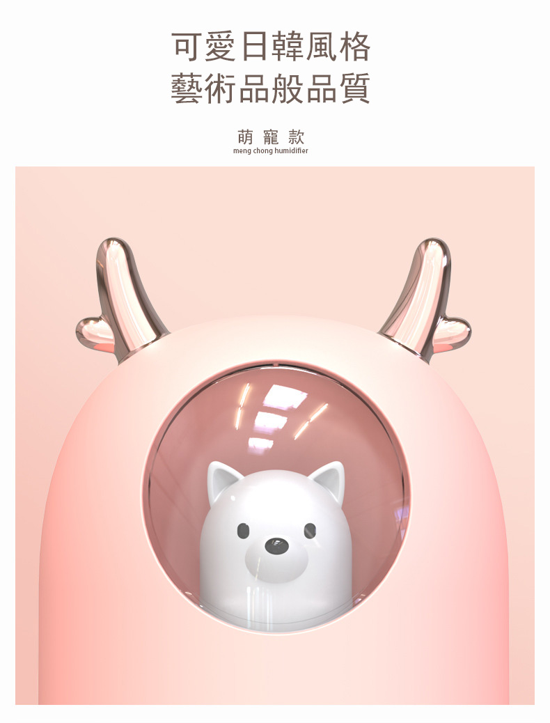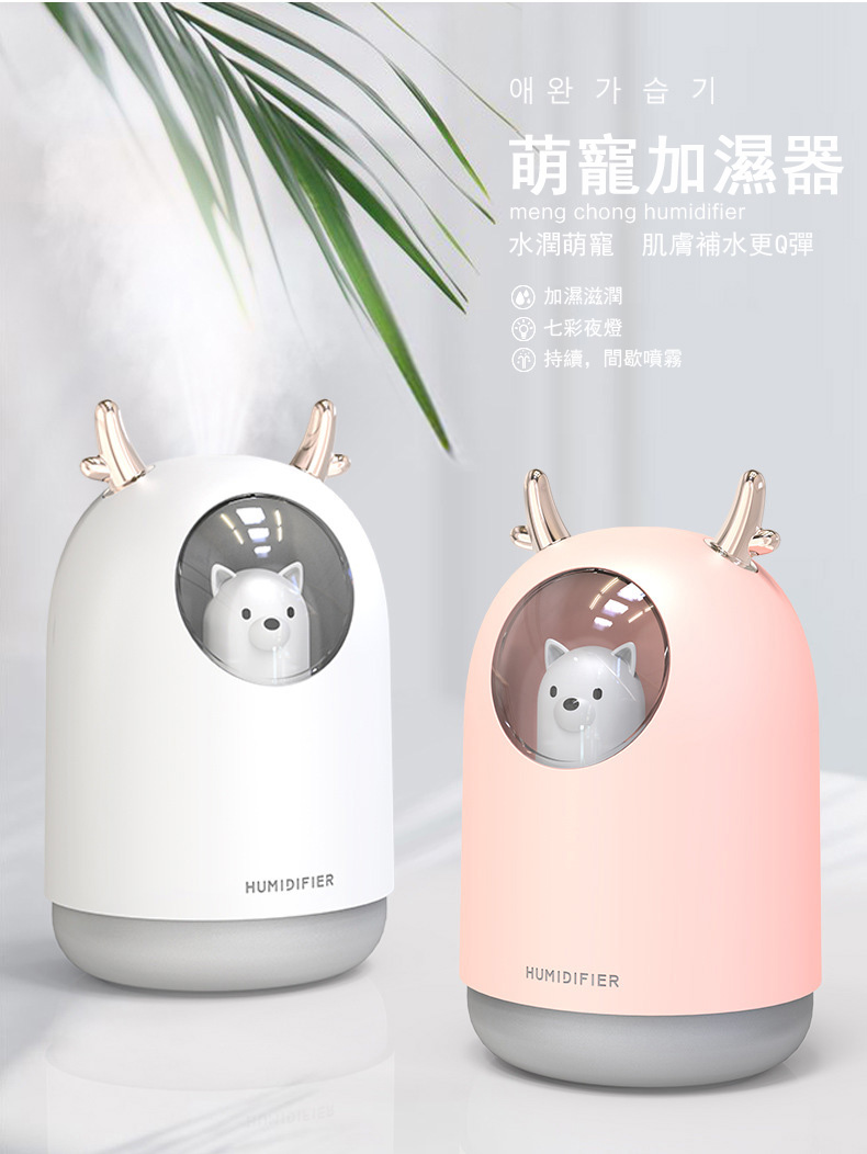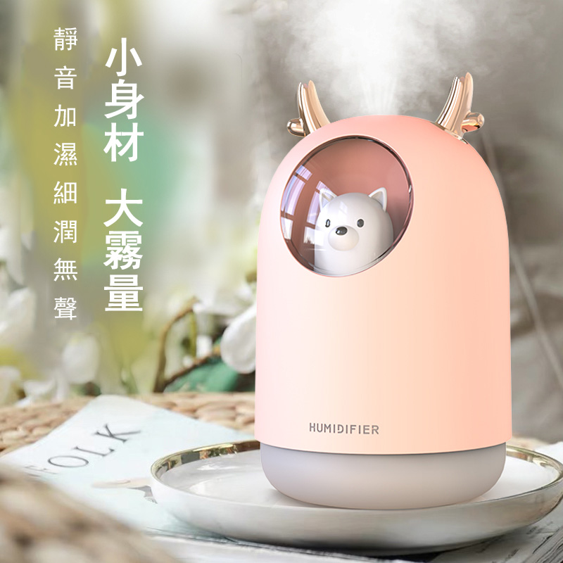 【萌寵夜燈加濕器水氧機】【便攜300ML水箱】【七彩夜燈】聖誕交換禮物可愛迷你萌寵奈米霧化靜音USB加濕器水氧機