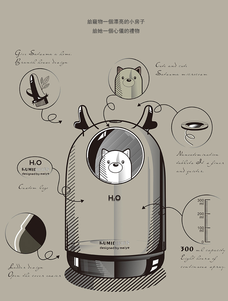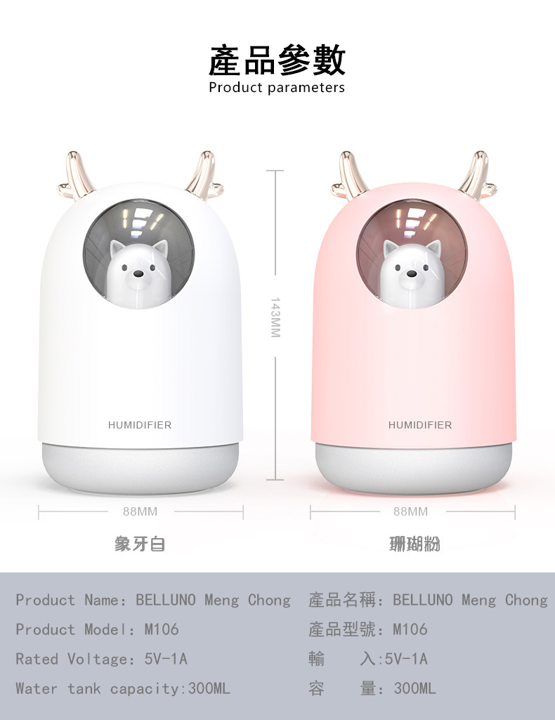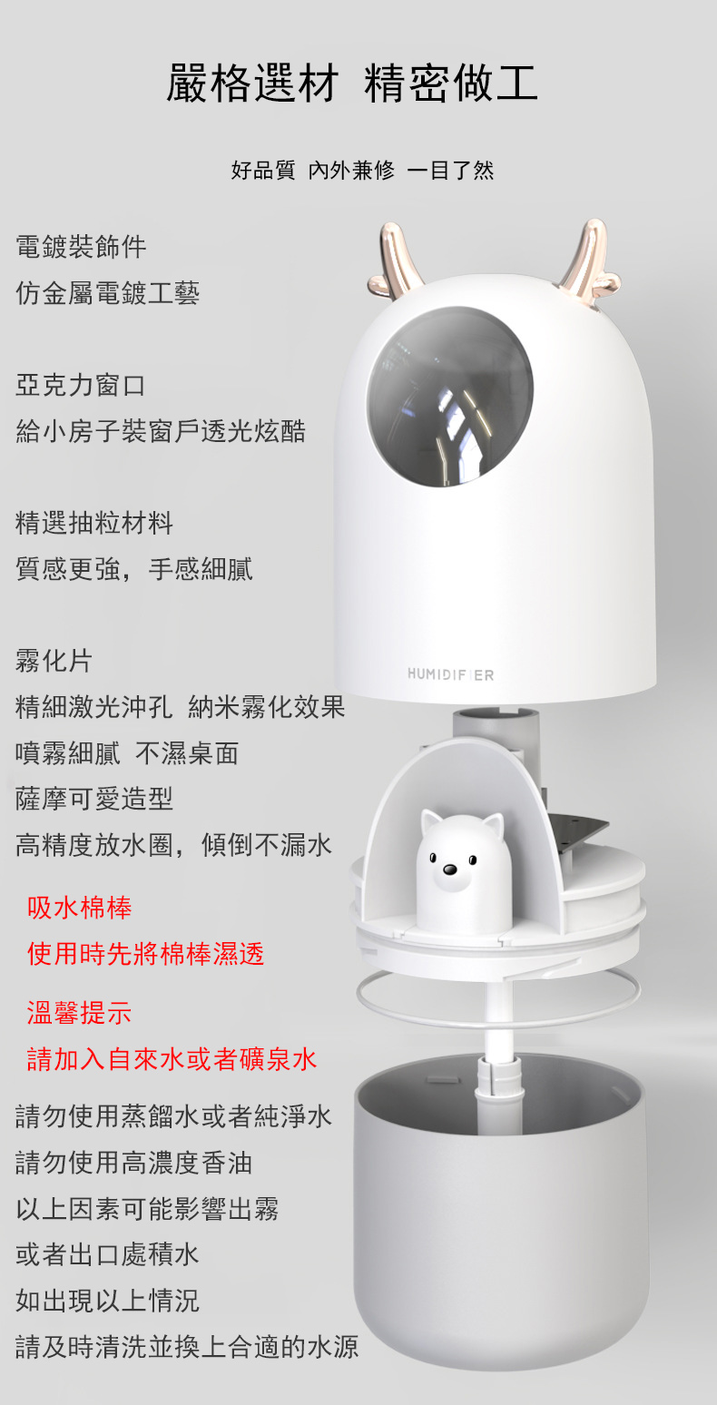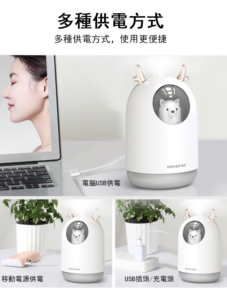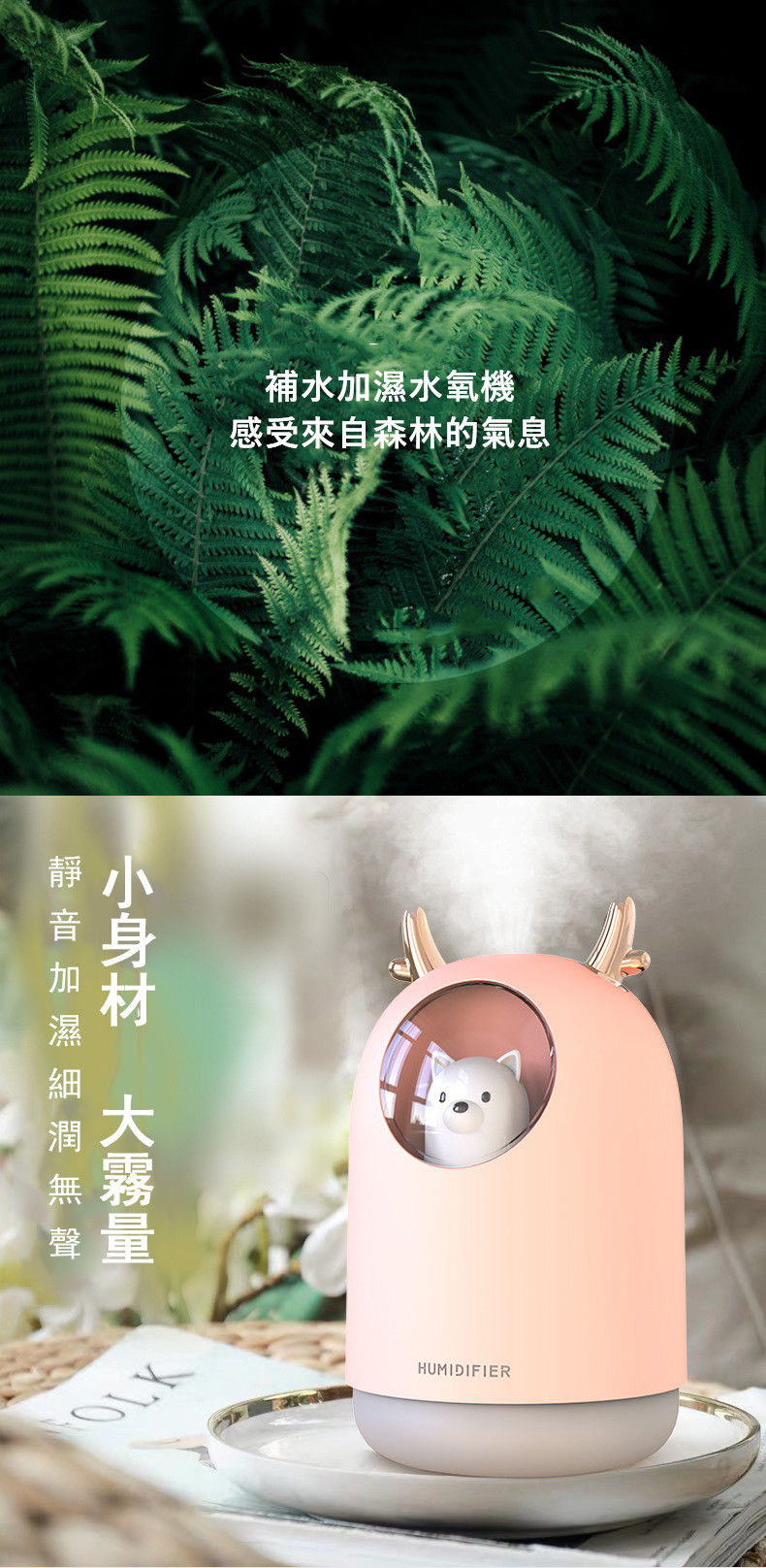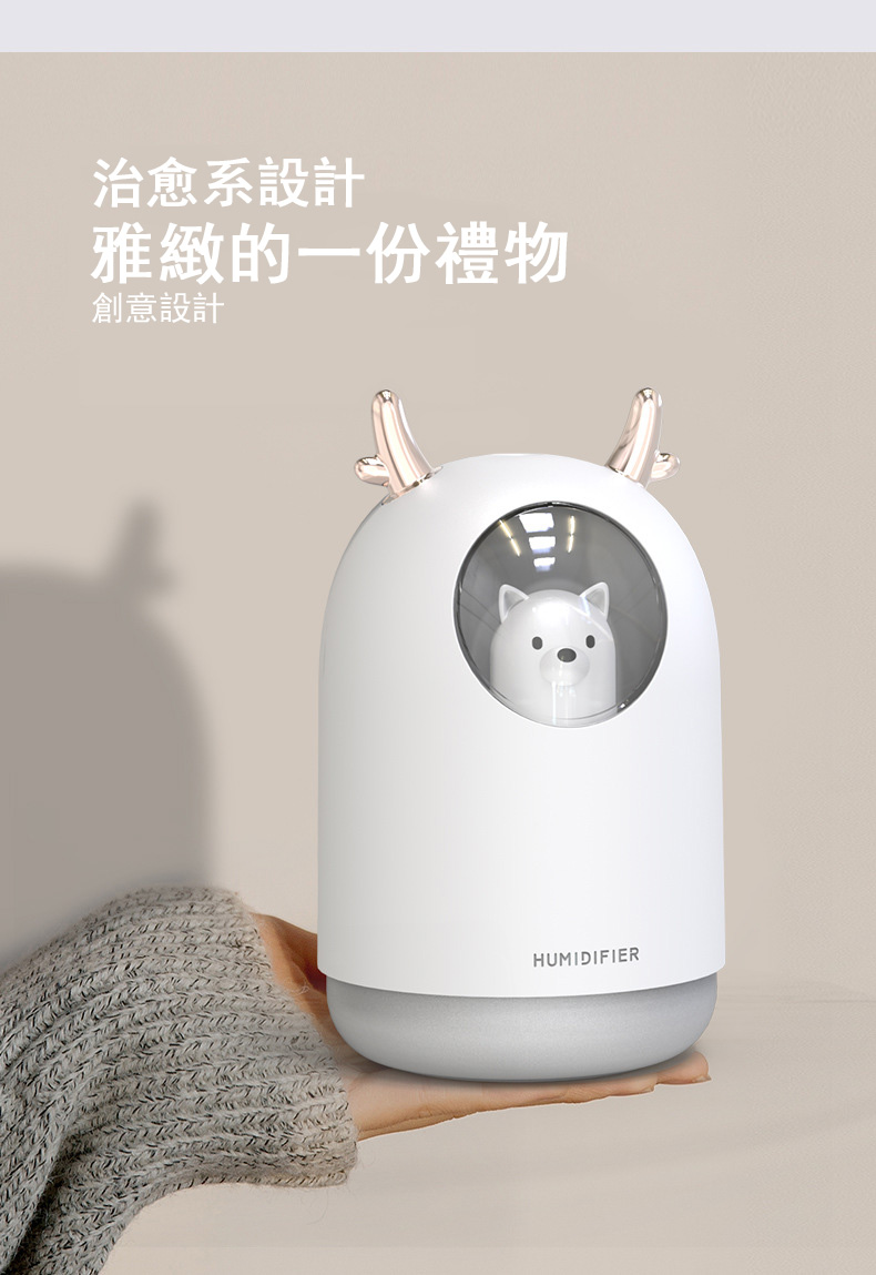 【萌寵夜燈加濕器水氧機】【便攜300ML水箱】【七彩夜燈】聖誕交換禮物可愛迷你萌寵奈米霧化靜音USB加濕器水氧機