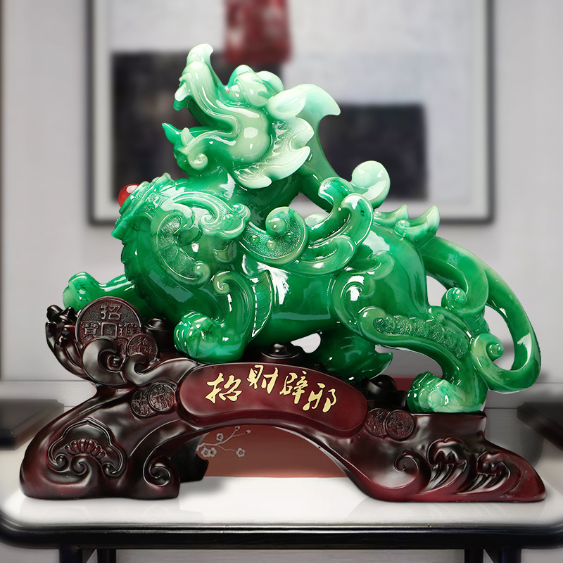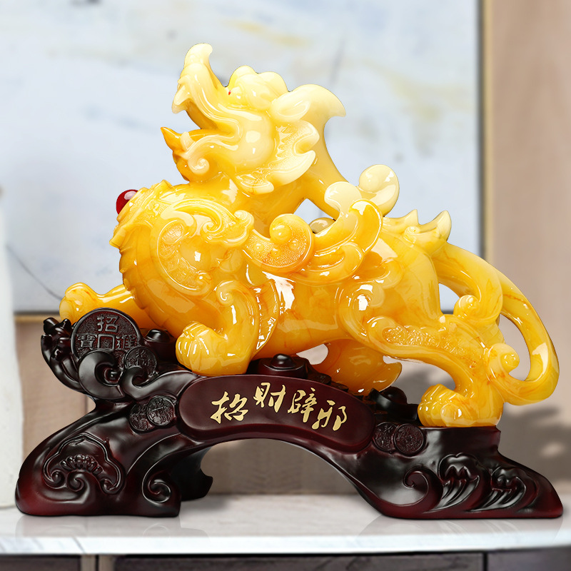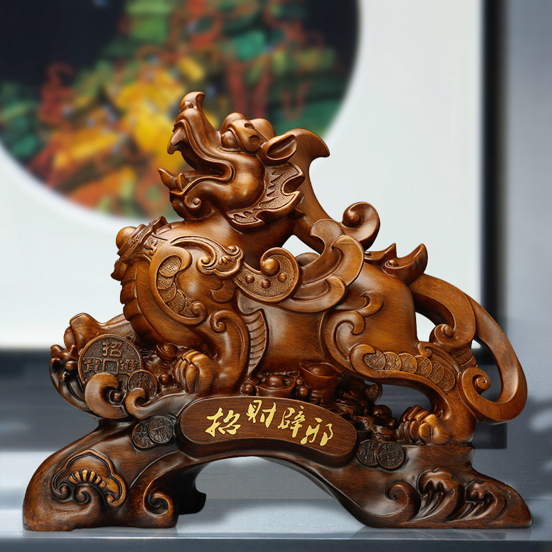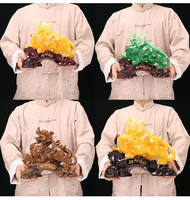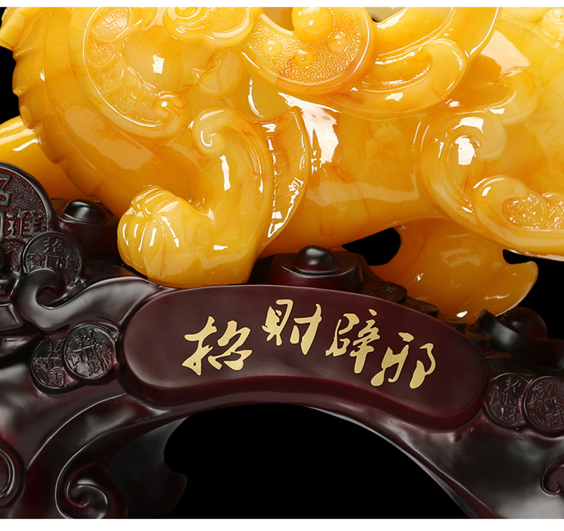 【招財辟邪貔貅擺件】【木紋樹脂工藝】喬遷開業居家商鋪精工手製樹脂工藝招財辟邪貔貅擺件帶底座