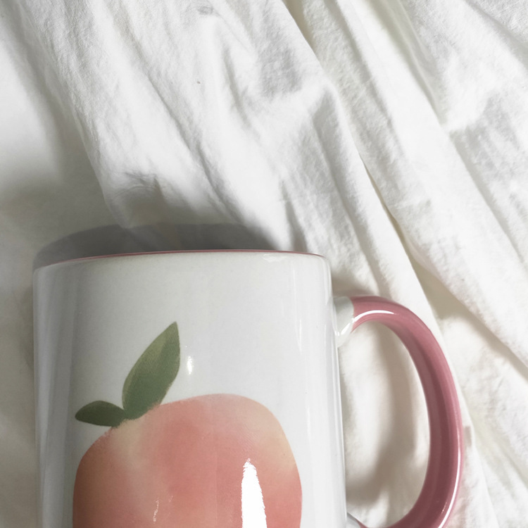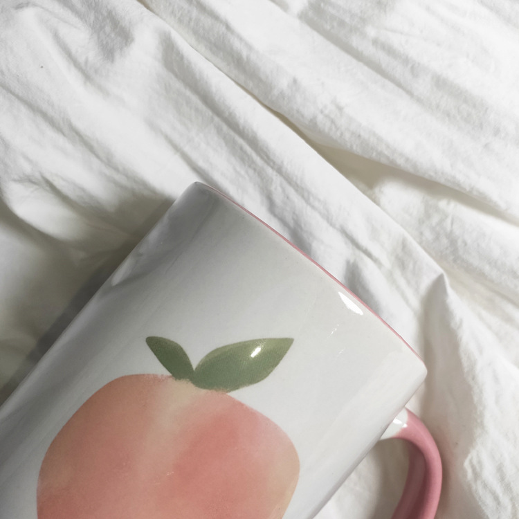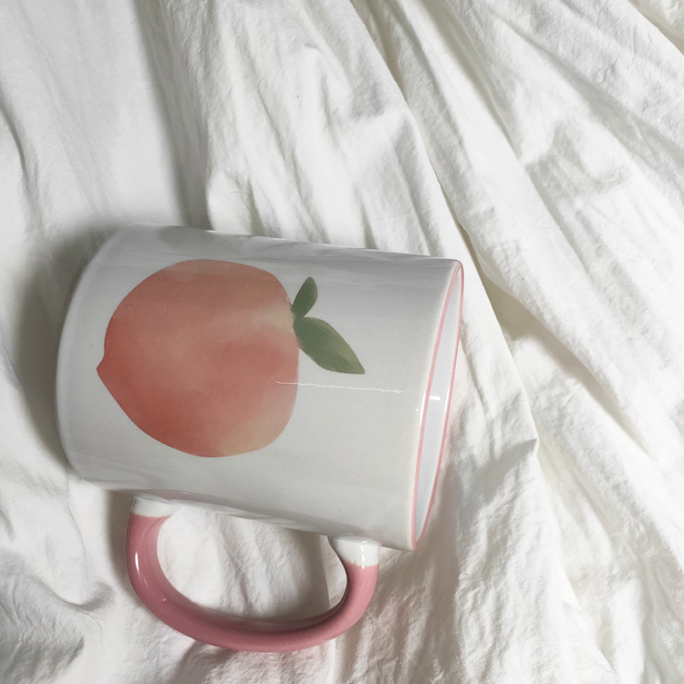 【水蜜桃陶瓷馬克杯】可愛少女心水蜜桃色釉清新陶瓷馬克杯茶杯 (陶瓷 301-400ml)
