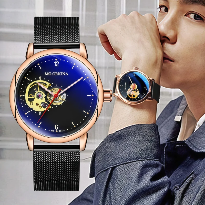 男錶・機械・時空之瞳 | 全自動機械機芯 | 鏤空可視飛輪 | 雙曲弧面錶鏡 | 鱷魚紋小牛皮帶| 夜光指針 | 30米防水 | MG.ORKINA機械手錶
