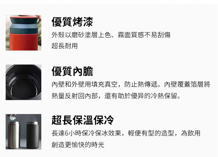 【日式真空雙層保溫杯】【12H超長三重保溫】【食品級不鏽鋼防刮烤漆】日式科技不鏽鋼雙層真空三重保溫杯