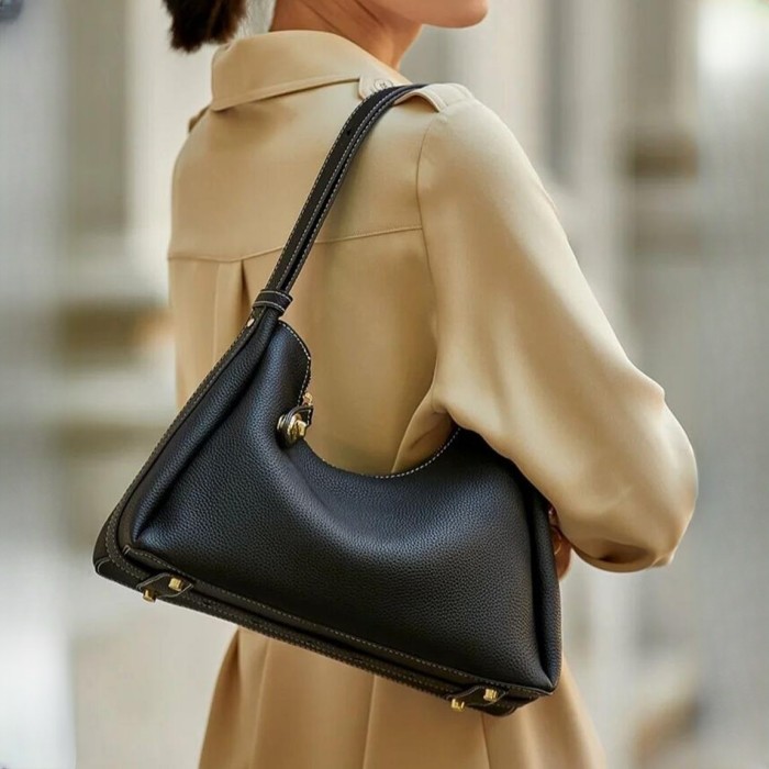 法式優雅腋下包 | 真皮小牛皮 | 手提包 | 托特包 | 側背包 | 經典黑色女包