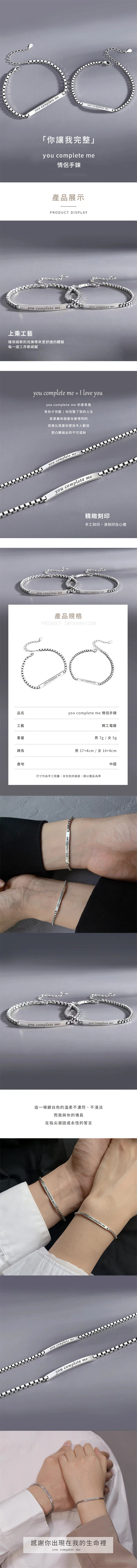You Complete Me | 有你才完整 | S925純銀情侶手鍊 | 原創自製你讓我完整925純銀情侶手鍊男女對鍊
