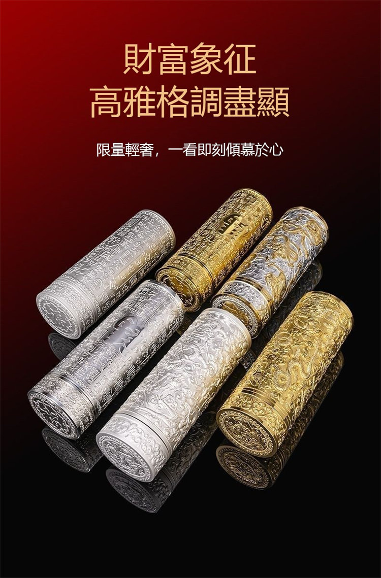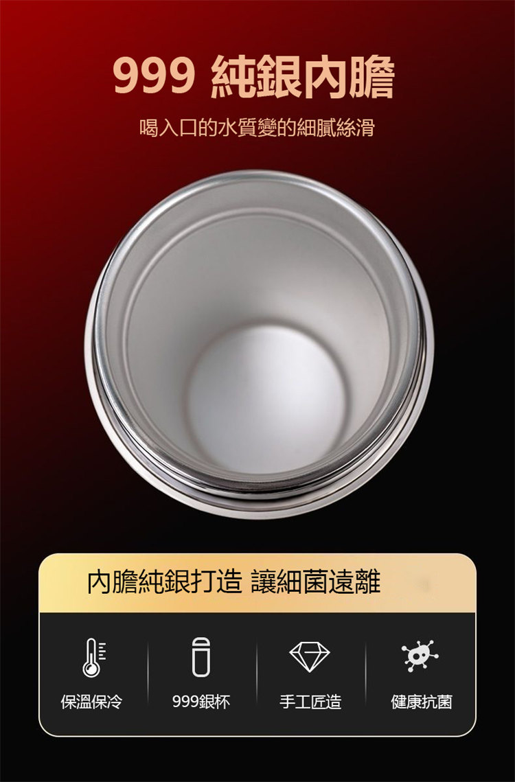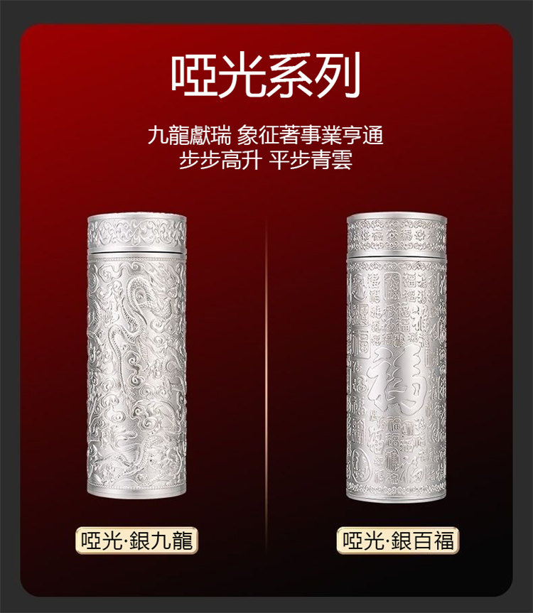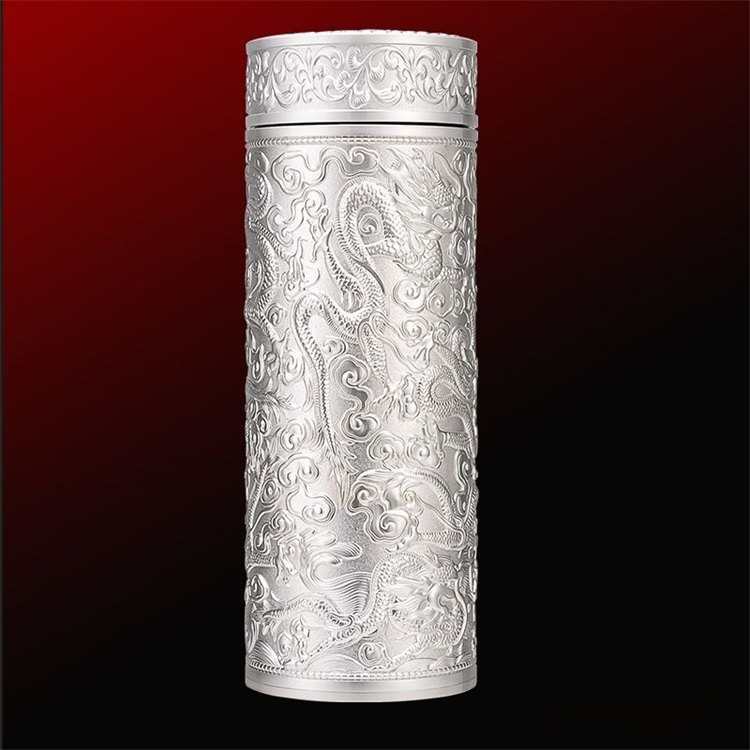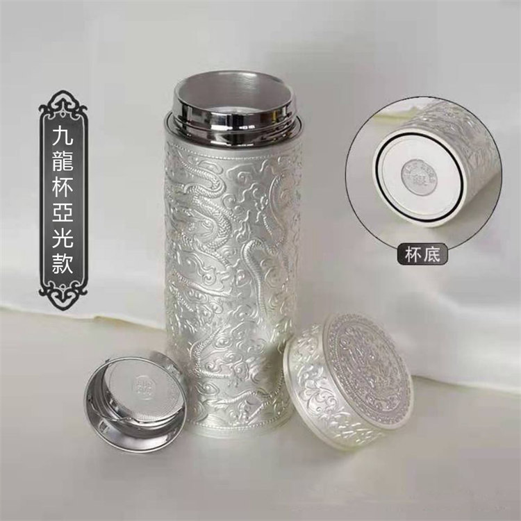 999足銀內膽保溫杯 | 銀離子抗菌內膽 | 立體浮雕九龍杯身 | 超好寓意九龍百福足銀內膽抗菌茶水分離真空保溫杯