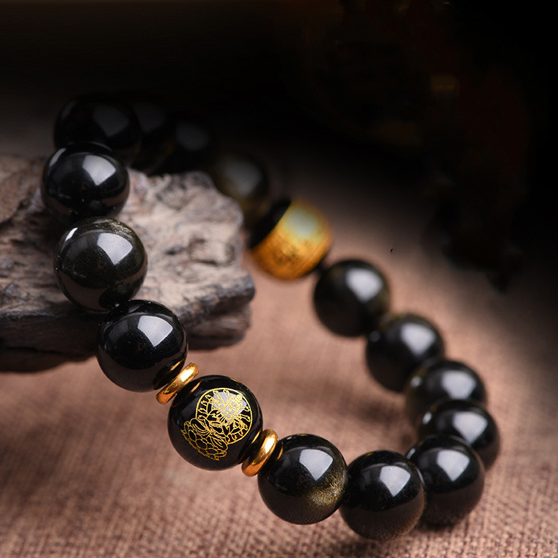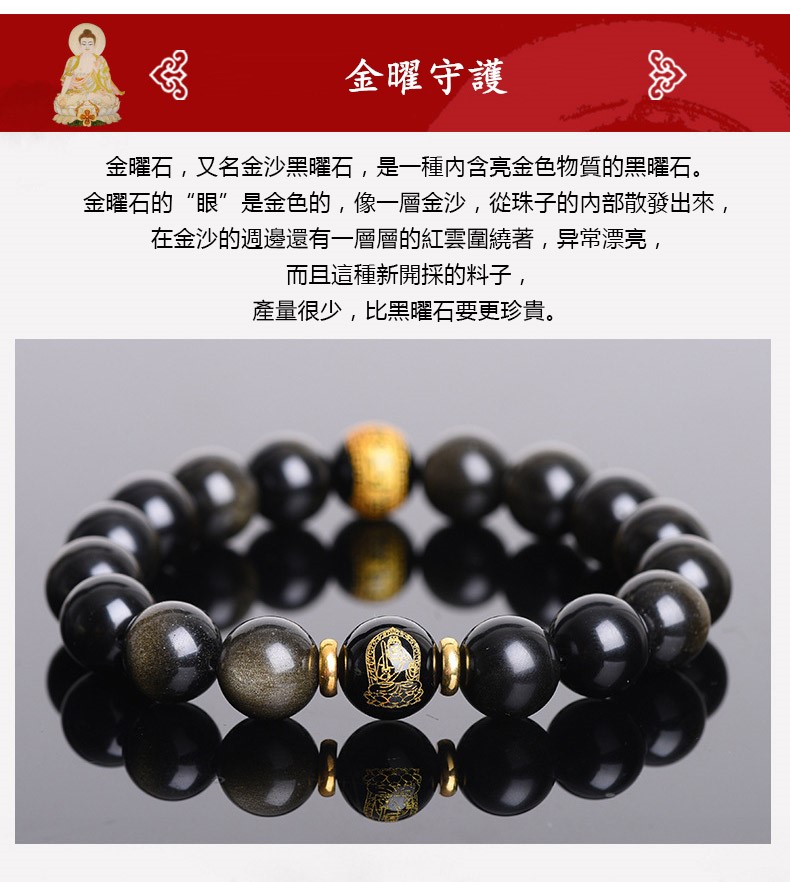 【墨西哥金曜石】【生肖本命守護手鍊】天然墨西哥太陽金曜石男女十二生肖本命佛守護佛珠水晶手鍊