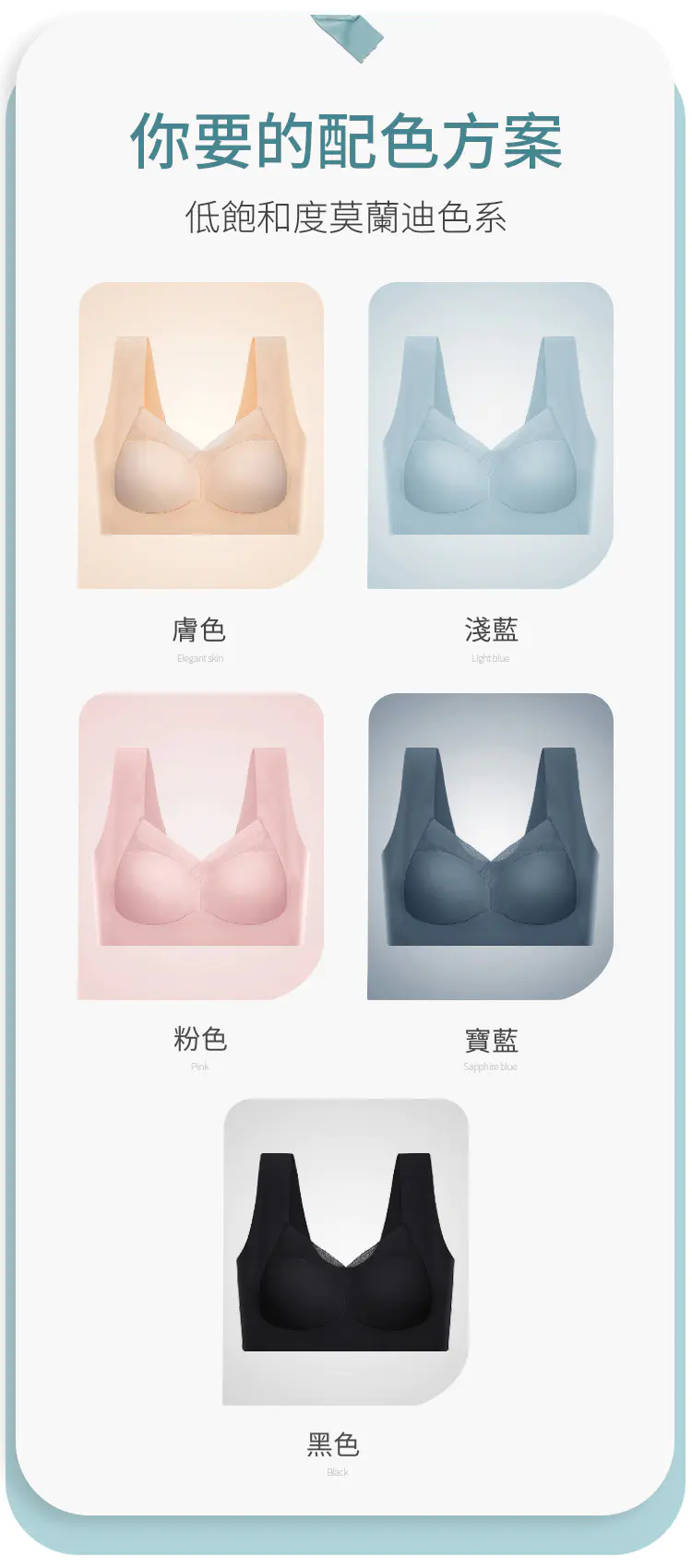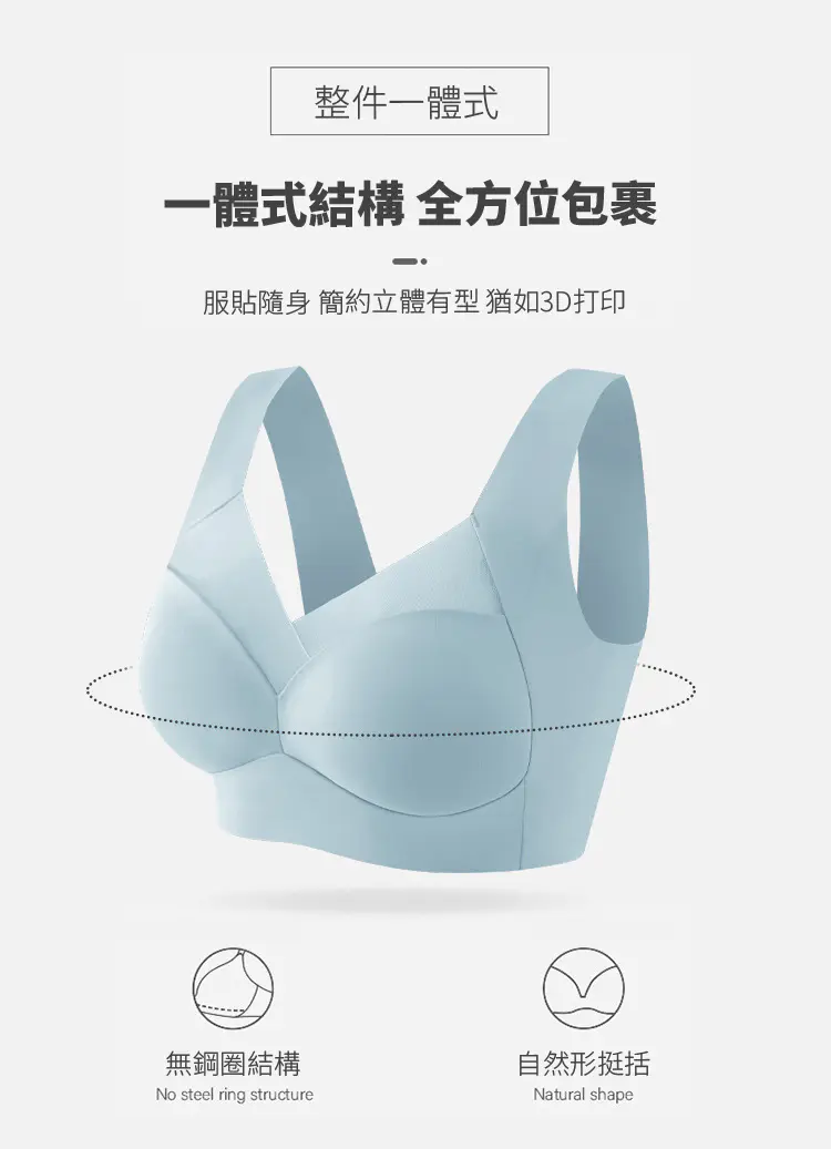 超值五入組 | 無痕裸肌空氣觸感 | 固定上托集中聚攏 | 加寬側圍強力收副乳 | 24H無痕無感睡眠內衣固定上托集中聚攏收副乳無鋼圈內衣