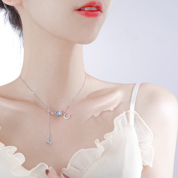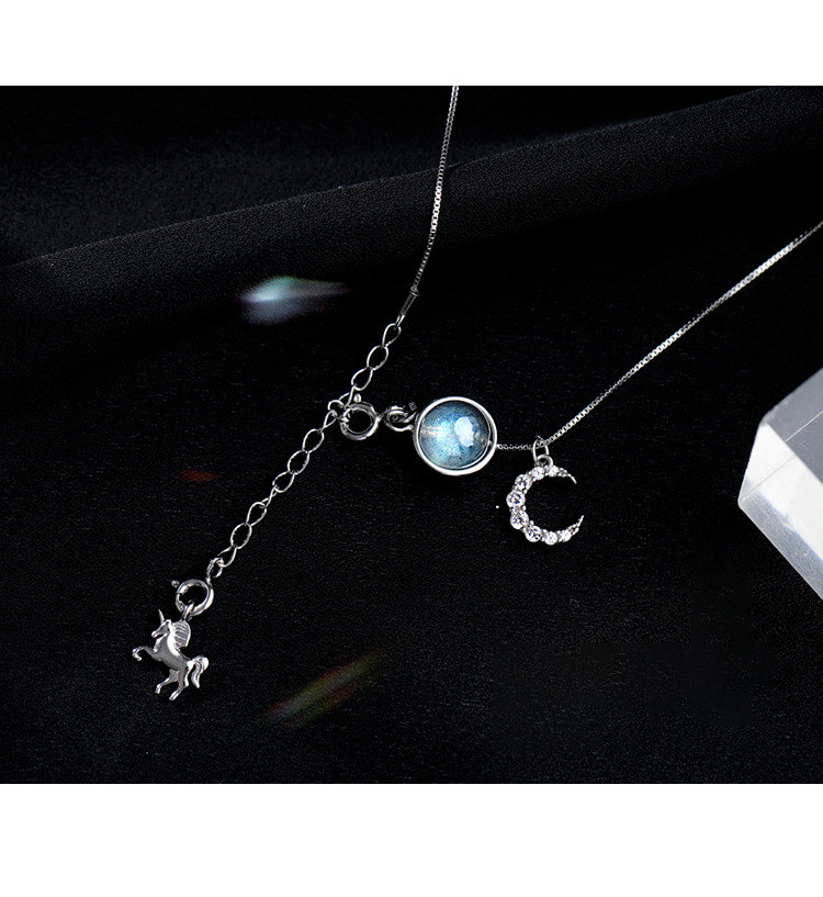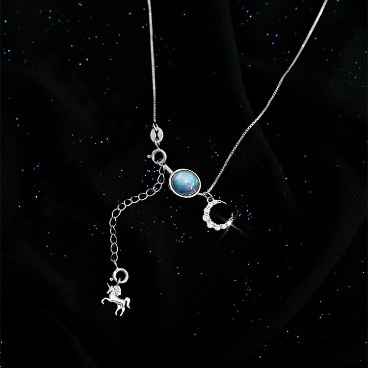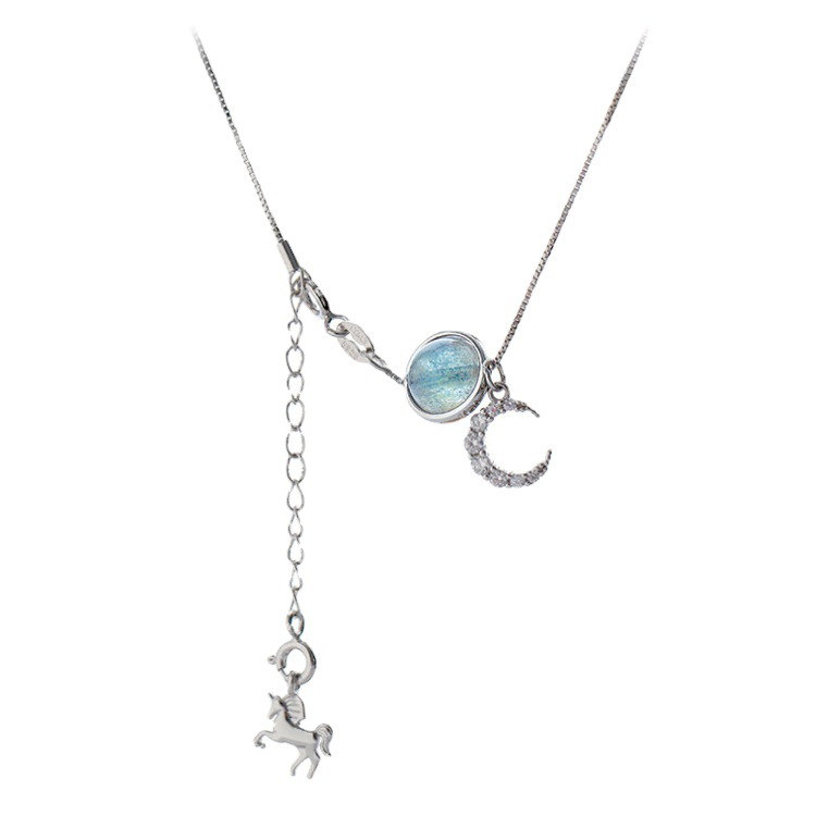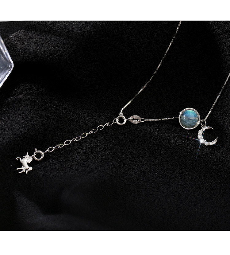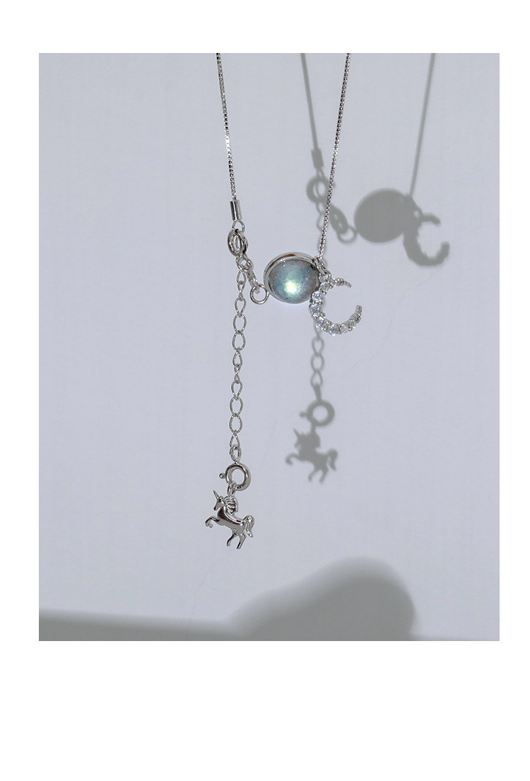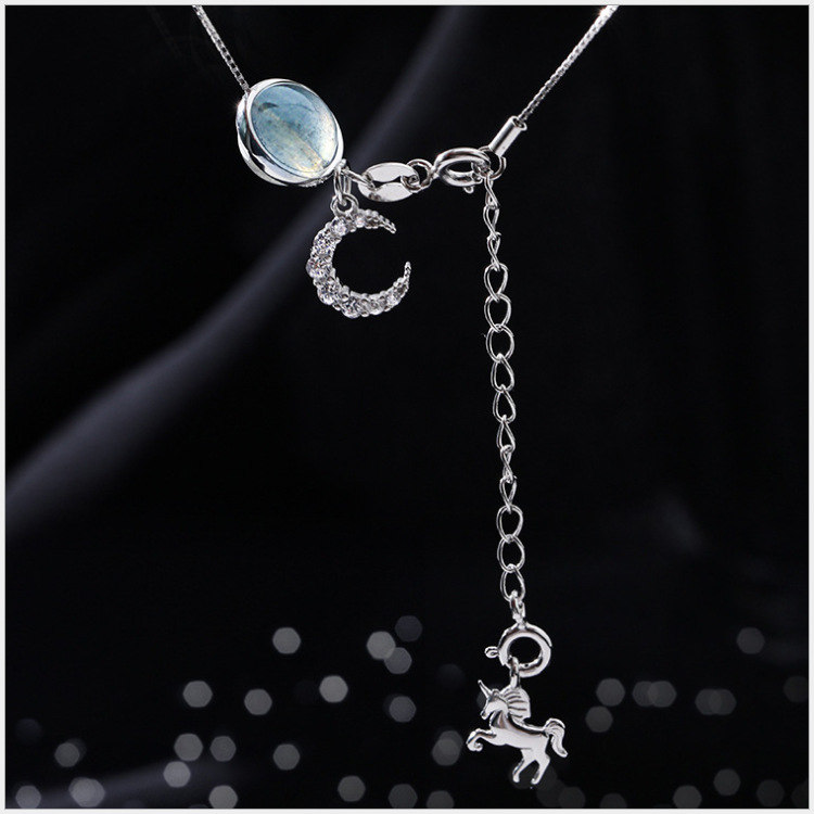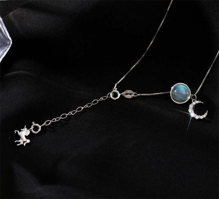 月亮獨角獸 | 925純銀 | 鑲嵌斯里蘭卡月光石 | 夢幻手作童話獨角獸月光石純銀女士項鍊