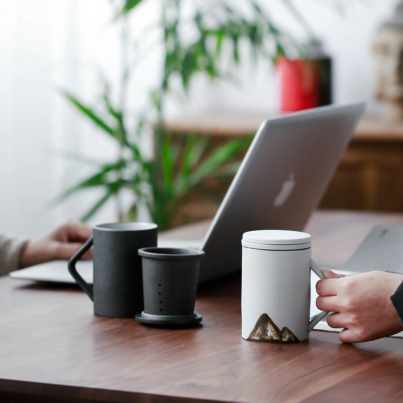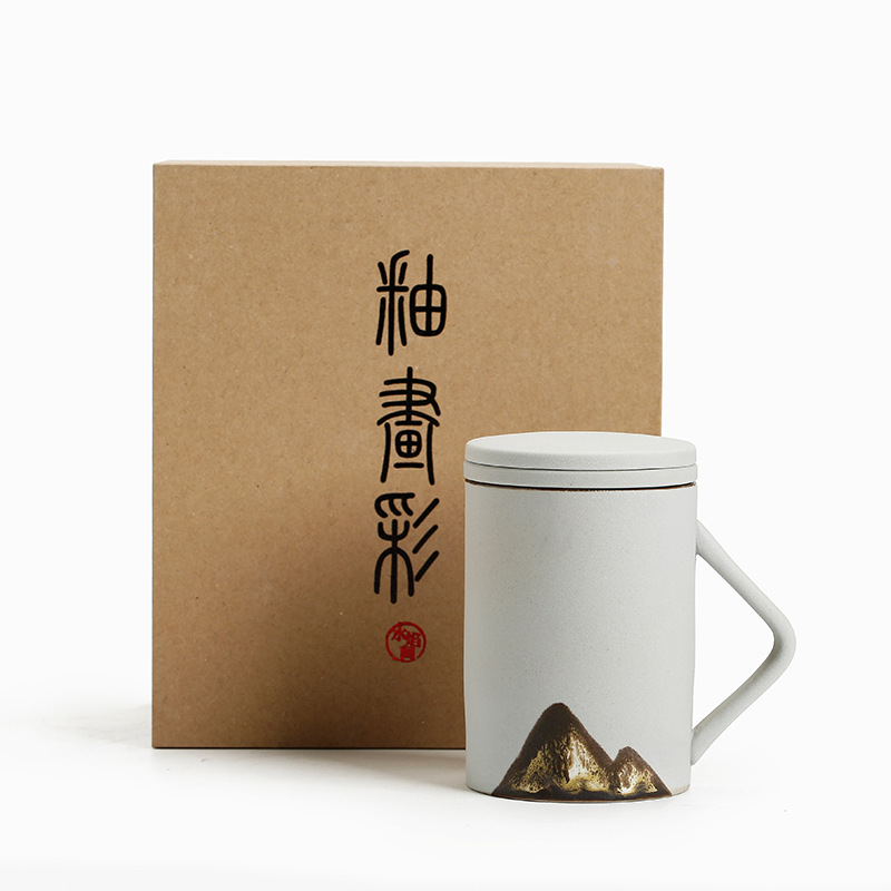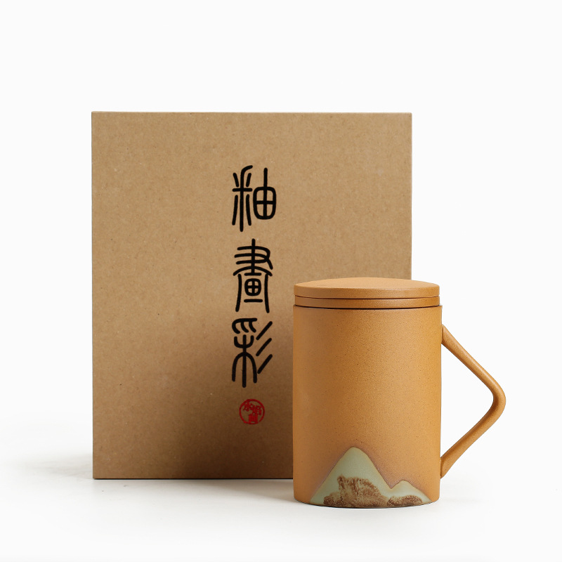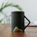 【遠山釉畫彩馬克杯】【帶過濾】日式純手工製遠山釉畫彩黑陶帶過濾馬克杯茶杯帶禮盒