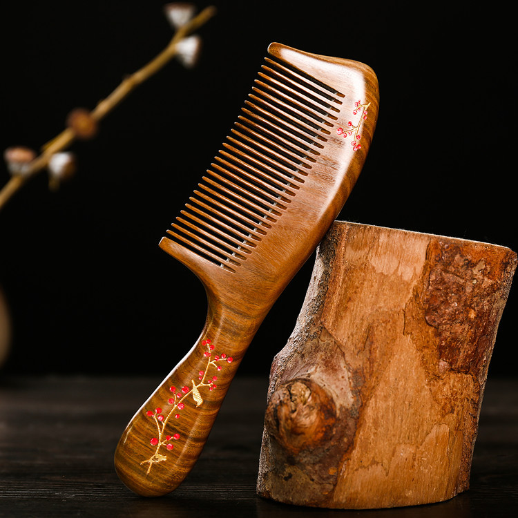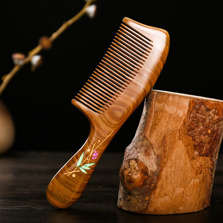【天然綠檀木】【古風彩繪】純手工製天然名貴綠檀木古典彩繪大號加厚舒適保健按摩梳子