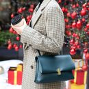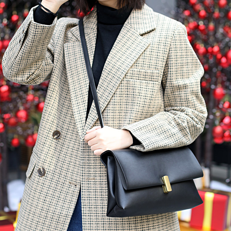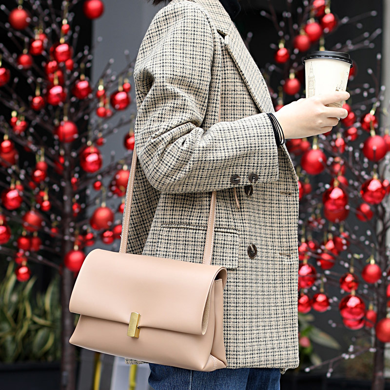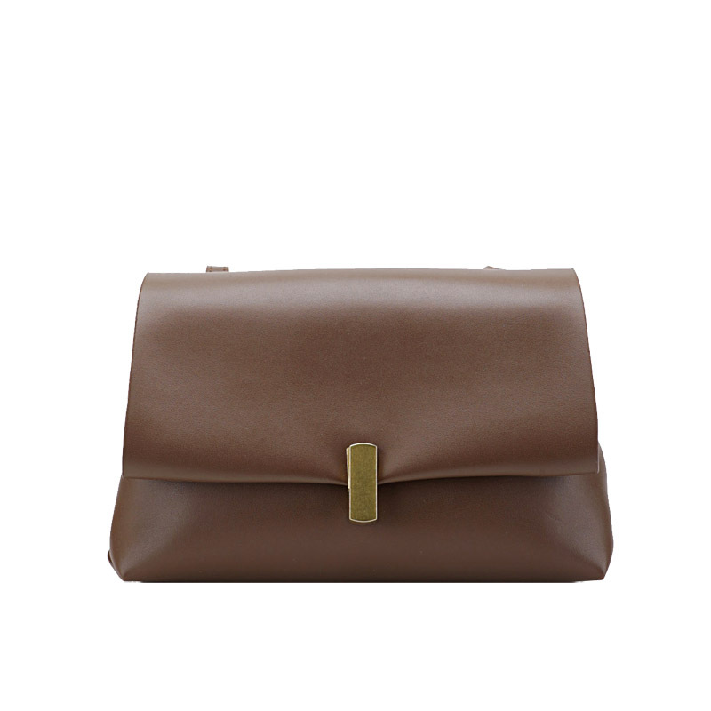 新款日系超顯氣質簡約復古綠色純色百搭雙層翻蓋軟皮鎖釦側背包肩背包