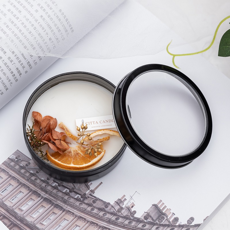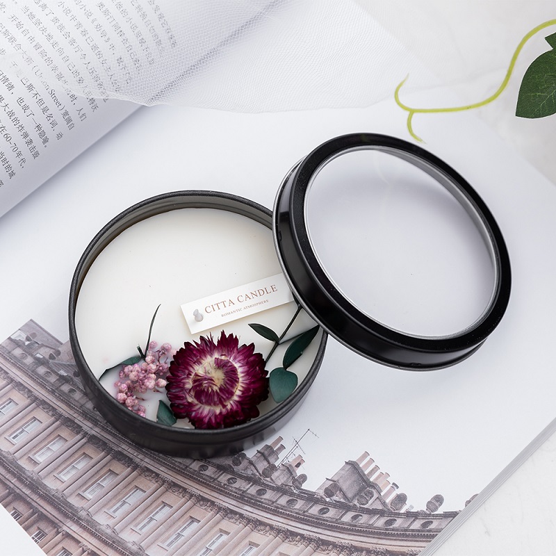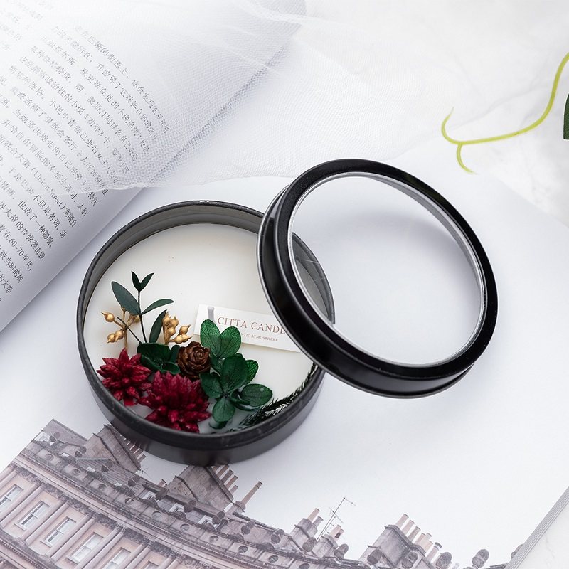 【買一贈一】【乾燥花香氛蠟燭】【植物大豆蠟】純手工製黑鐵罐窗植物精油永生花鳳梨菊繡球橘片罐裝香氛蠟燭