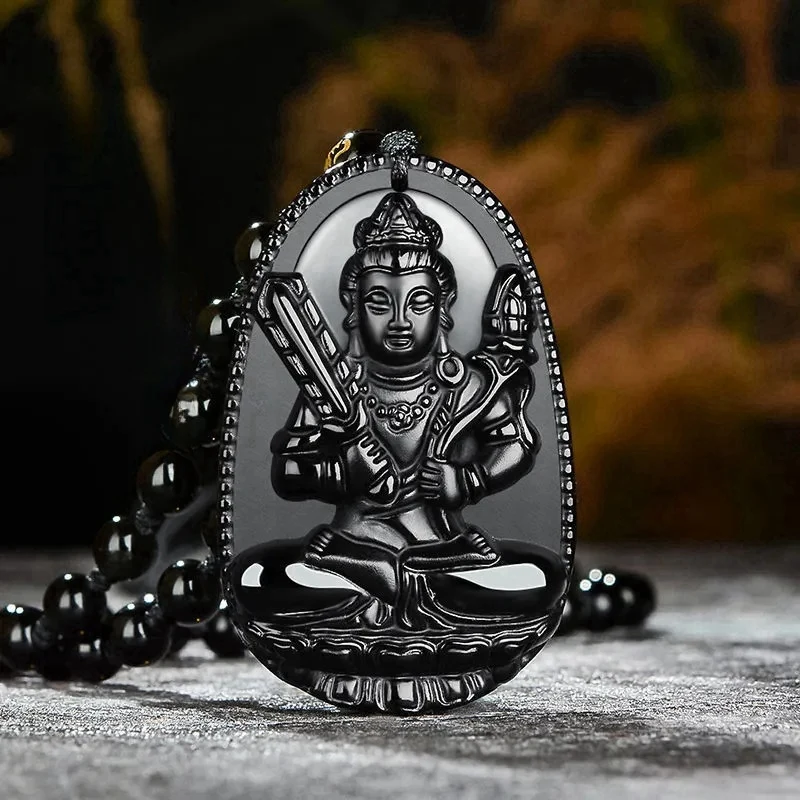 虛空藏菩薩 | 生肖守護 | 法相莊嚴 | 十二生肖本命佛項鍊 | 天然烏金黑曜石 | 大師精細立體微雕 | 十二生肖本命佛守護神黑曜石吊墜項鍊