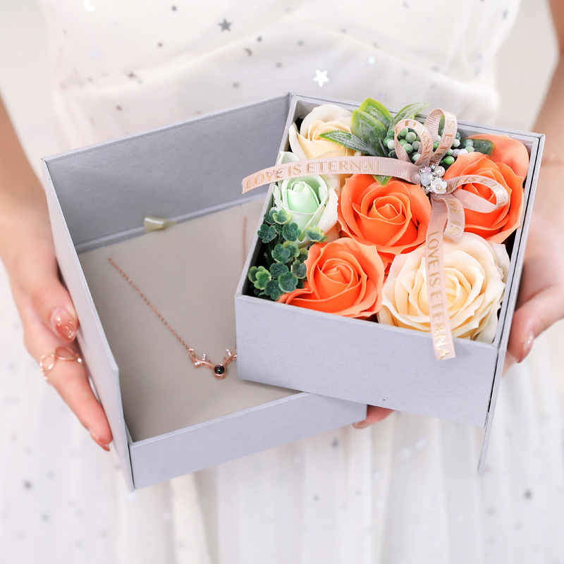 【雙層旋轉玫瑰首飾盒】【手工香皂花】日式手工香皂花旋轉首飾盒禮盒