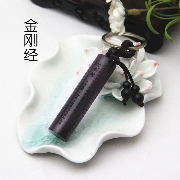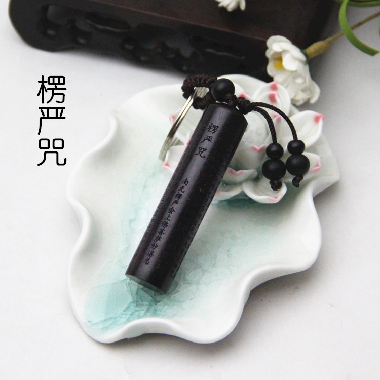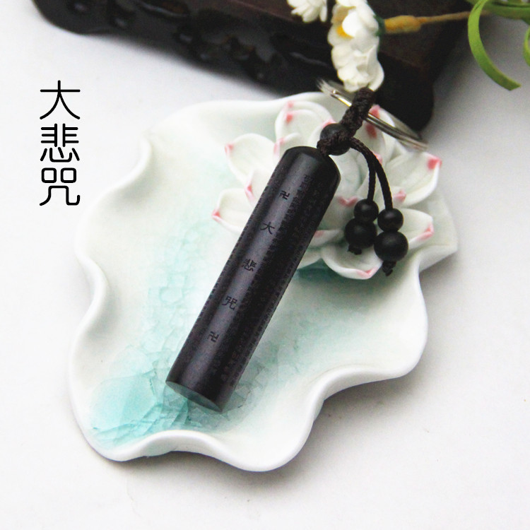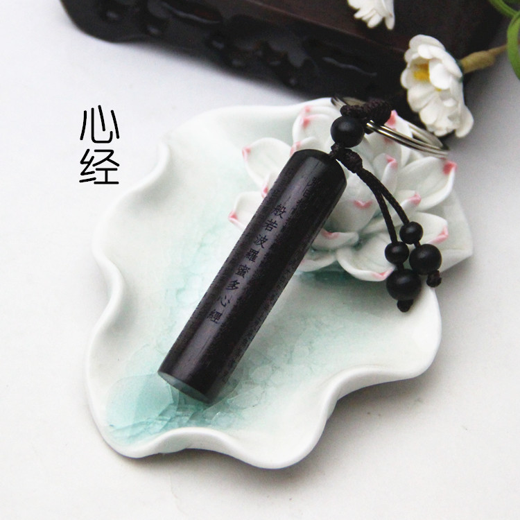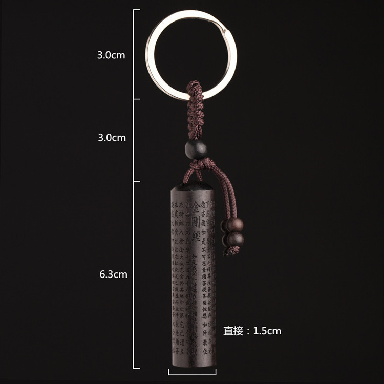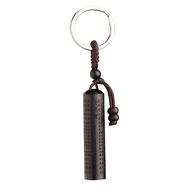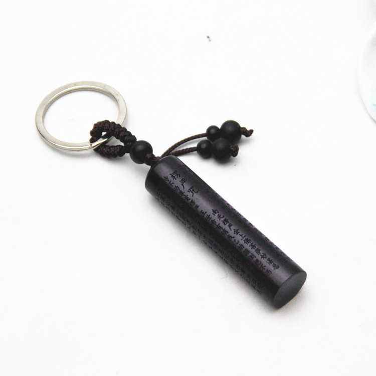 【天然黑檀烏木經文鑰匙圈】純手工製天然名貴黑檀圓柱心經大悲咒經文雕刻鑰匙圈