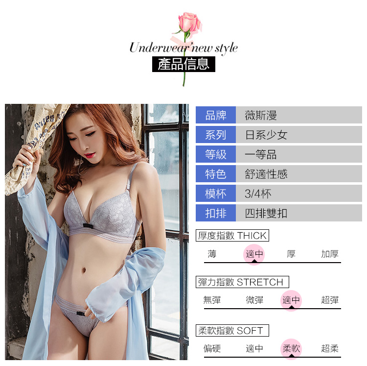 【日系少女感內衣褲組】【無痕蕾絲三角杯】薇斯漫日系少女舒適無痕蕾絲薄款三角杯內衣褲套組