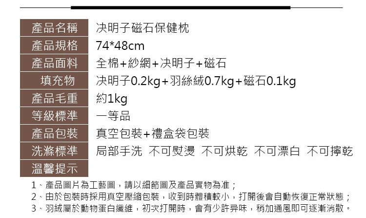 【分區助眠網面保健枕】【天然決明子】【保健磁石】高端中式分區助眠天然決明子保健磁石網面透氣羽絲絨枕