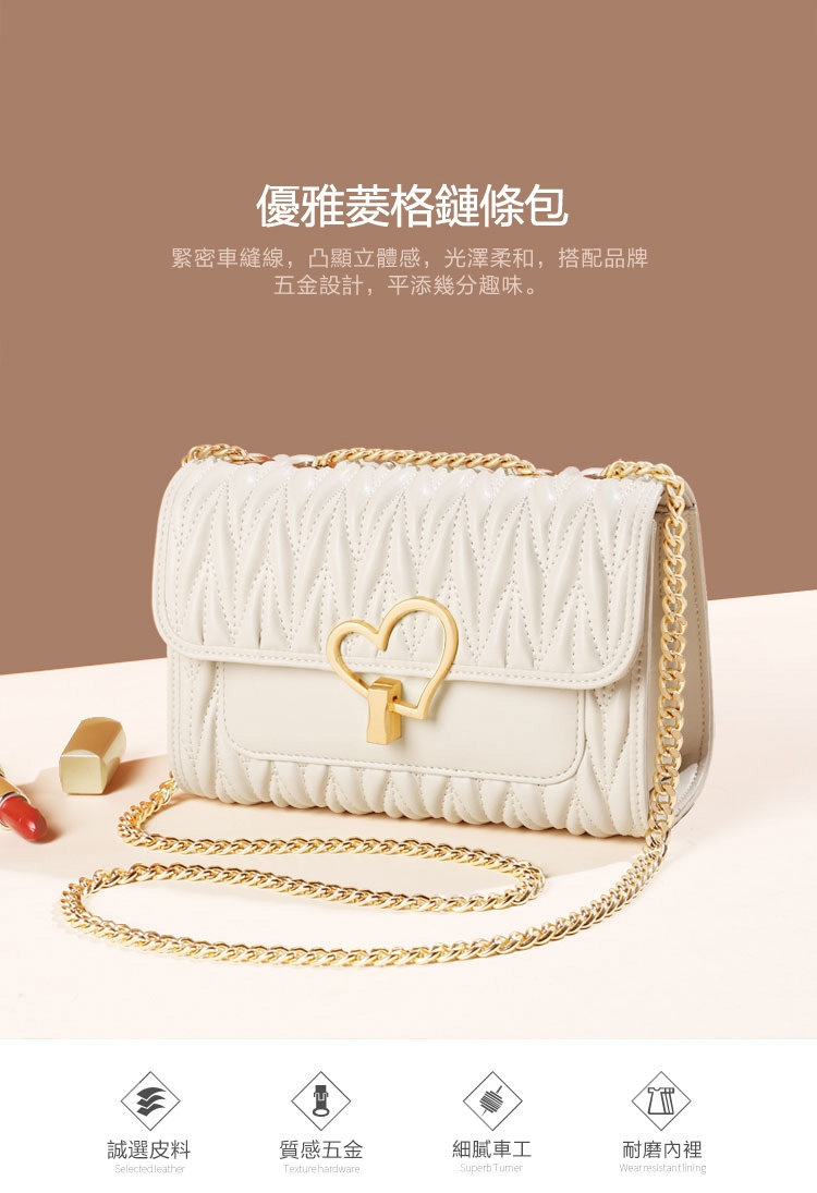 菱格鏈條包 | 真皮小牛皮 | 精緻五金 | 側背包 | 斜背包 | 米白色女包
